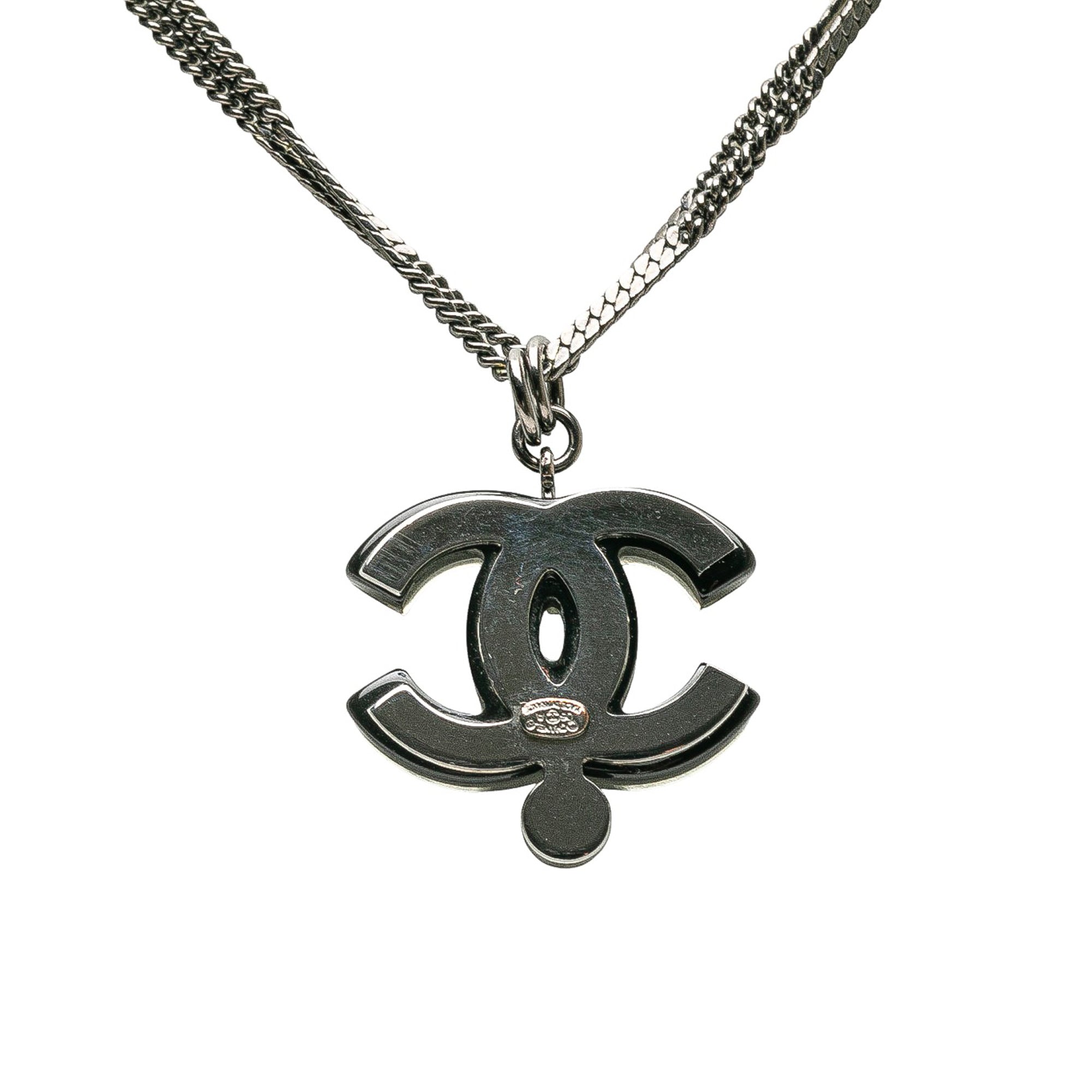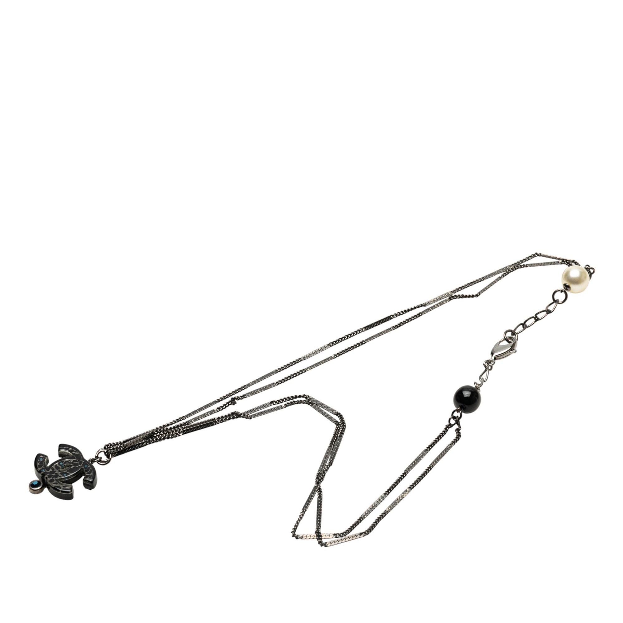 Chanel Ruthenium Resin Faux Pearl and Crystal Double Chain Necklace