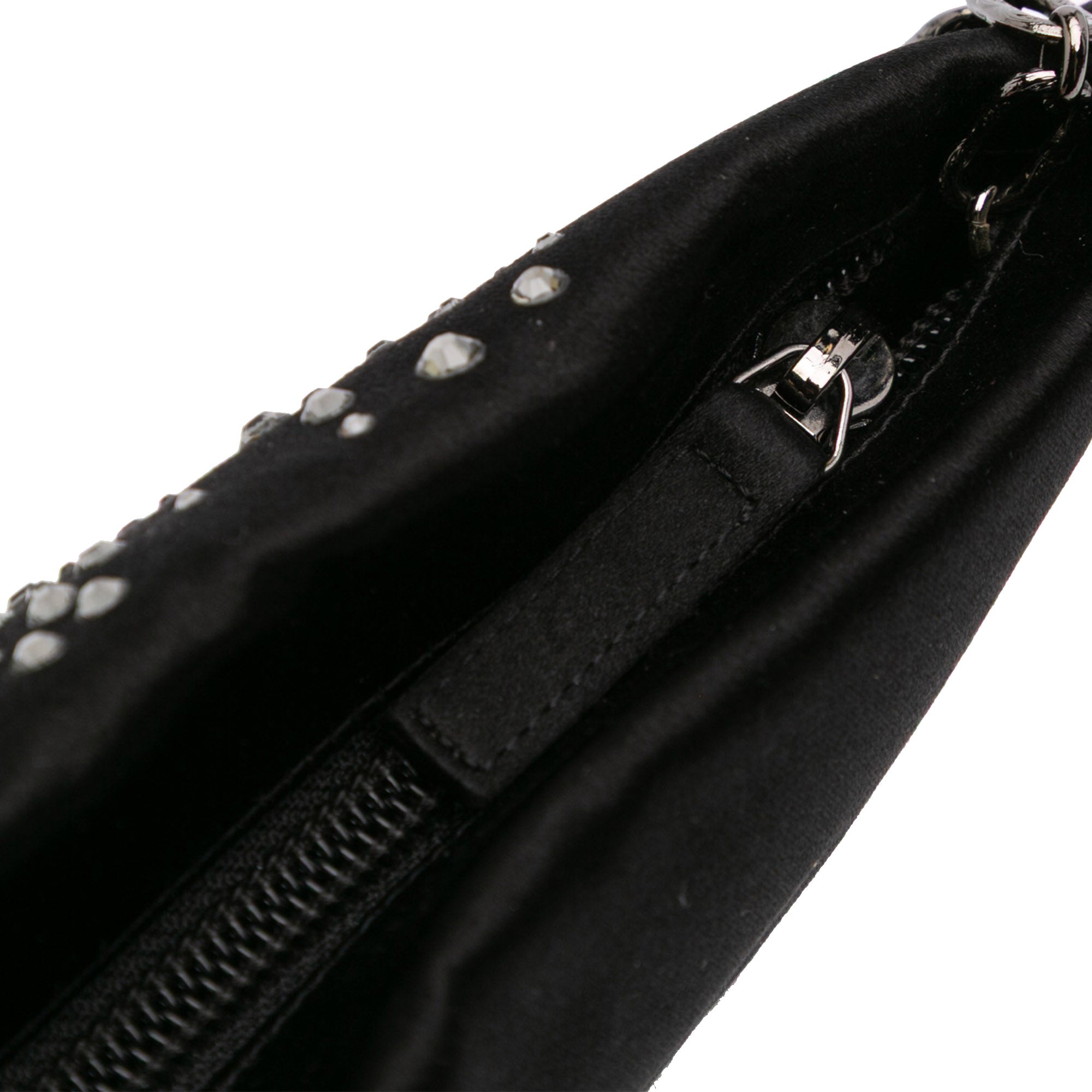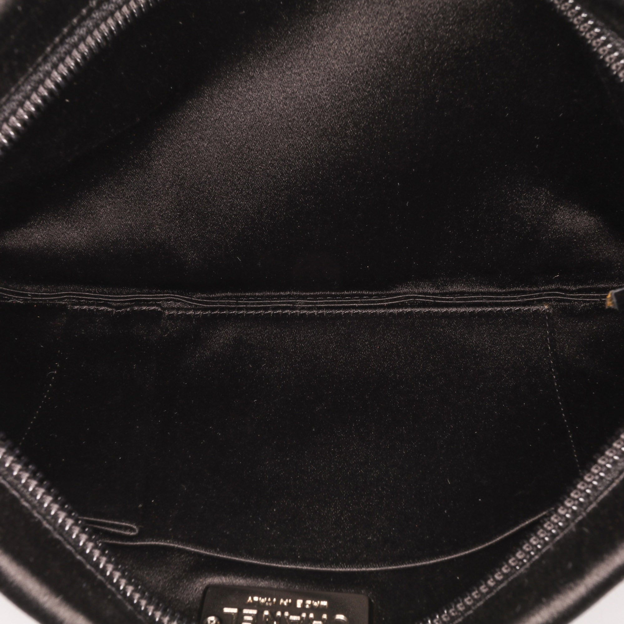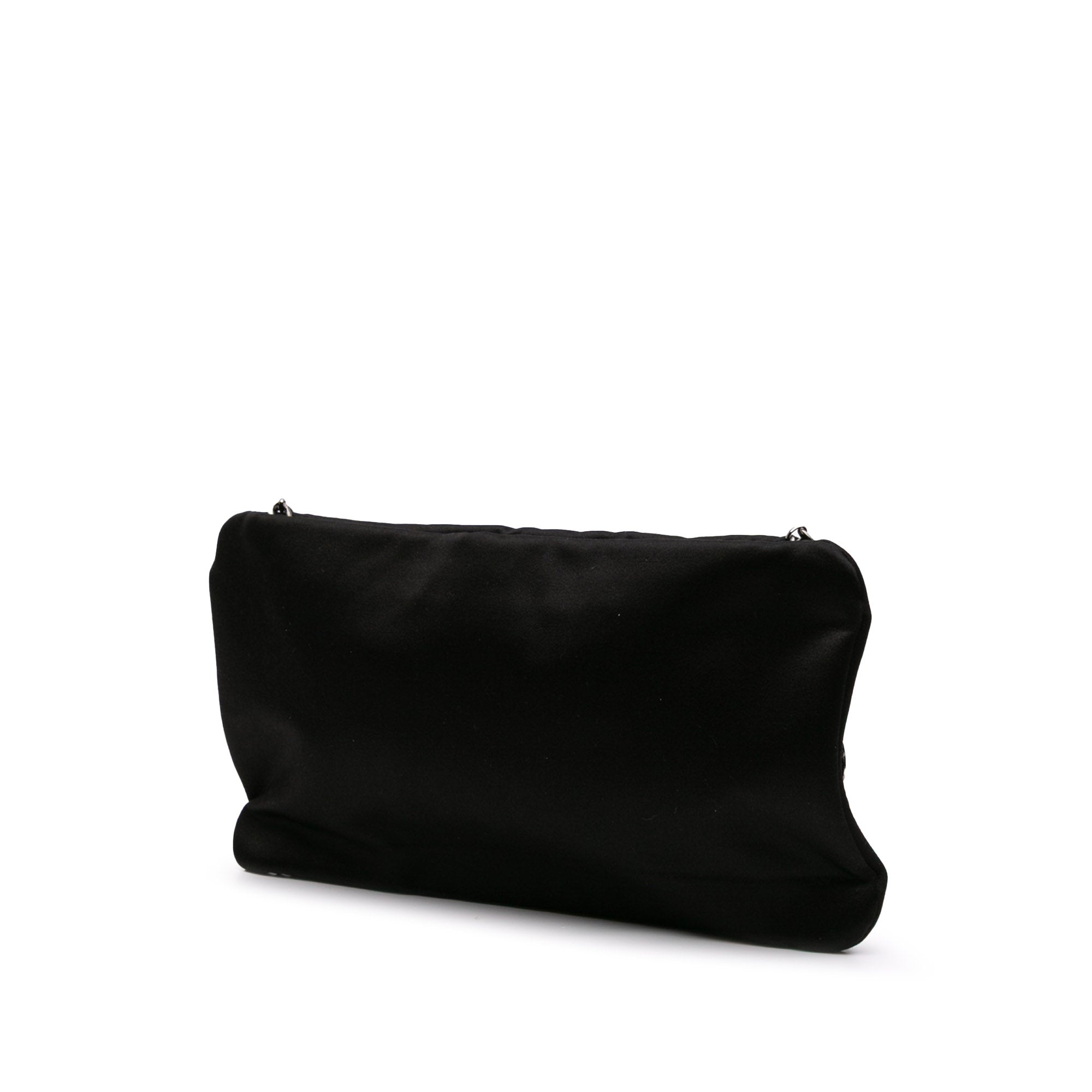 This shoulder bag features a satin body with crystal embellishments, a chain link strap, a top zip closure, and an interior slip pocket. Retail Price: 1750.00