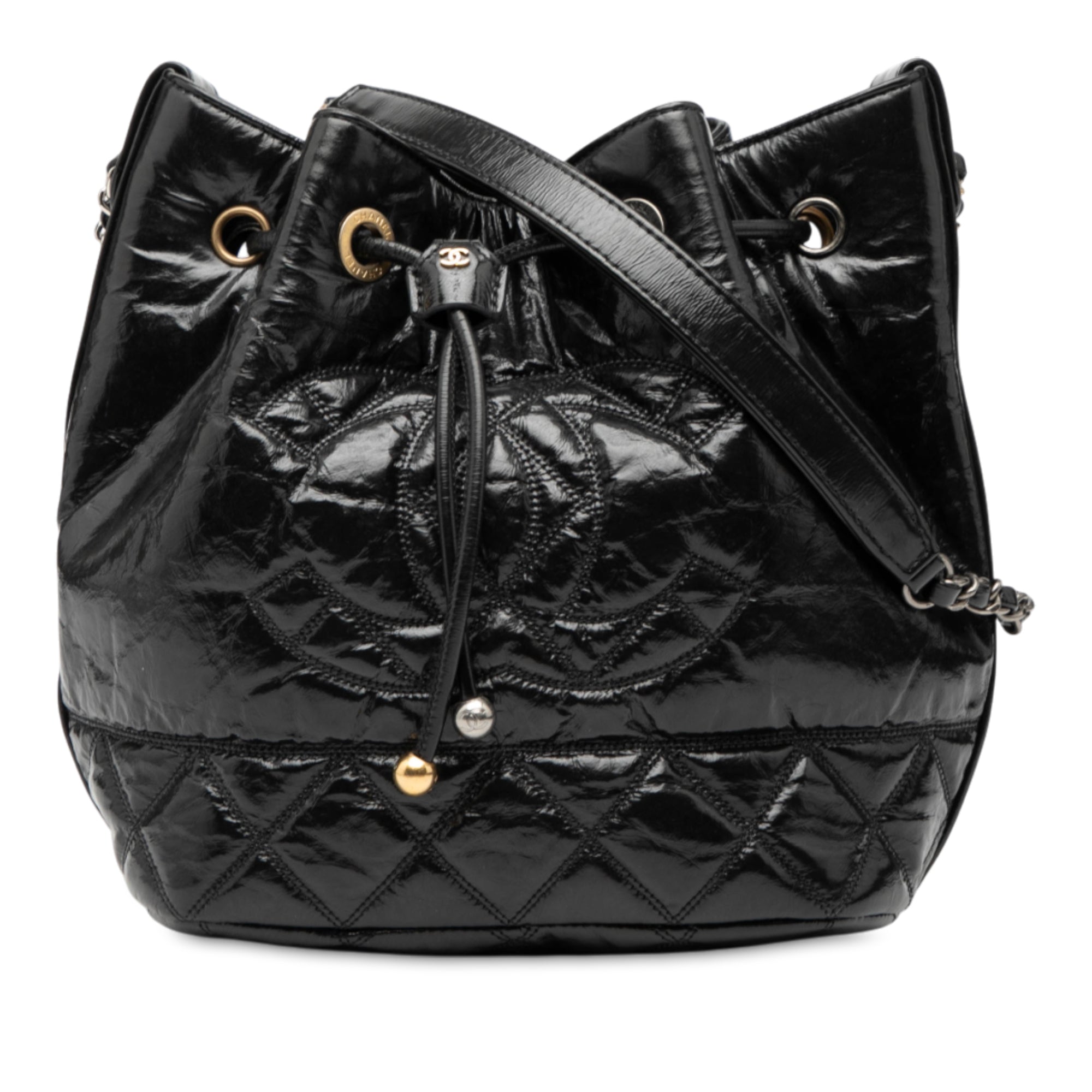 Chanel Shiny Aged Calfskin CC Chain Drawstring Bucket Bag