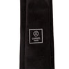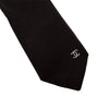 Chanel black silk tie featuring a subtle sheen fabric and silver toned embroidered CC logo near the tip. Made from 100% silk with a classic slim cut.