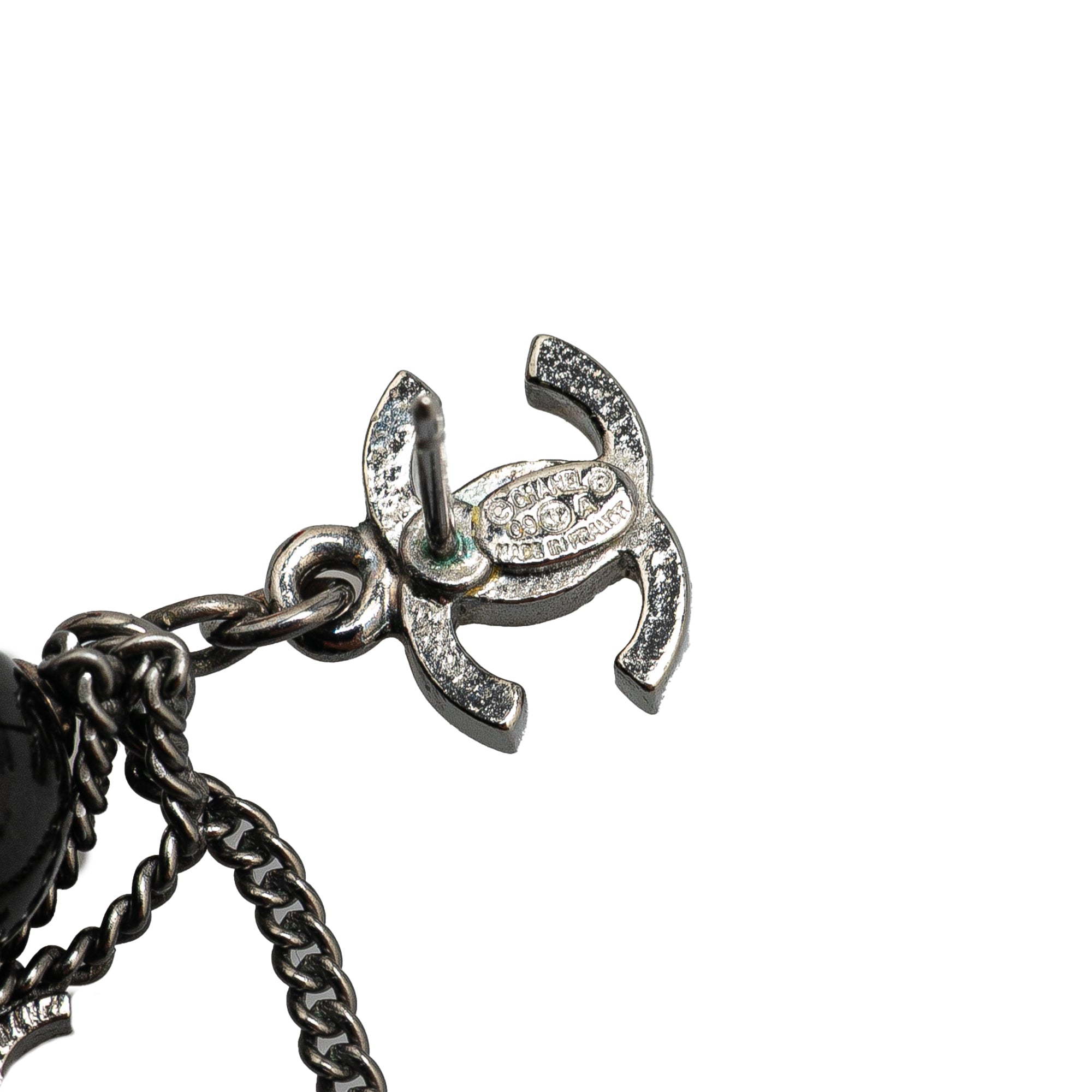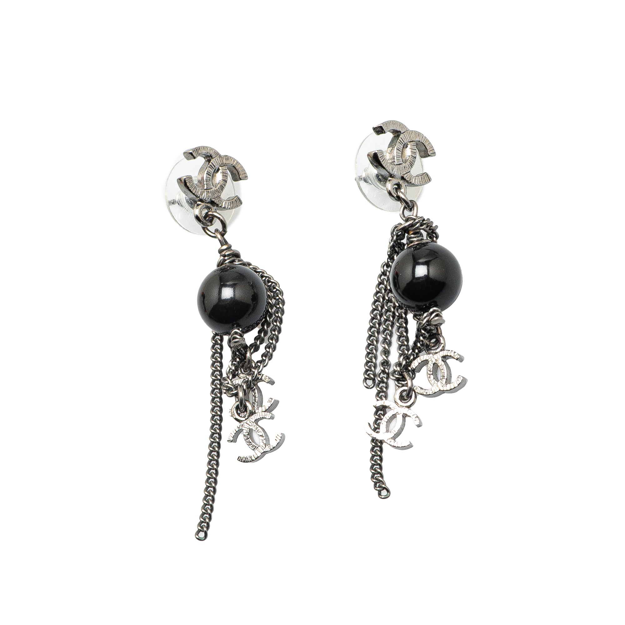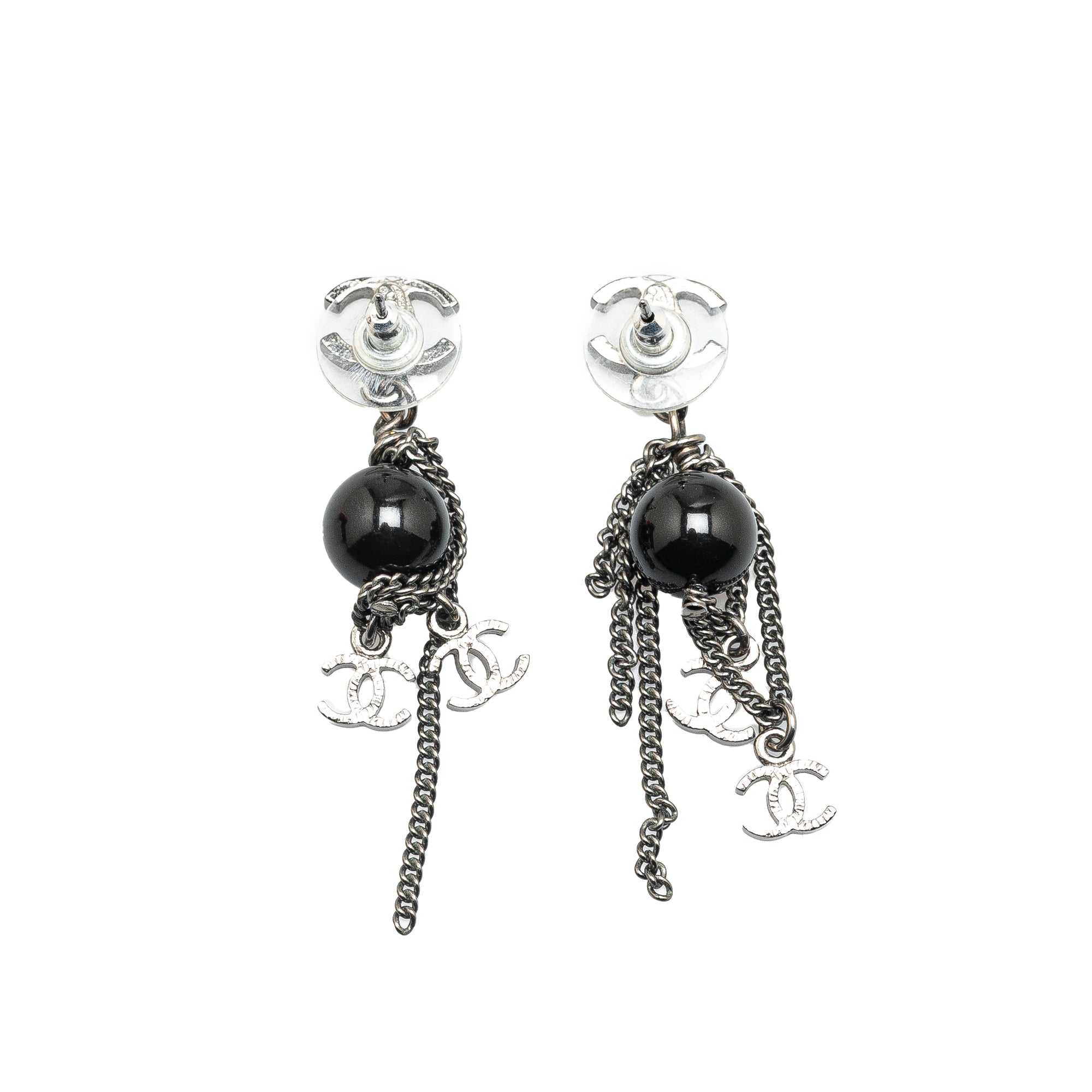 Chanel Silver CC Chain Drop Push Back Earrings