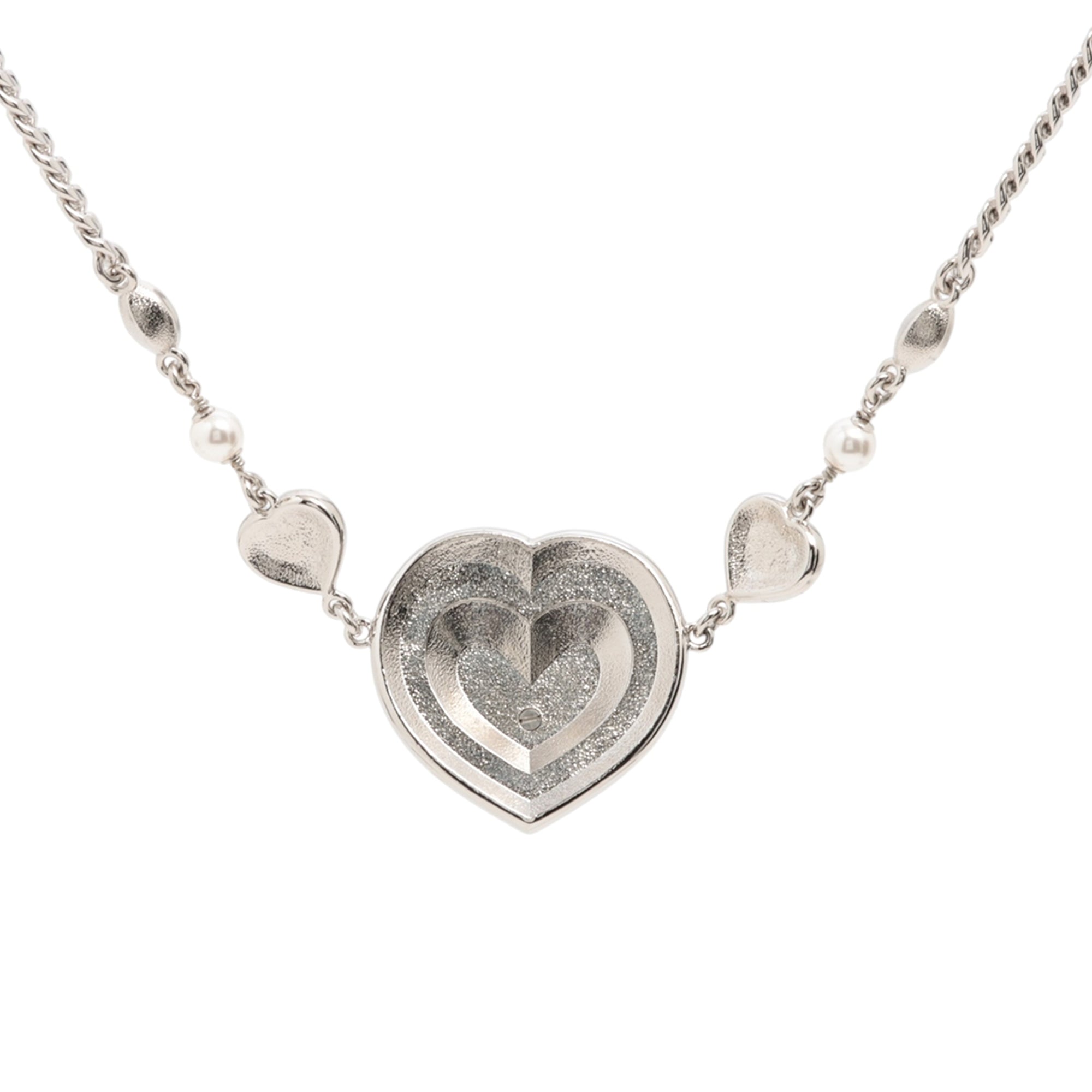 Chanel Silver Plated CC Rhinestones Heart Pendant Necklace