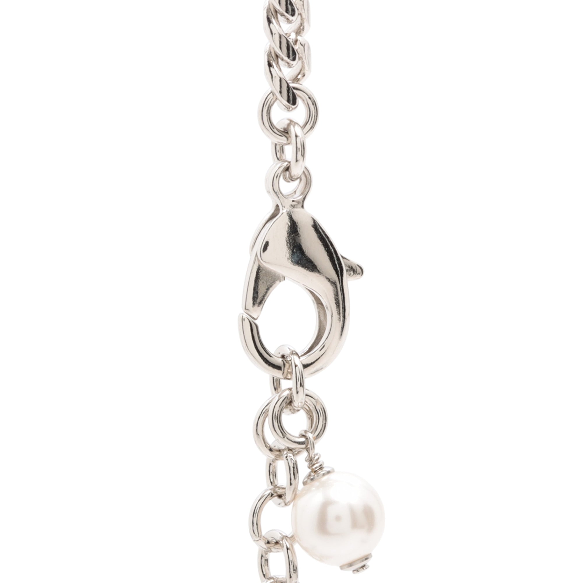 This necklace features a silver-tone chain and pendant with rhinestones and faux pearl details, and a lobster clasp closure. Inclusion: Dust bag, box. Retail Price: 1700.00