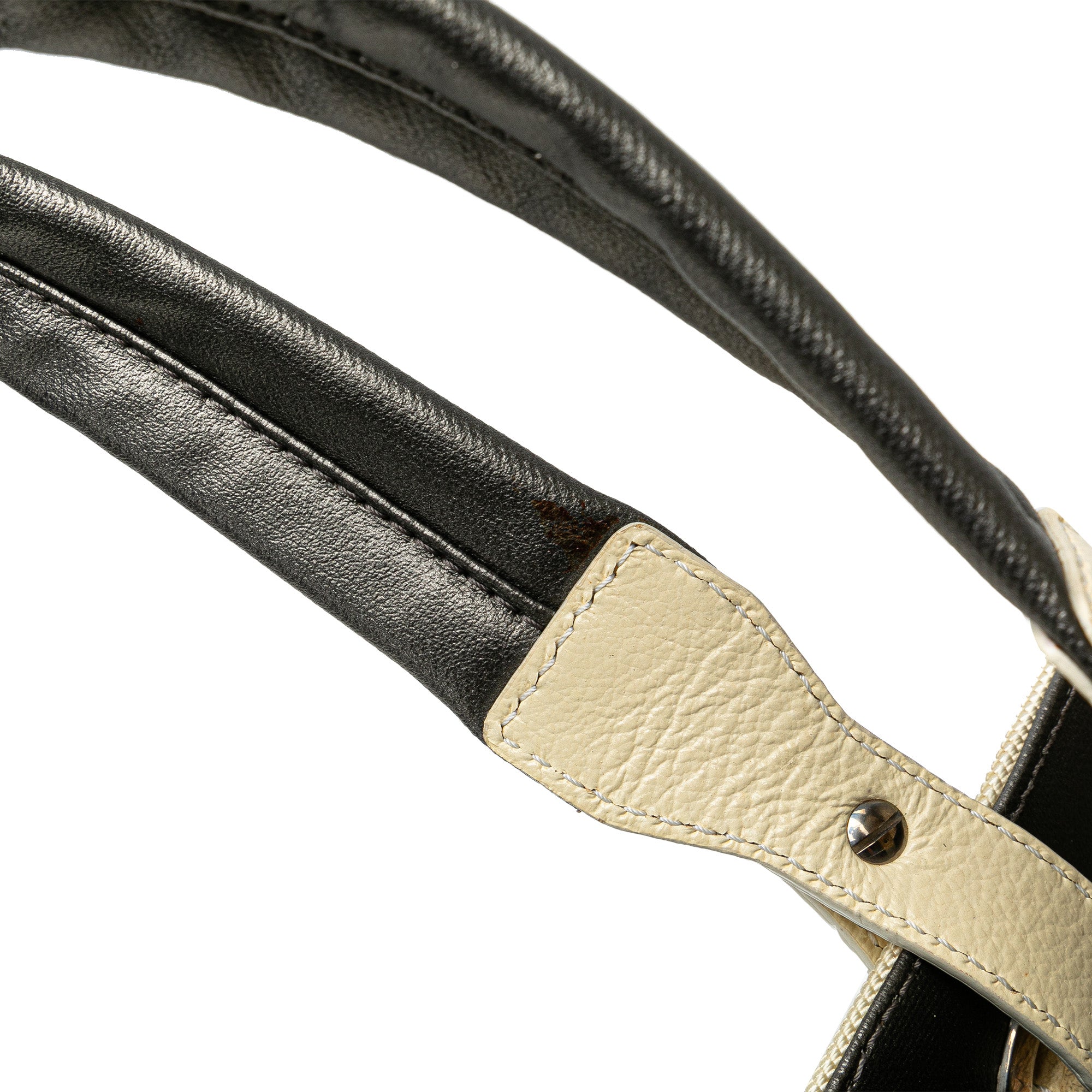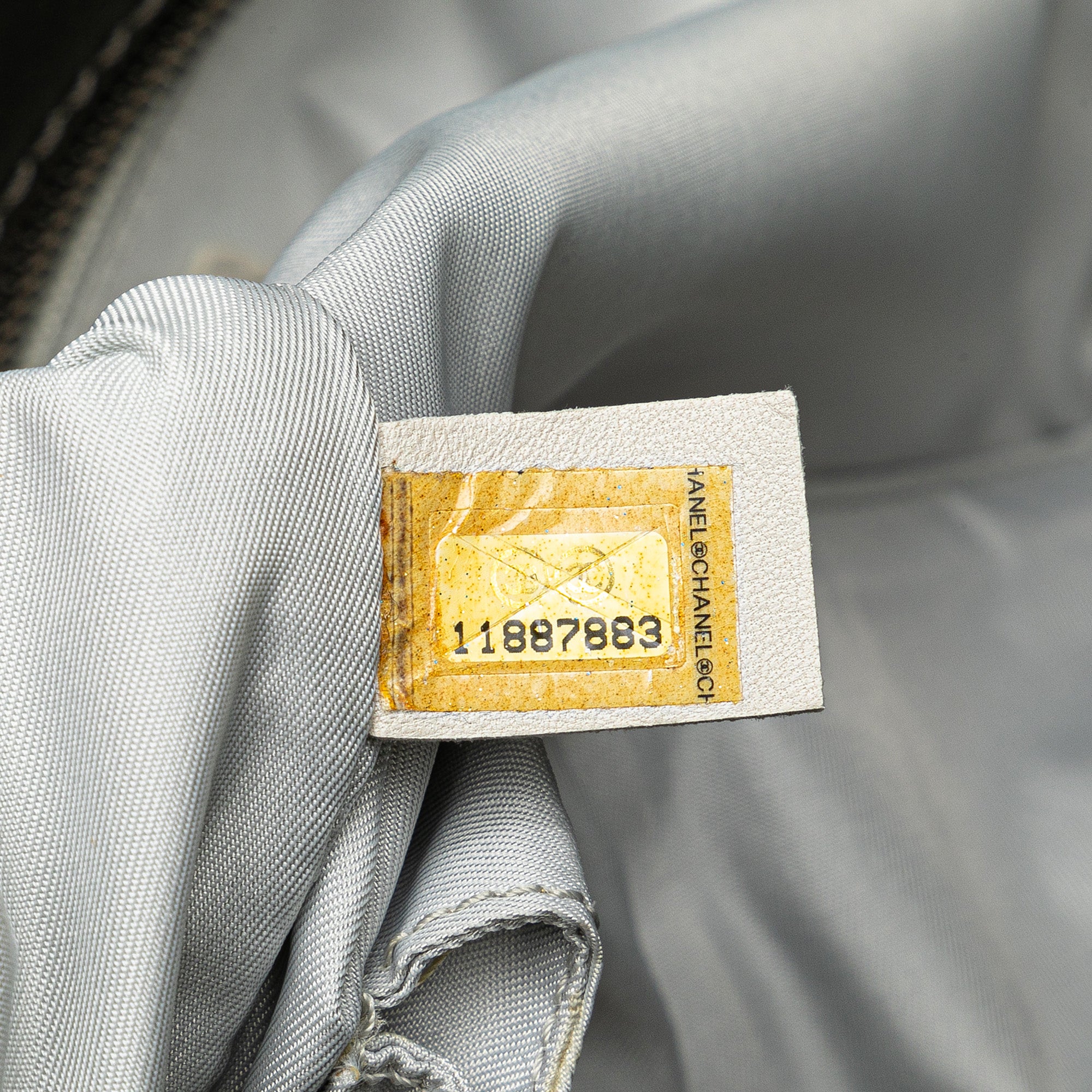 The Paris Biarritz tote bag features a quilted coated canvas body with nylon trim, flat handles, a top zip closure, and an interior zip compartment. Retail Price: 1295.00