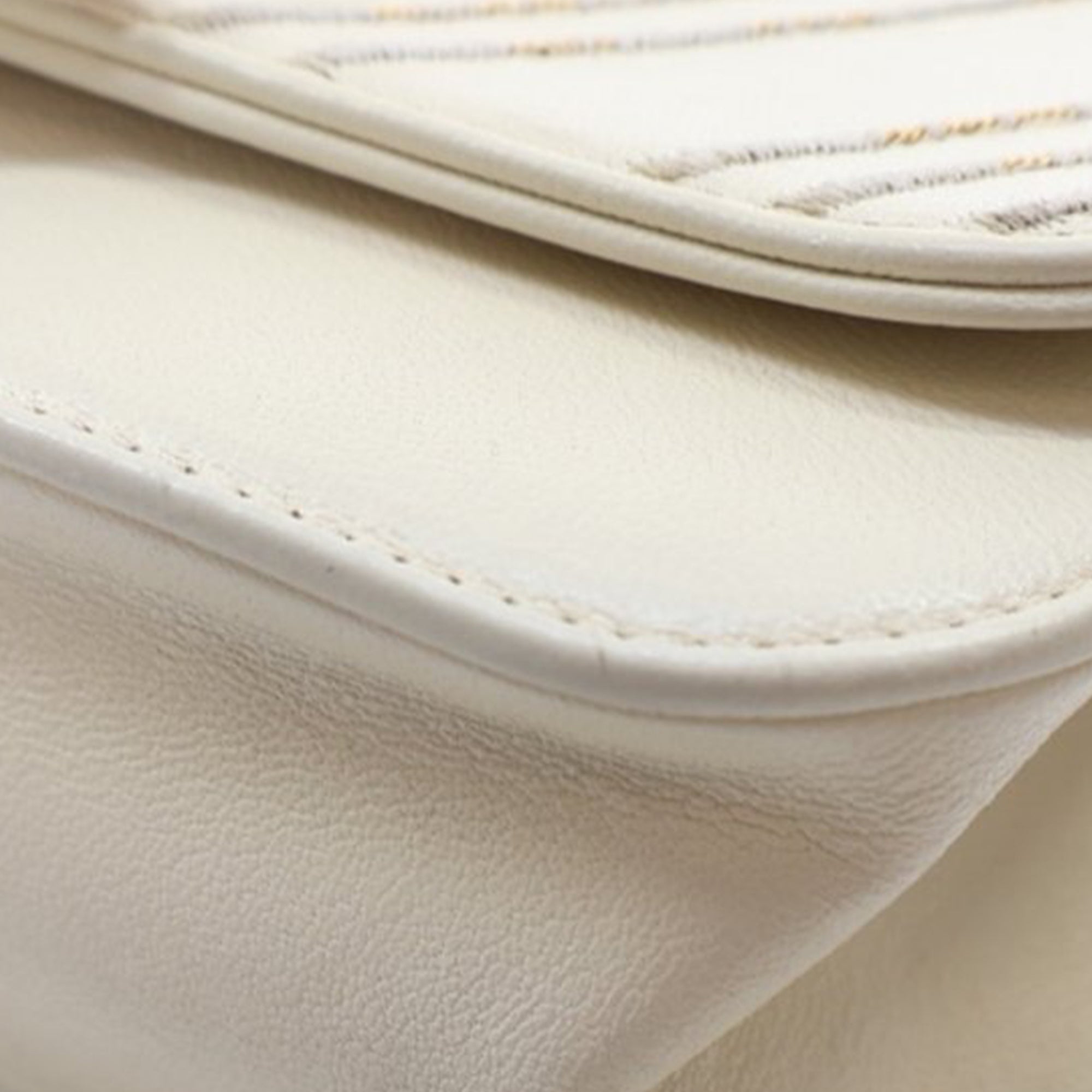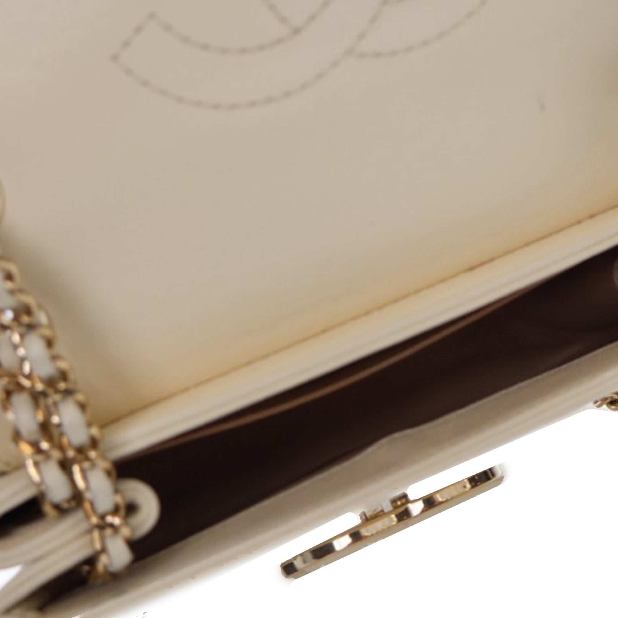 This crossbody bag features a sheepskin leather body, a sliding leather woven chain shoulder strap with leather guard, a front flap with a CC flip-lock closure, and an interior slip pocket. Inclusion: authenticity card. Retail Price: 3700.00