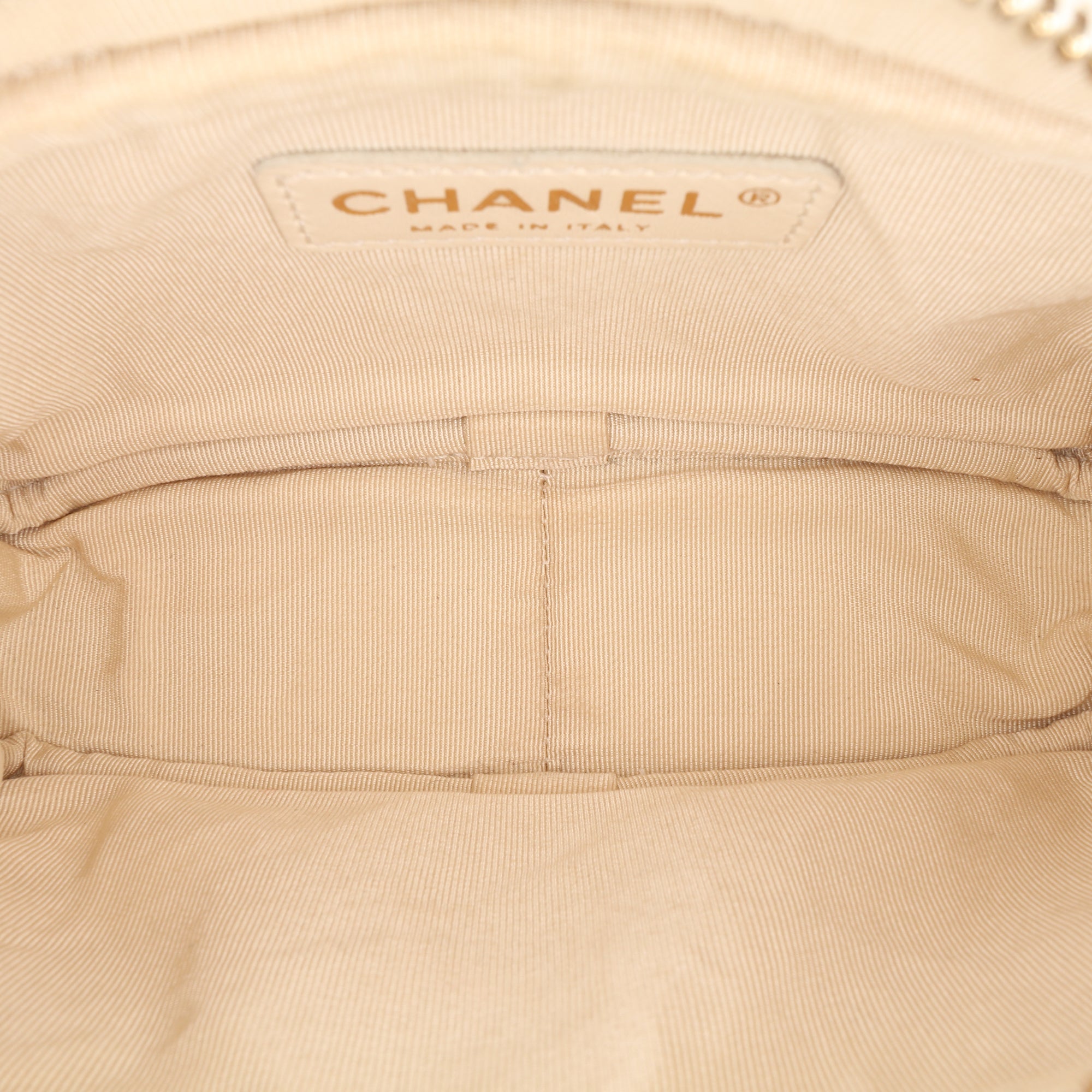 This crossbody bag features a quilted caviar leather body, a leather-woven chain link strap, a top zip closure, and an exterior front slip pocket. Retail Price: 3300.00