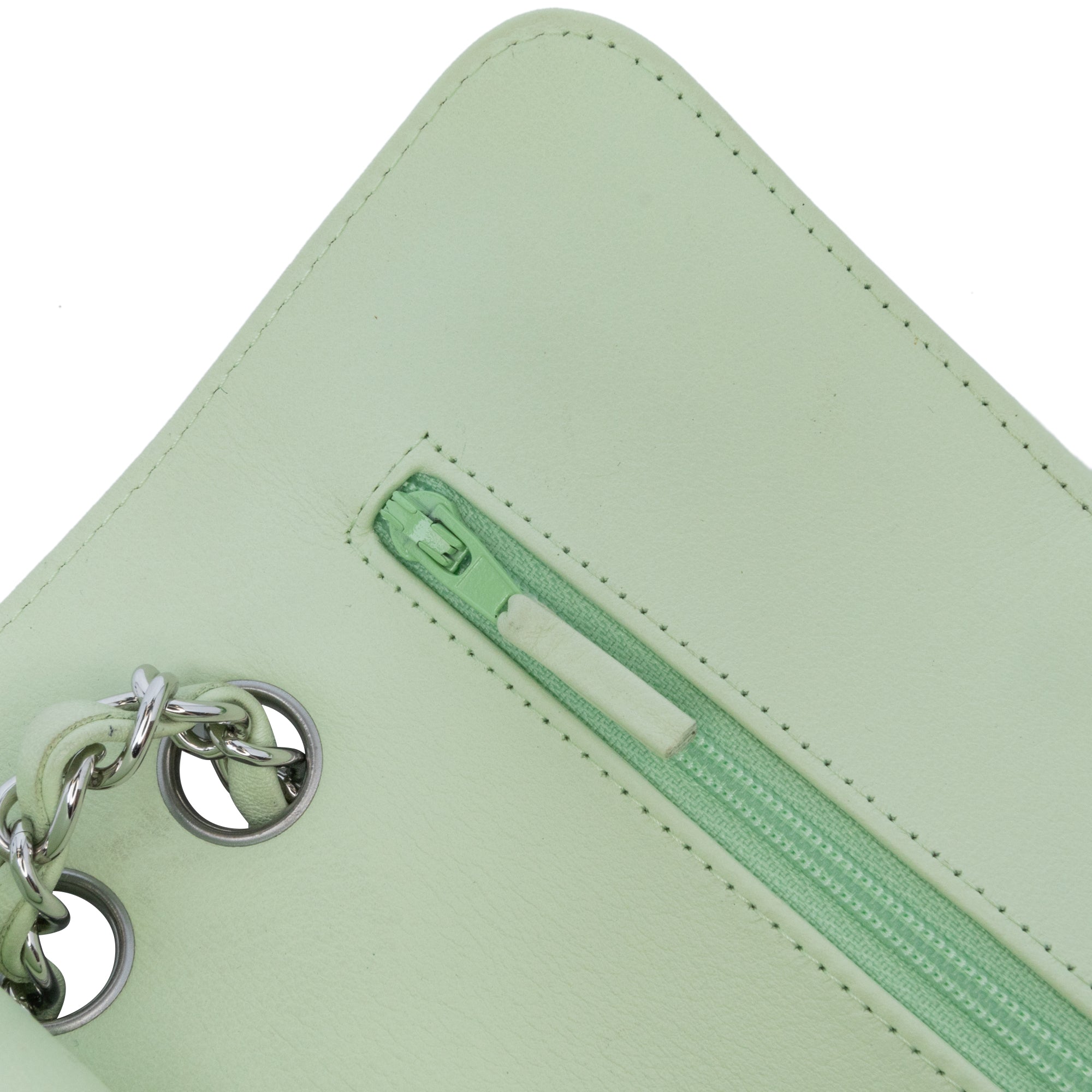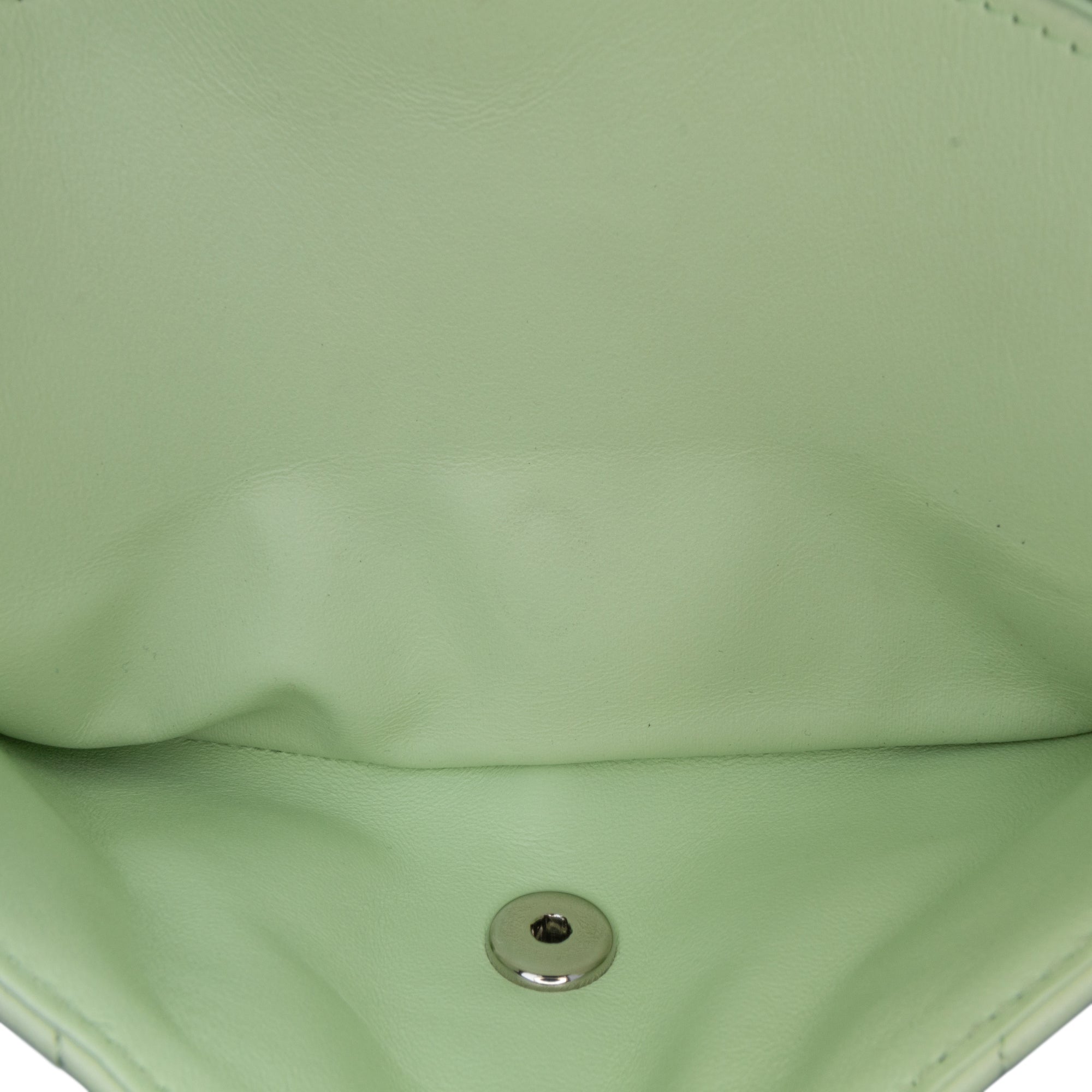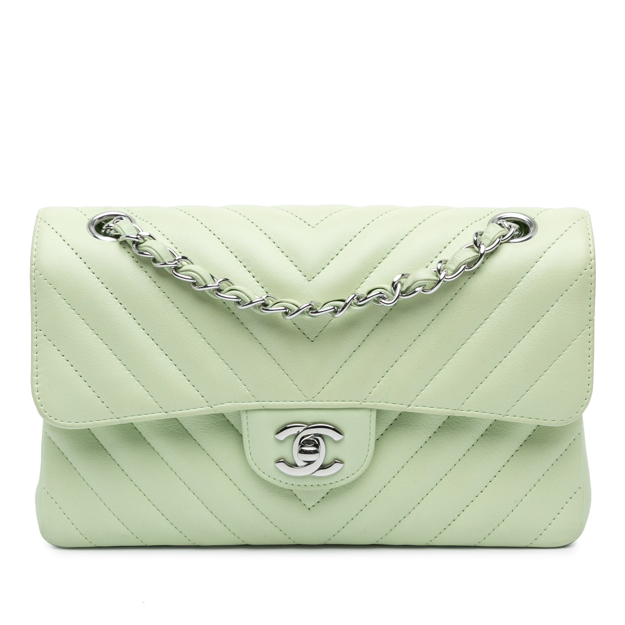 This shoulder bag features a quilted lambskin leather body, a leather woven chain link shoulder strap, front flaps with interlocking Cs and twist lock closure, an exterior back slip pocket, and interior zip and slip pockets. Retail Price: 10400.00