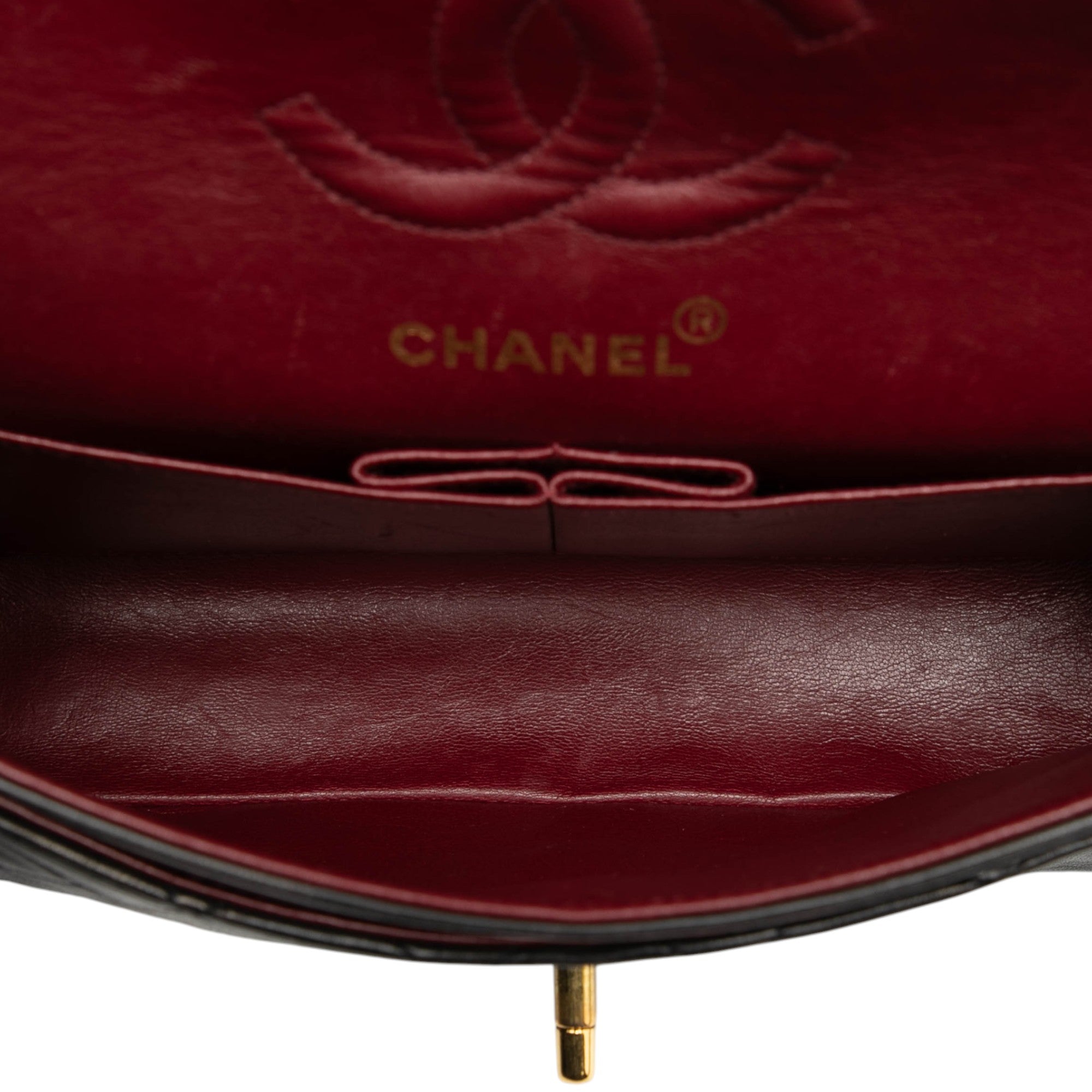 This shoulder bag features a quilted lambskin body, leather woven chain shoulder straps, double front flaps with interlocking Cs and a twist lock closure, an exterior back slip pocket, and interior slip pockets. Inclusion: authenticity card. Retail Price: 10400.00