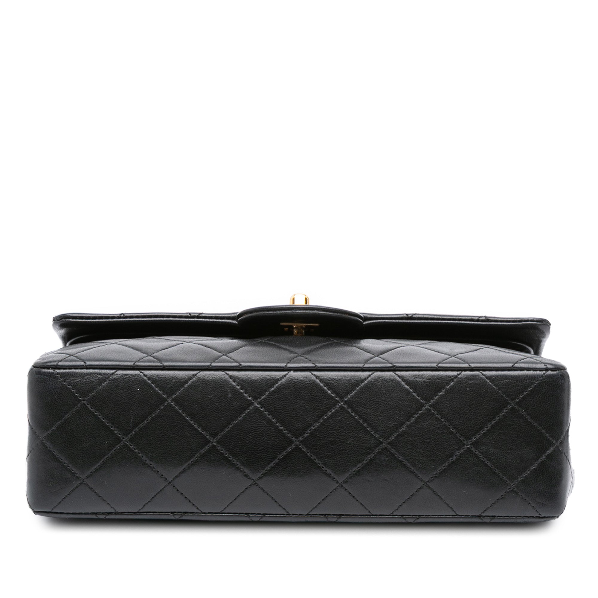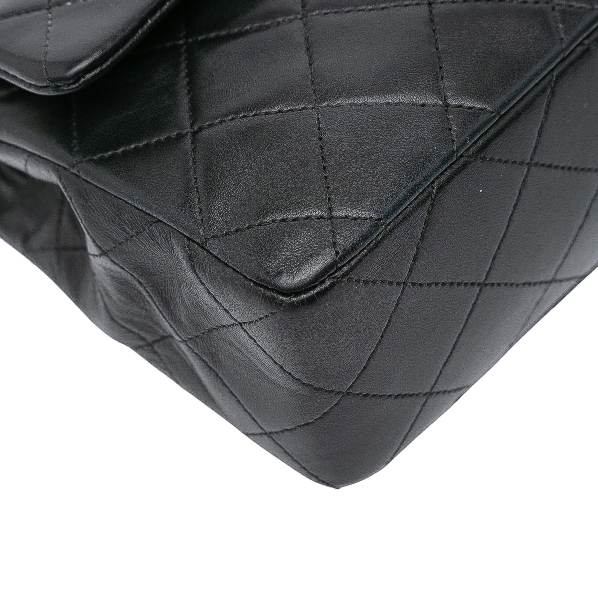 This shoulder bag features a quilted lambskin body, leather woven chain shoulder straps, double front flaps with interlocking Cs and a twist lock closure, an exterior back slip pocket, and interior slip pockets. Retail Price: 10400.00