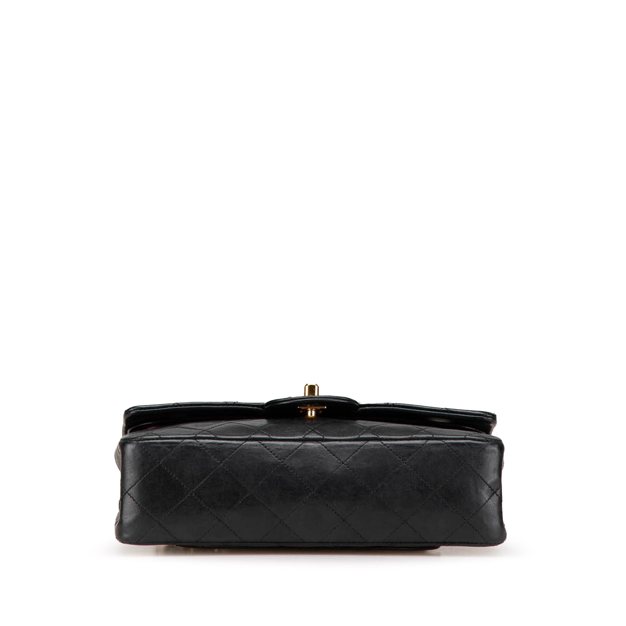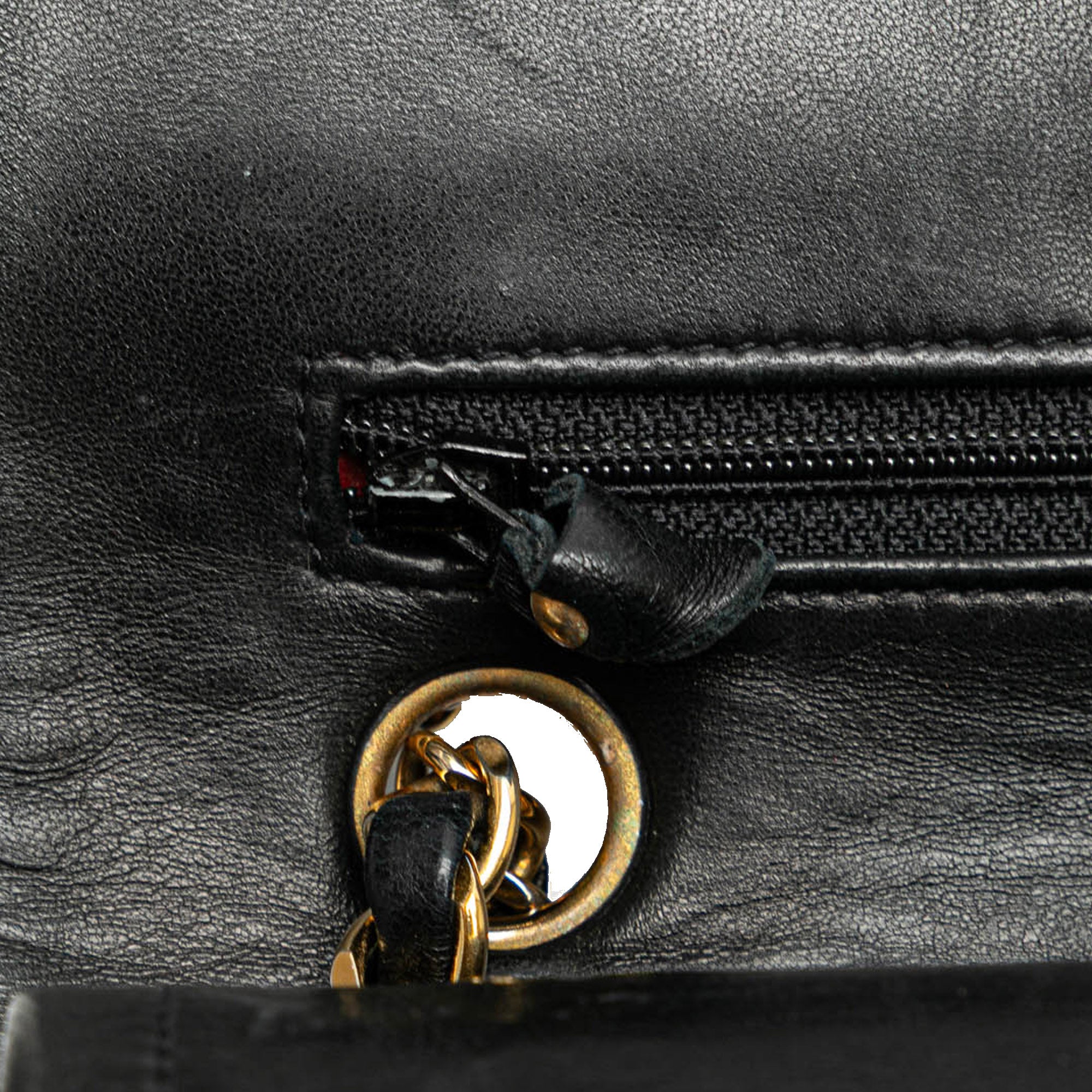 This shoulder bag features a quilted lambskin body, leather woven chain link shoulder straps, double front flaps with interlocking Cs and a twist lock closure, an exterior back slip pocket, and interior slip pockets. Retail Price: 10400.00