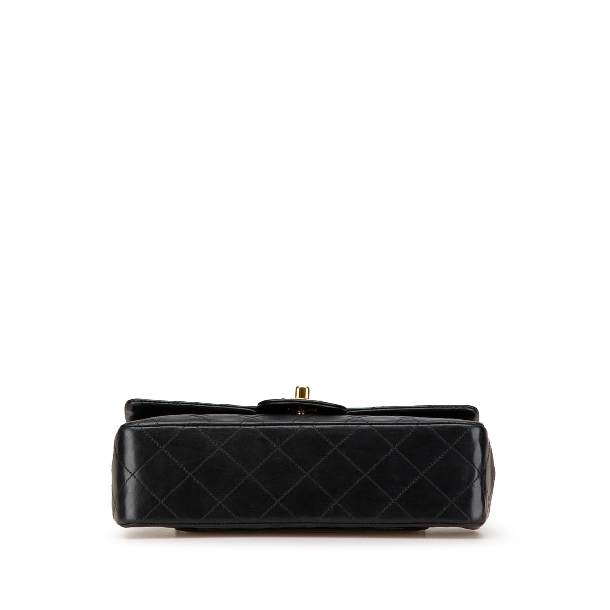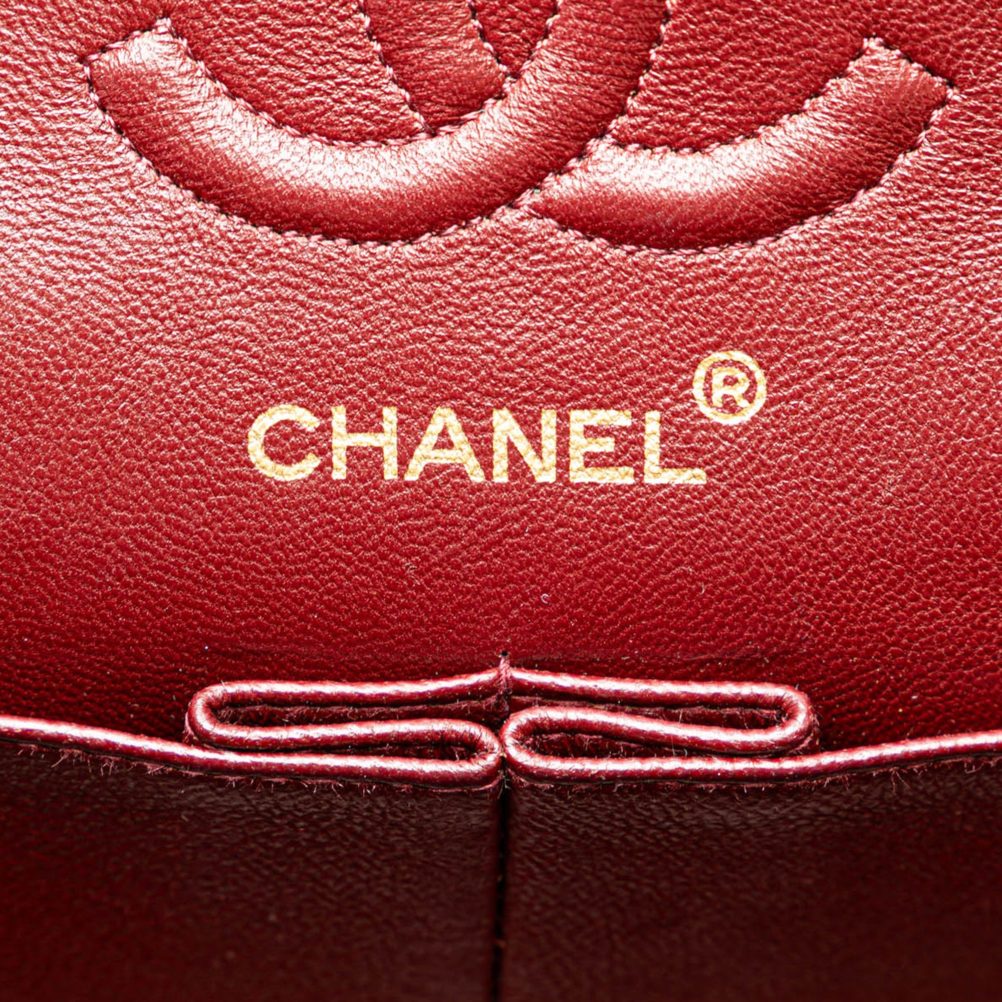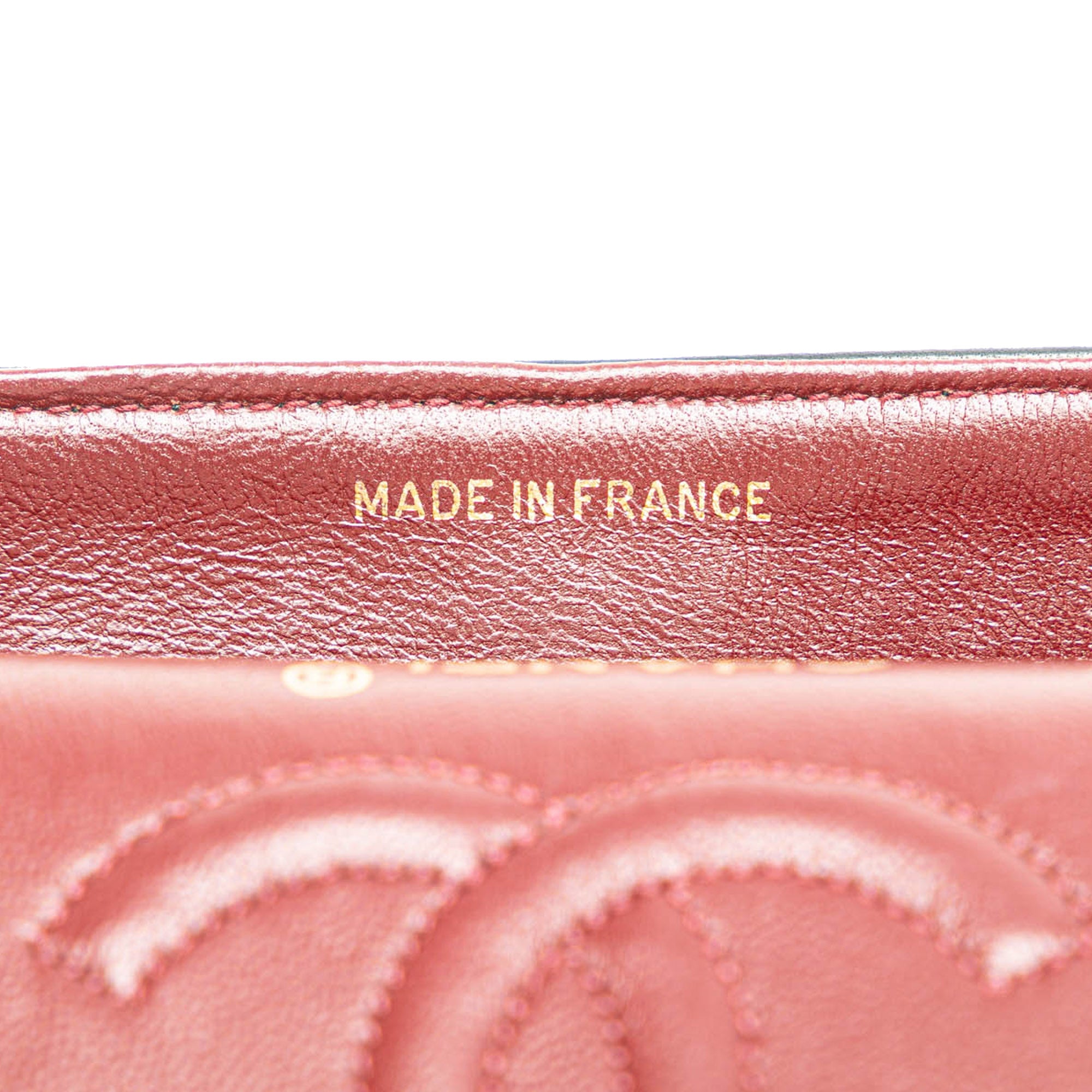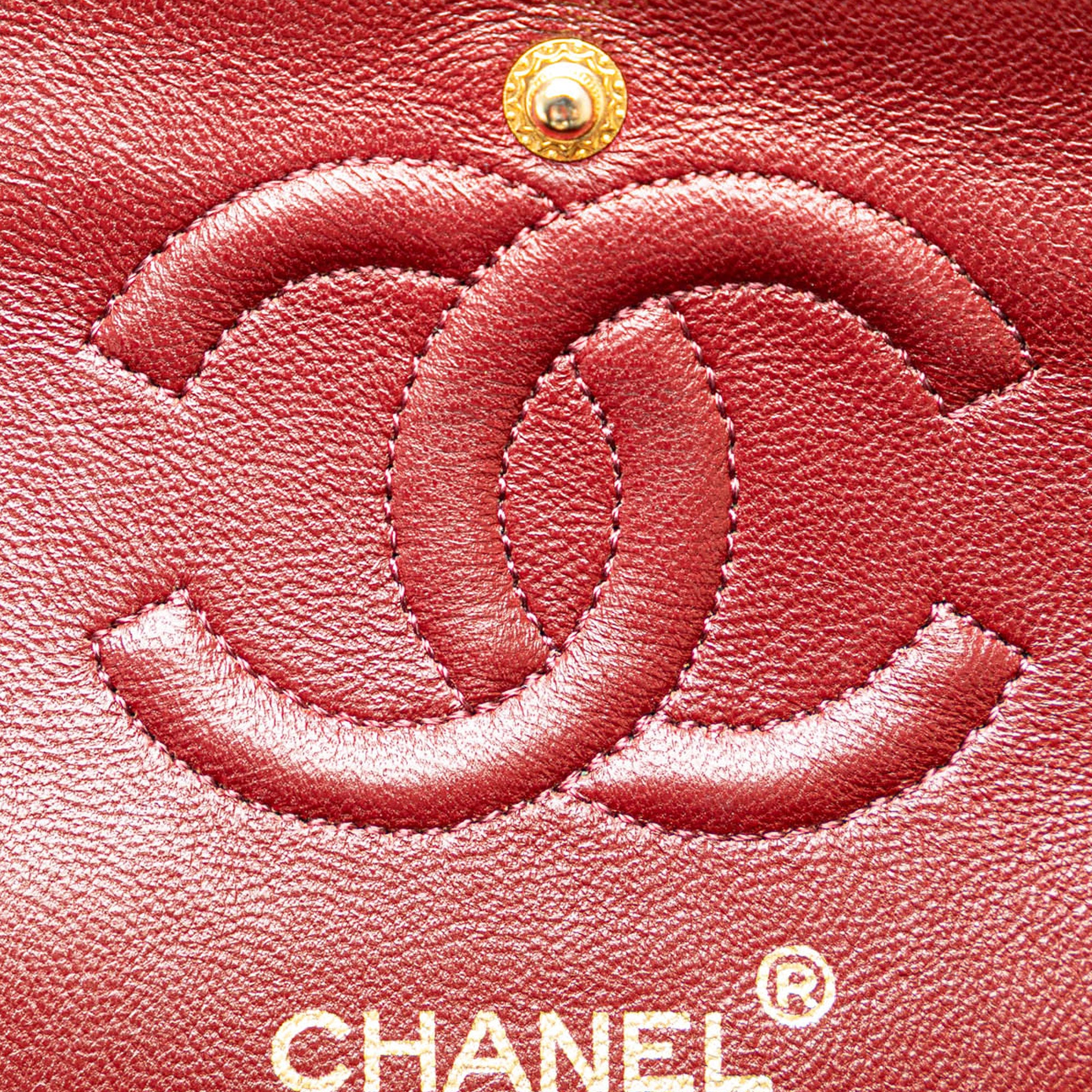 This shoulder bag features a quilted lambskin body, leather woven chain shoulder straps, double front flaps with interlocking Cs and a twist lock closure, an exterior back slip pocket, and interior slip pockets. Retail Price: 10400.00