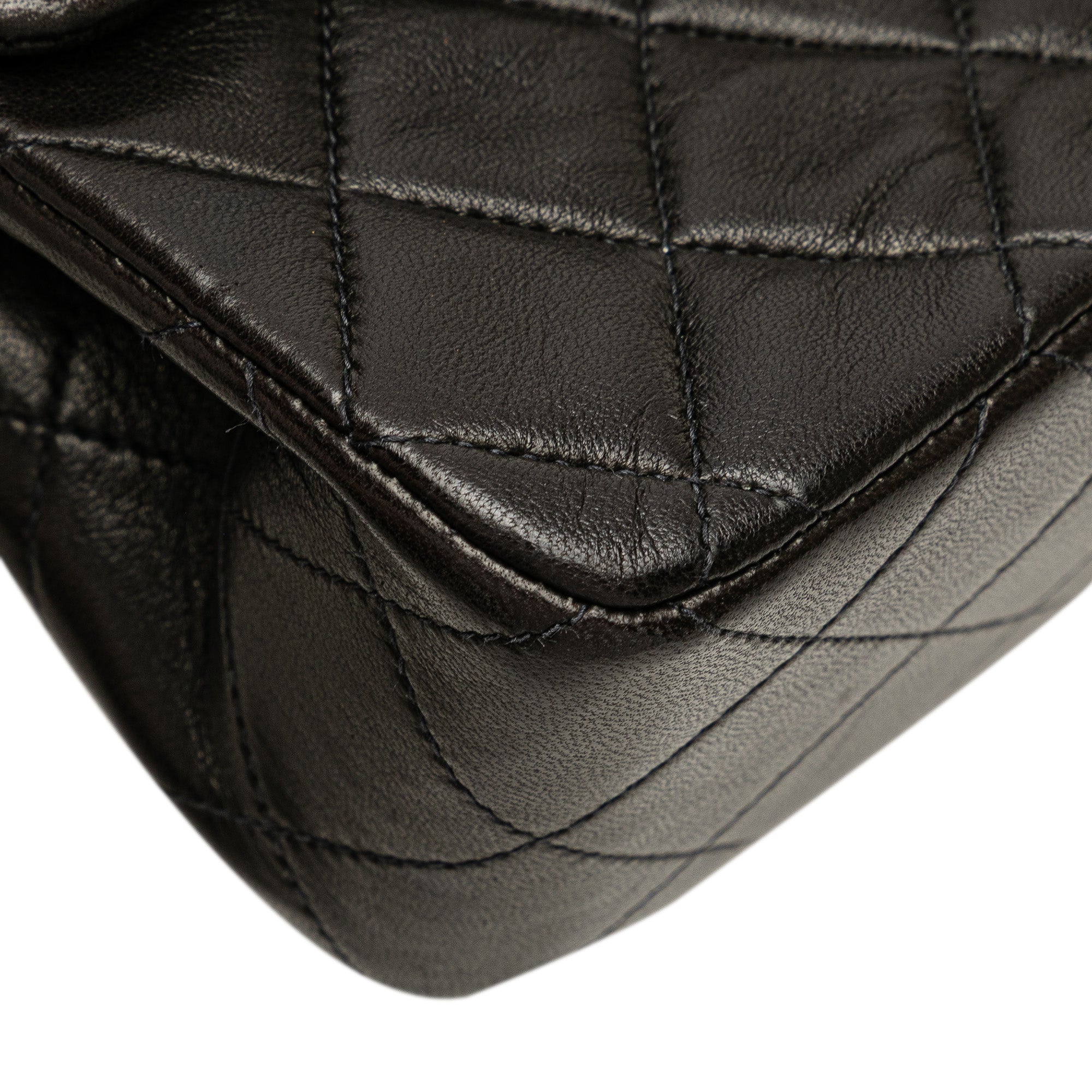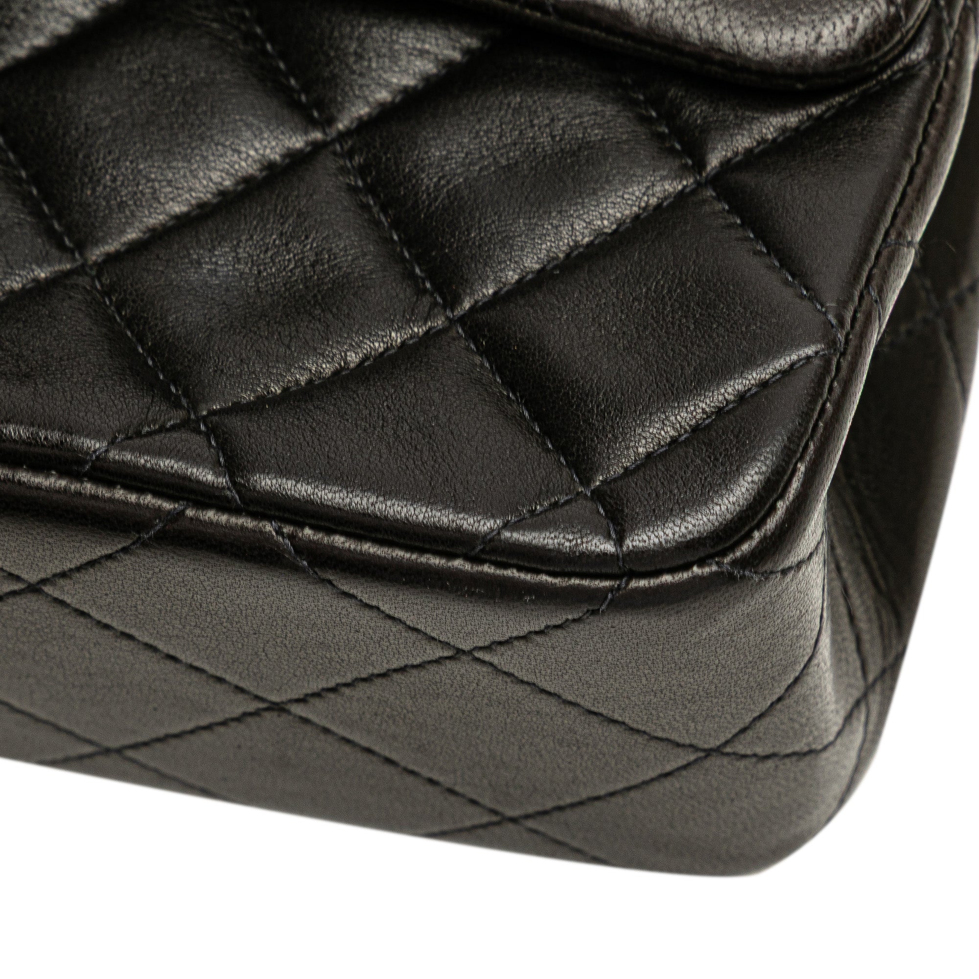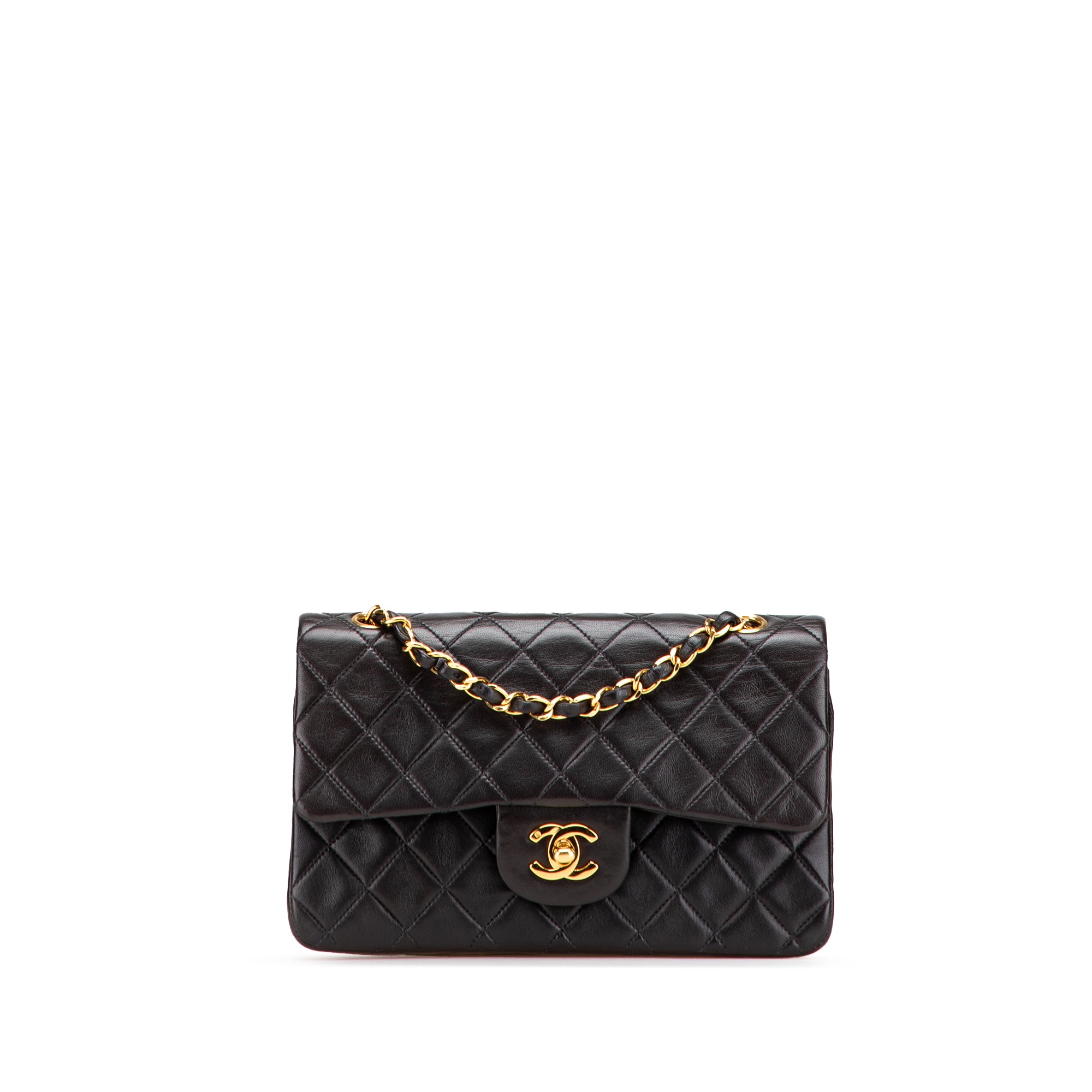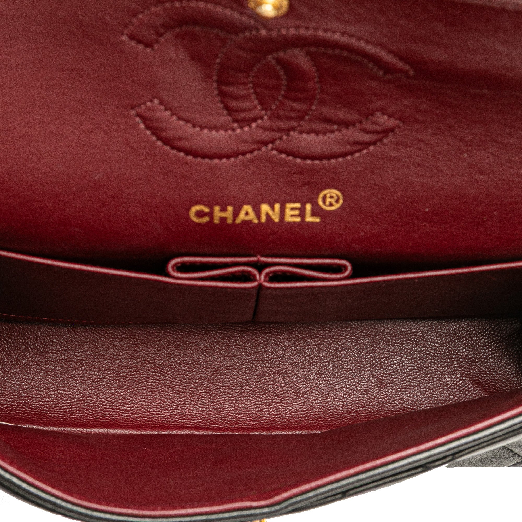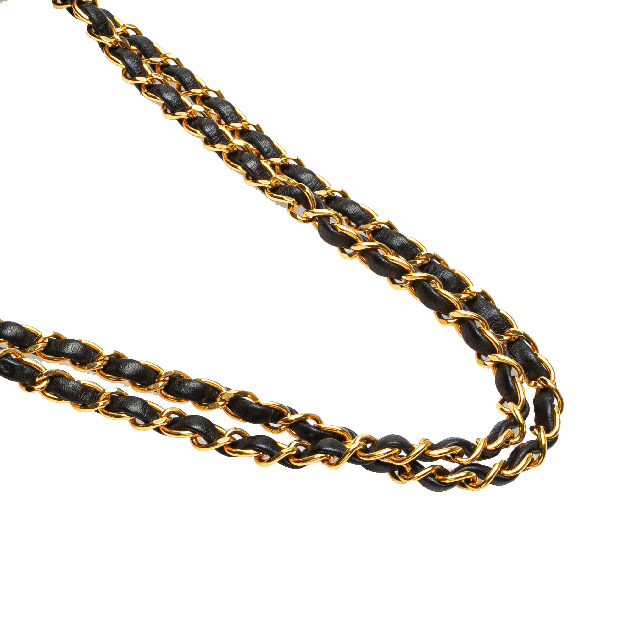 This shoulder bag features a quilted lambskin body, leather woven chain shoulder straps, double front flaps with interlocking Cs and a twist lock closure, an exterior back slip pocket, and interior zip and slip pockets. Retail Price: 10400.00