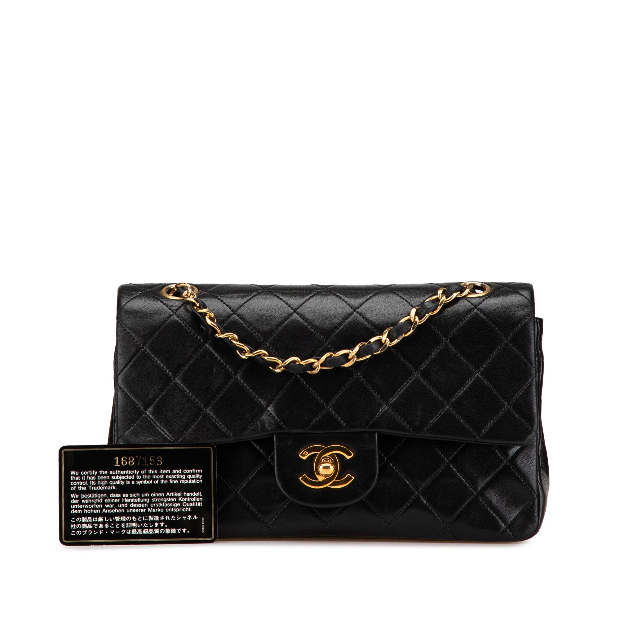 This shoulder bag features a quilted lambskin body, leather woven chain shoulder straps, double front flaps with interlocking Cs and a twist lock closure, an exterior back slip pocket, and interior zip and slip pockets. Strap is repaired. Inclusion: authenticity card. Retail Price: 10400.00