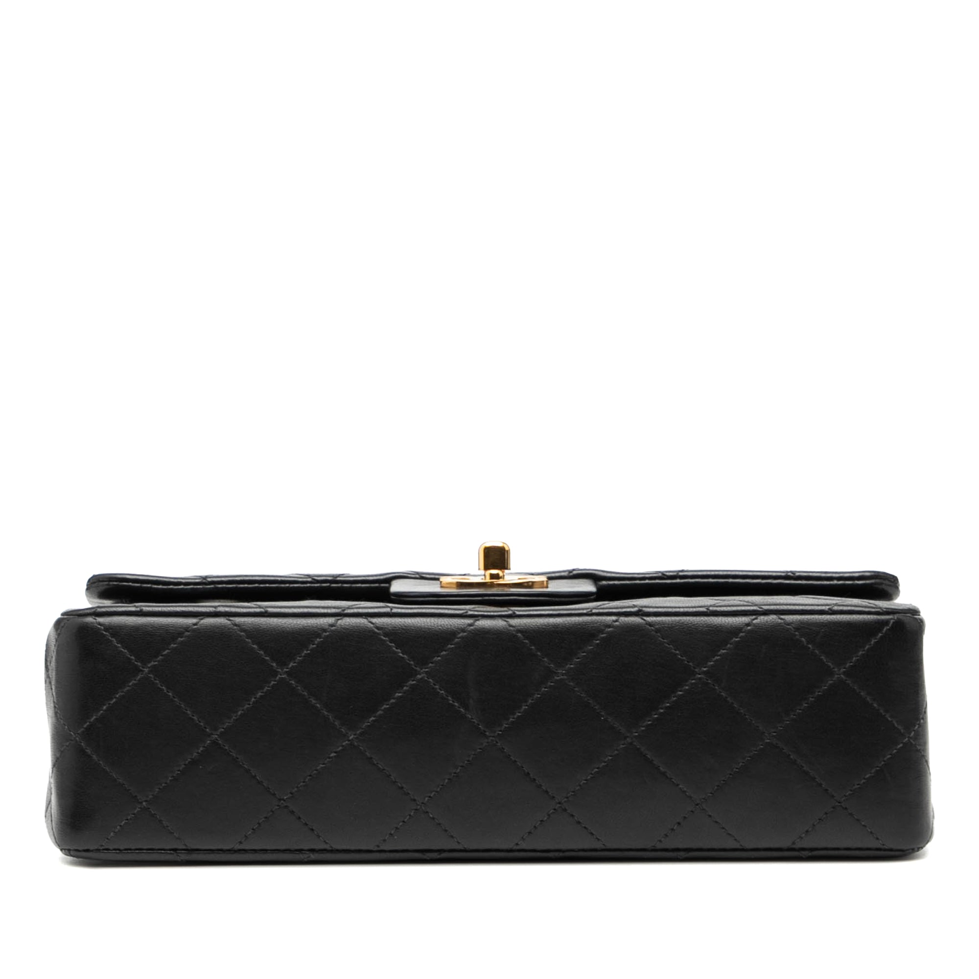 This shoulder bag features a quilted lambskin leather body, leather woven chain link shoulder straps, double front flaps with interlocking Cs and a twist lock closure, an exterior back slip pocket, and interior zip and slip pockets. Retail Price: 10400.00