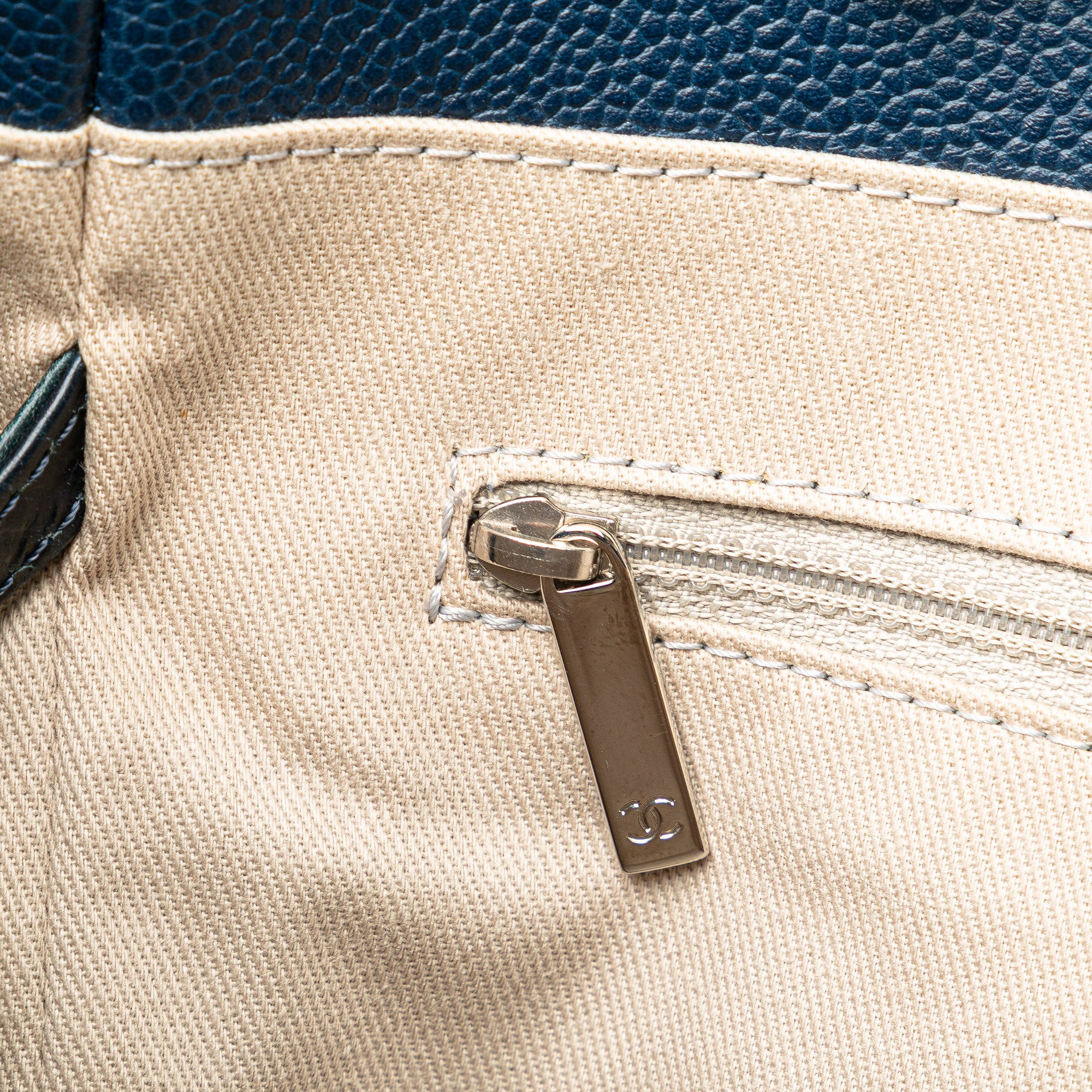 The Deauville features a calfskin leather body with caviar leather trim, leather woven chain handles with leather guards, an open top with a magnetic snap button closure, an exterior back slip pocket, and interior zip and slip pockets. Inclusion: Dust bag, authenticity card. Retail Price: 8150.00