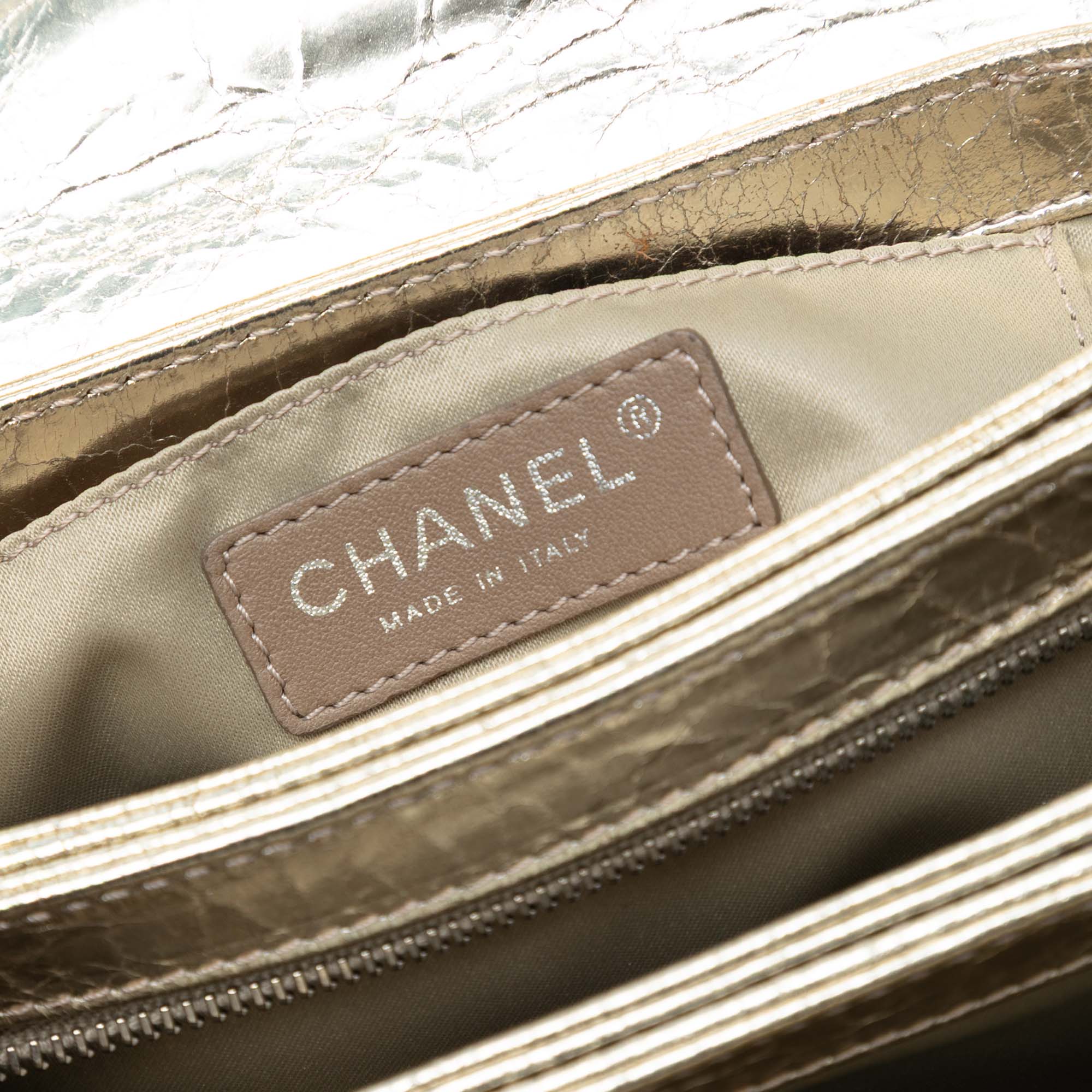 Chanel Small Metallic Crackled Calfskin Clams Pocket Flap