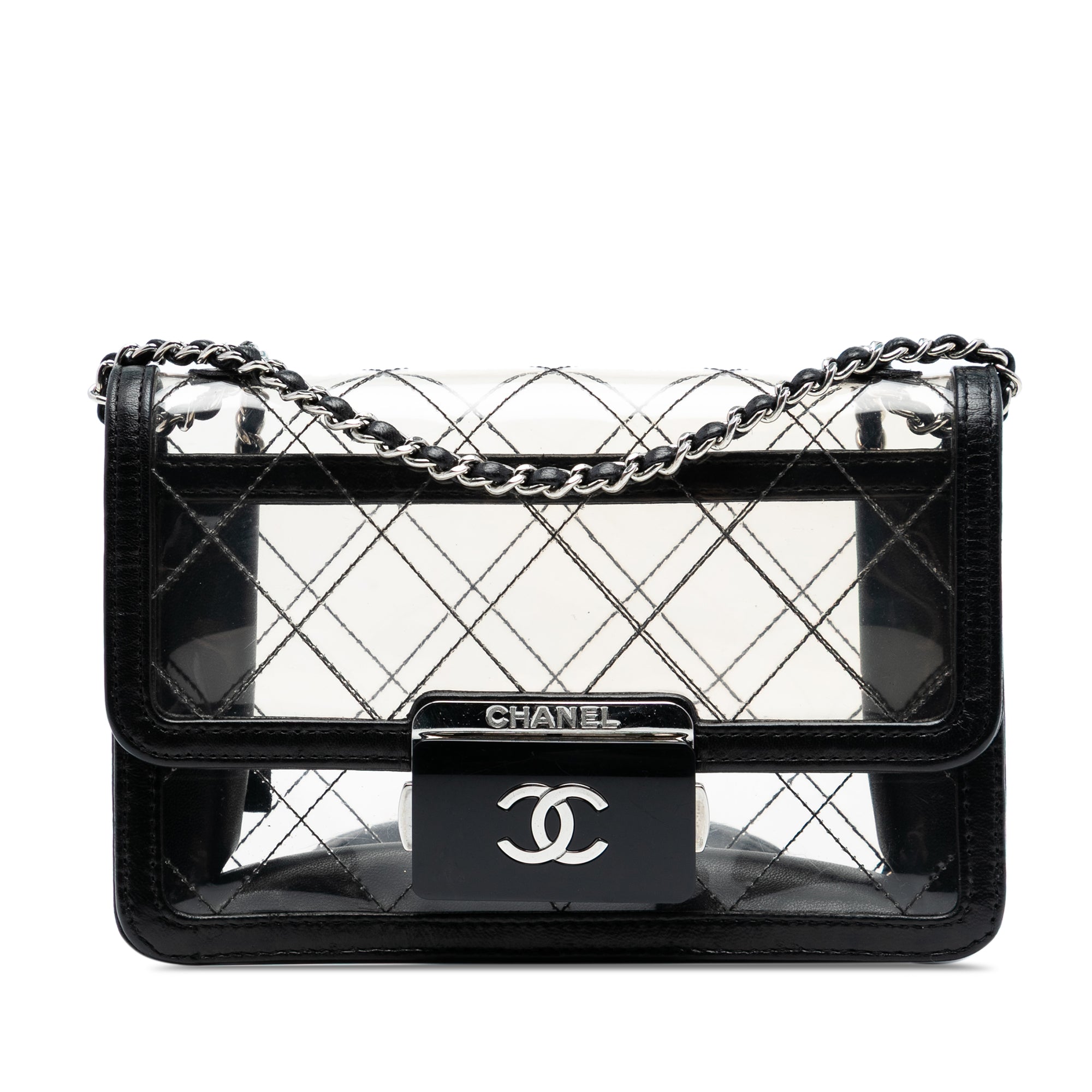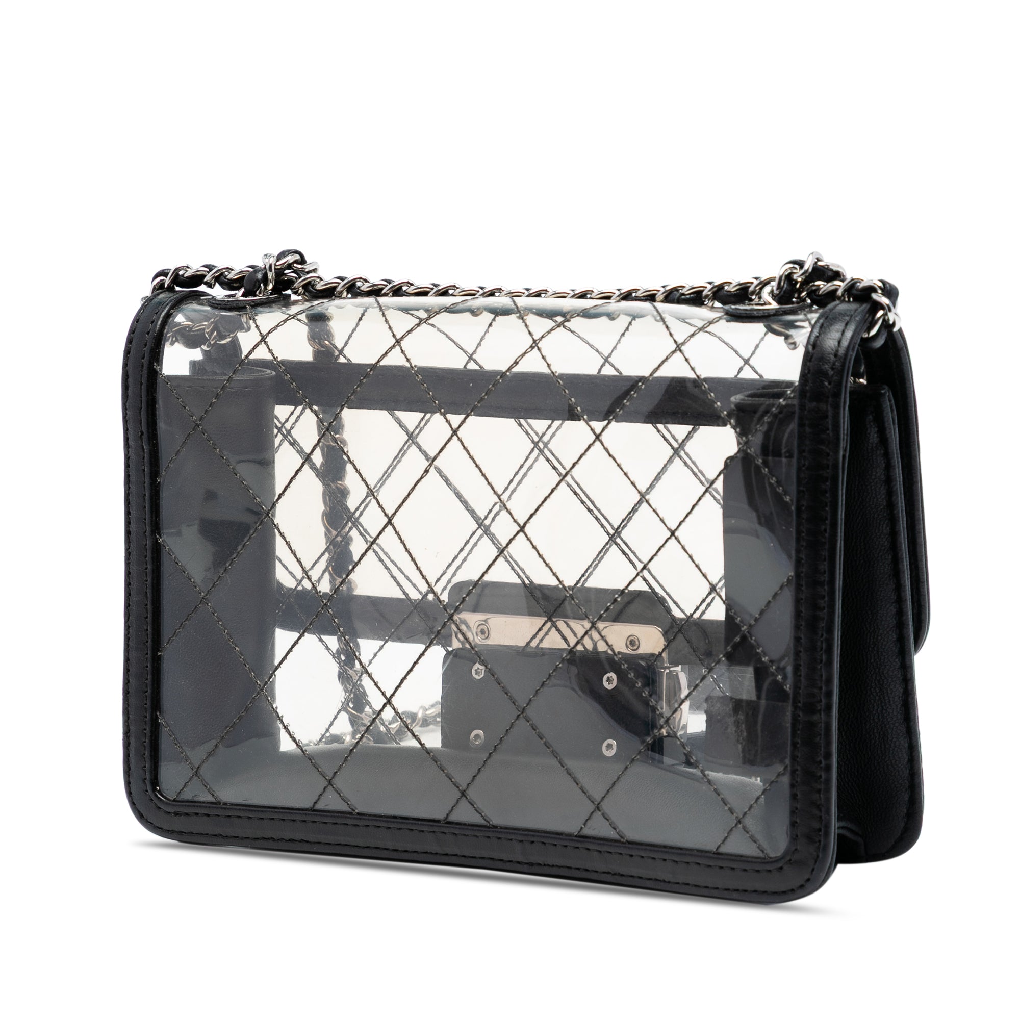 The Naked Flap features a PVC body with leather trim, leather-woven chain shoulder straps, and a front flap with snap closure. Retail Price: 2725.00