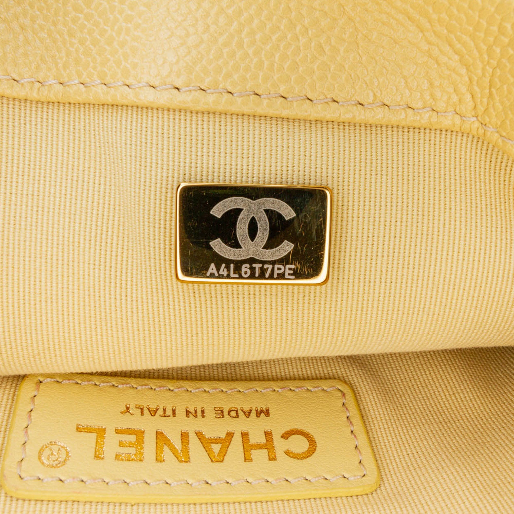 This crossbody bag features a quilted caviar leather body, a leather woven chain shoulder strap with leather guard, a front flap with a twist lock closure, and an interior zip pocket. Inclusion: Dust bag, box. Retail Price: 2900.00