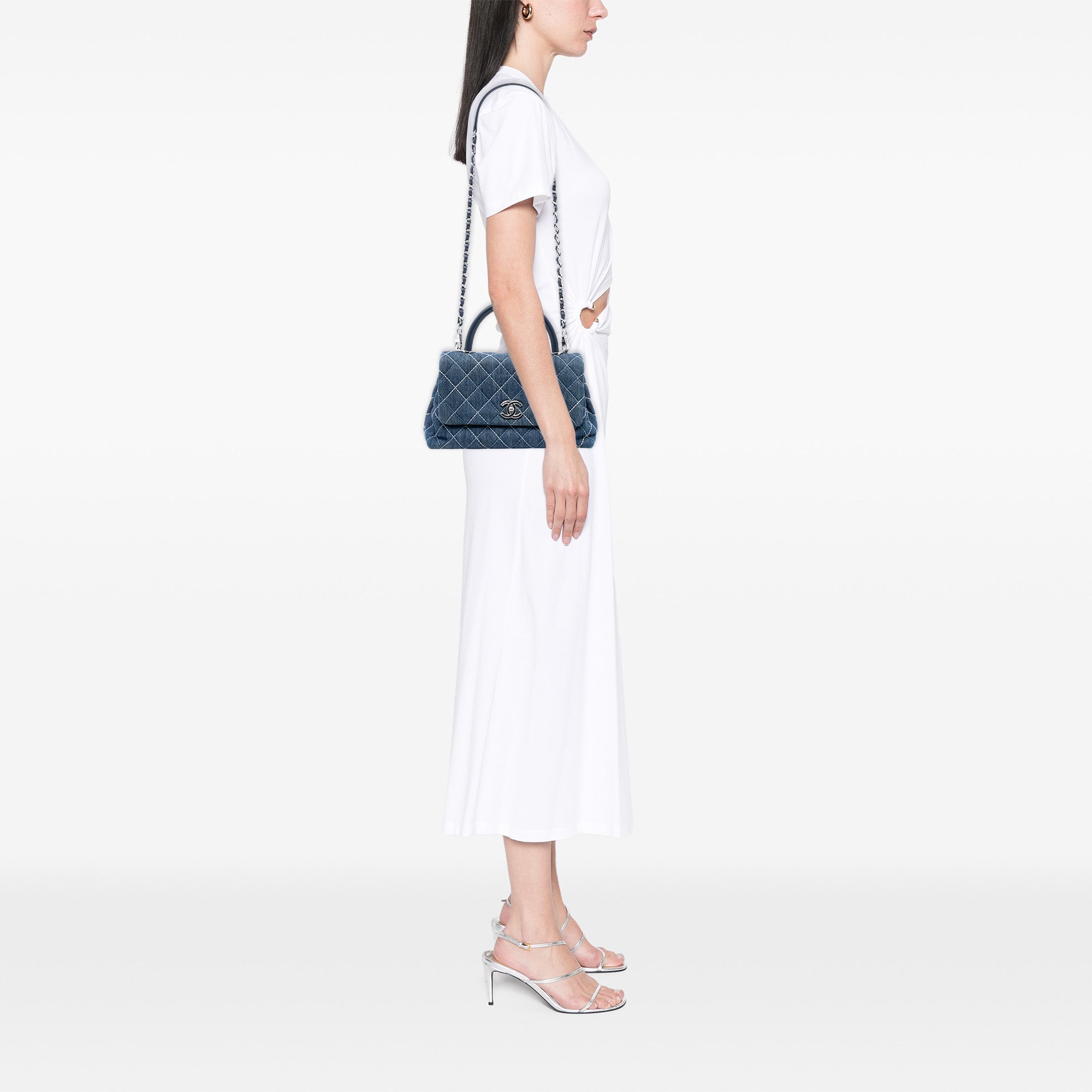 Chanel Small Quilted Denim Coco Top Handle Bag