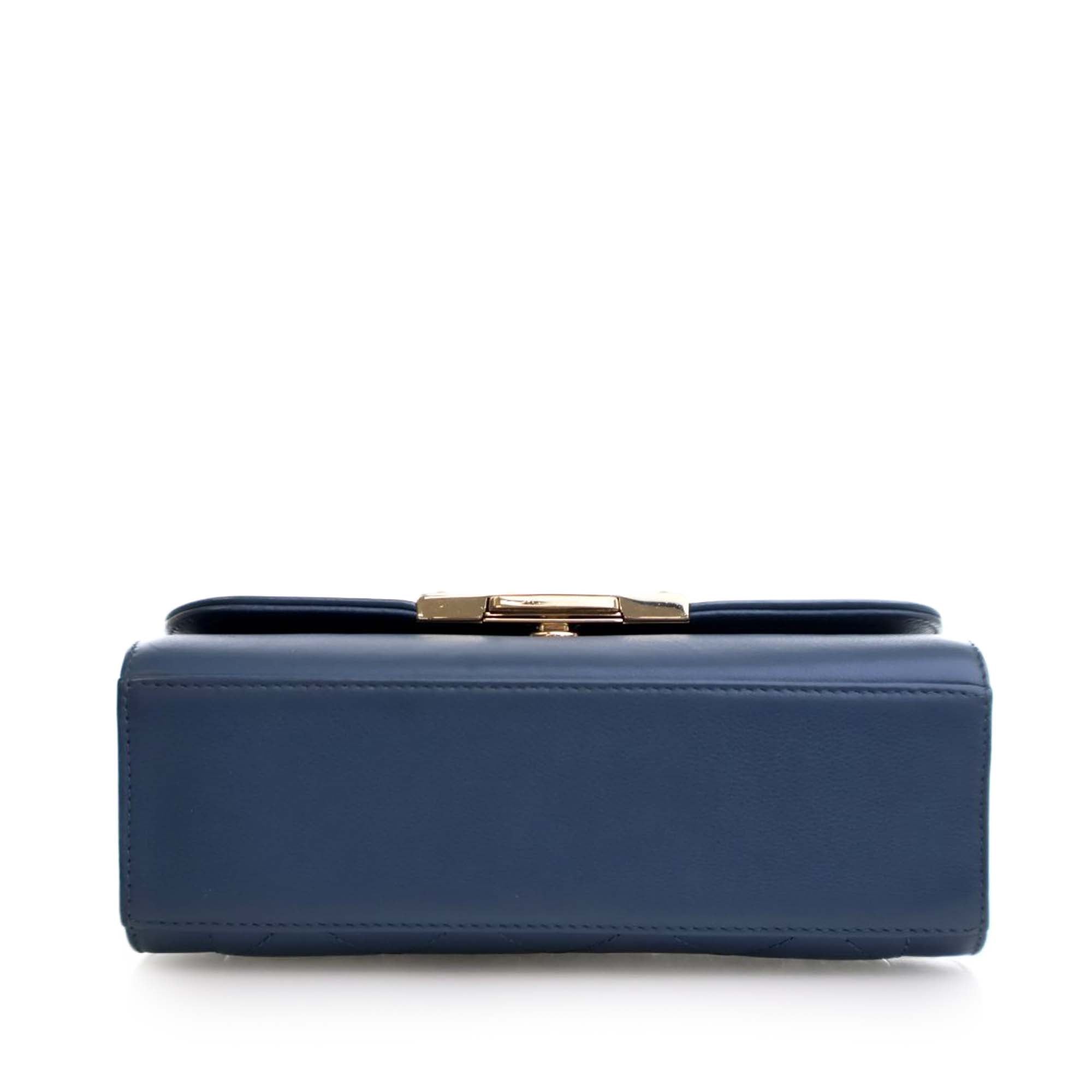 The Label Click features a quilted leather body, a flat leather handle, a chain link shoulder strap with leather shoulder guard, a front flap with push lock closure, and interior zip and slip pockets. Inclusion: Dust bag. Retail Price: 4500.00
