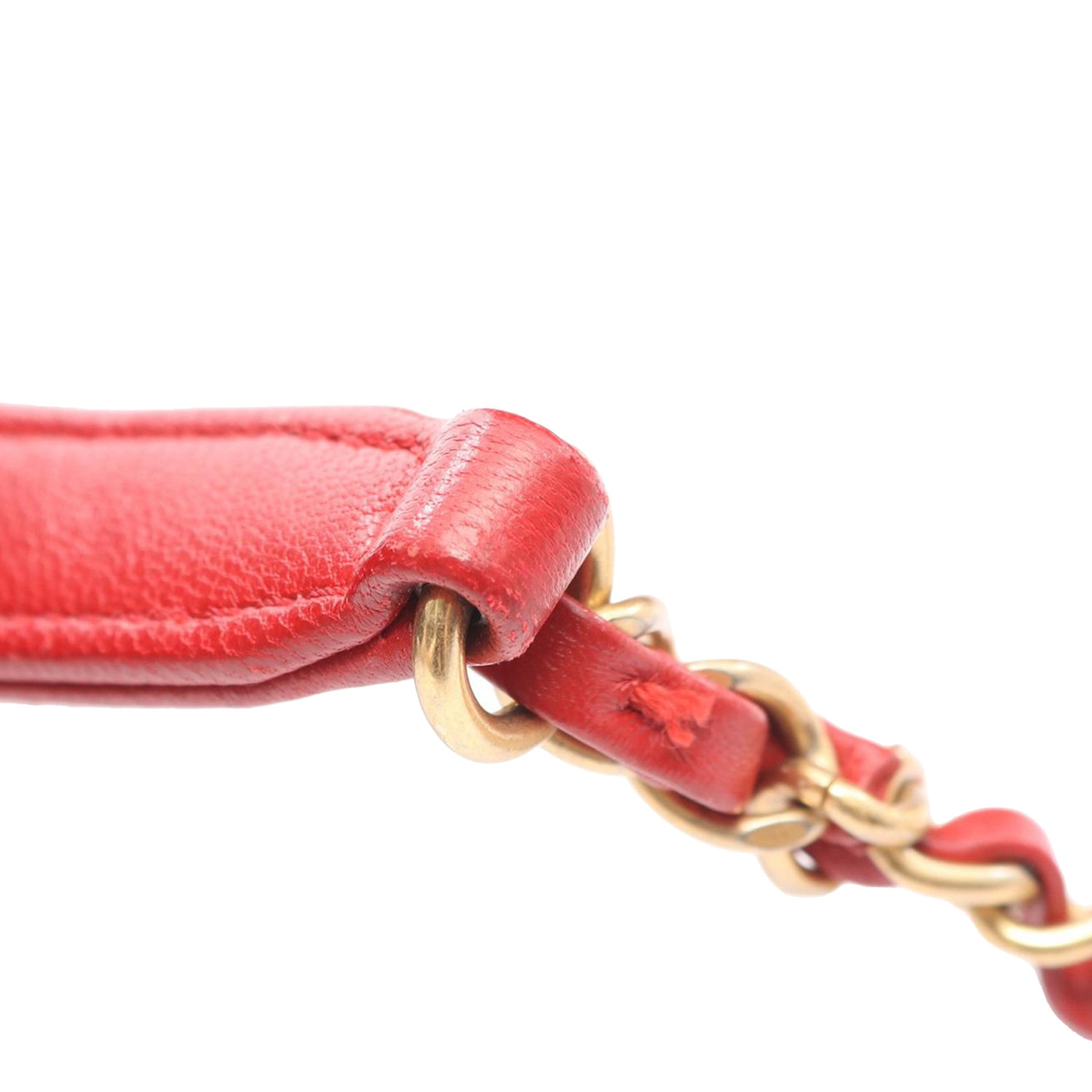 This satchel features a quilted lambskin leather body, a flat leather top handle, a leather woven chain strap with leather guard, a top zip closure, and an interior slip pocket. Retail Price: 3500.00