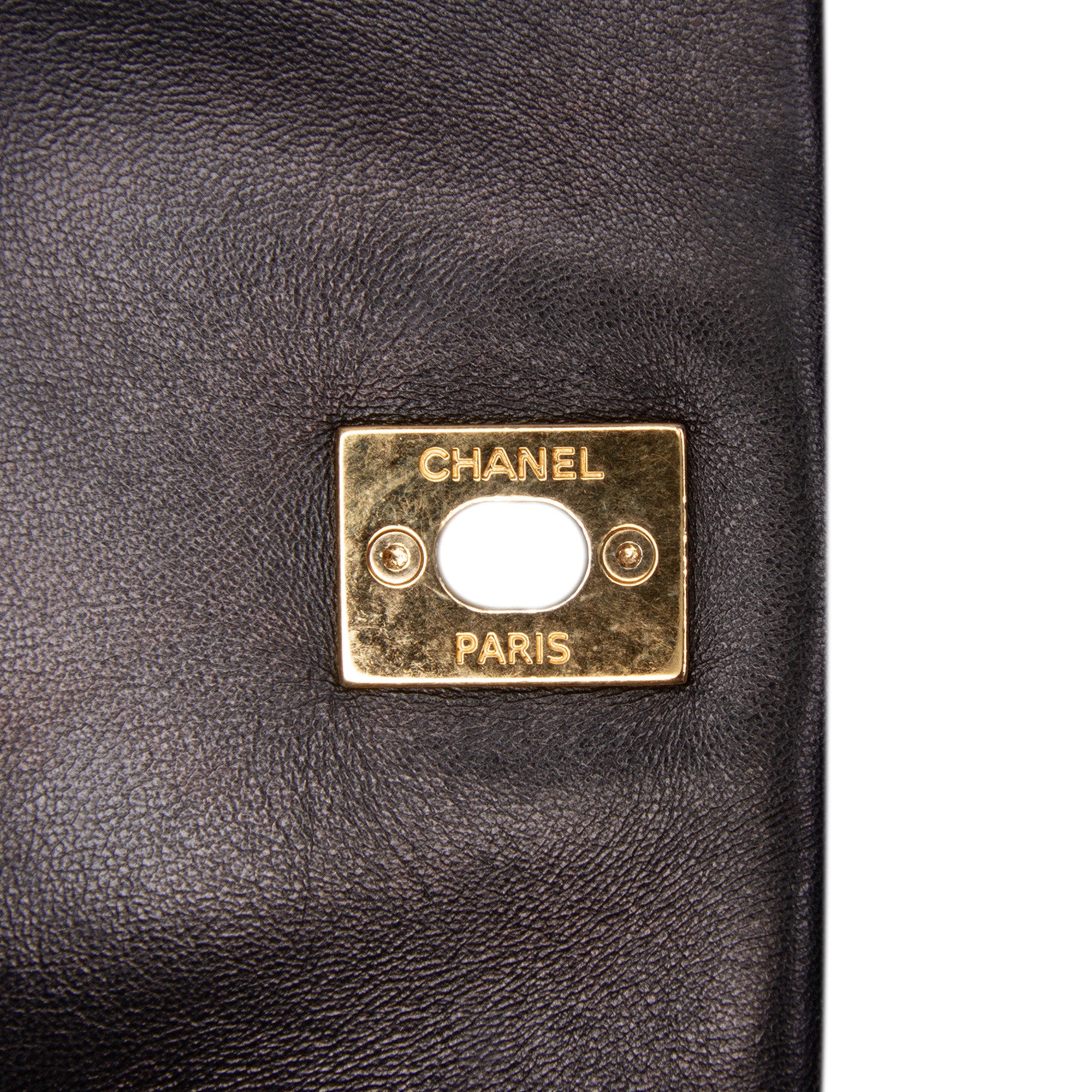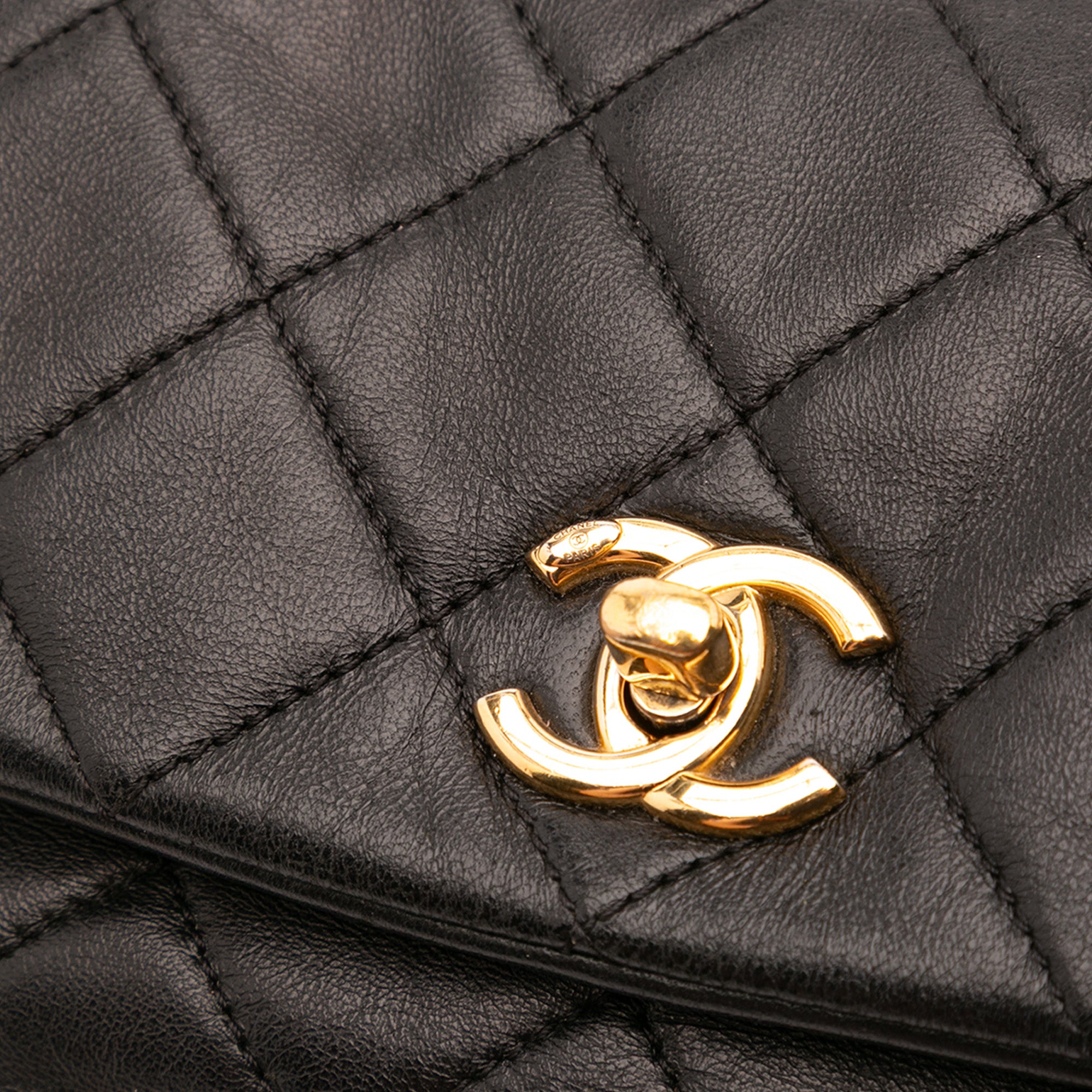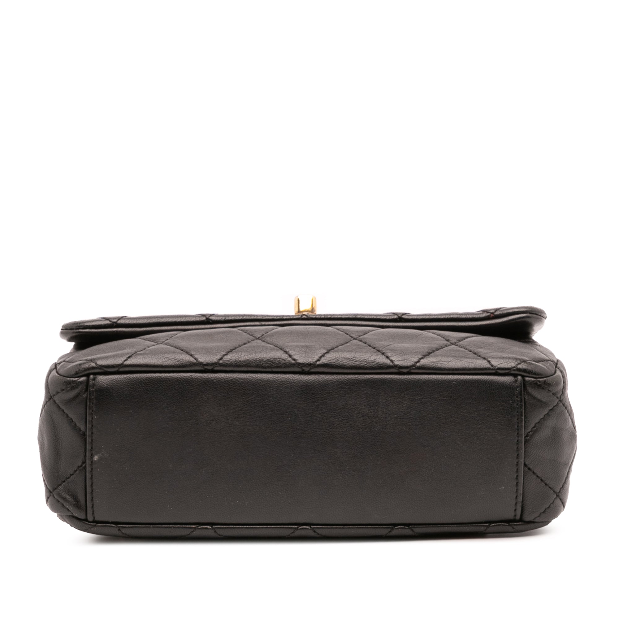 This flap bag features a quilted lambskin leather body, a chain link strap with resin pearl details, a front flap with CC turn lock closure, an exterior slip pocket, and an interior zip pocket. Retail Price: 5280.00