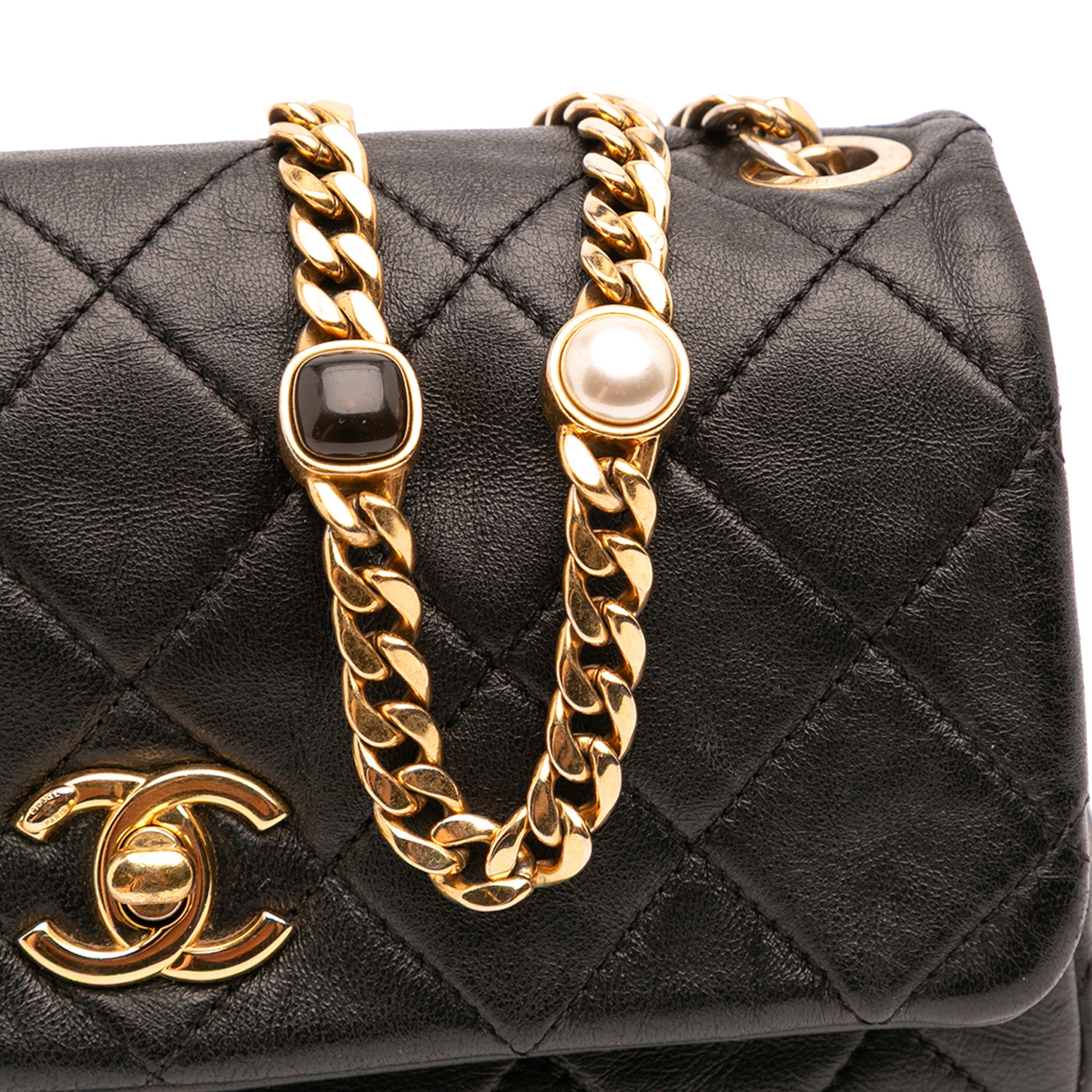 Chanel Small Quilted Lambskin Resin Pearl Chain Flap