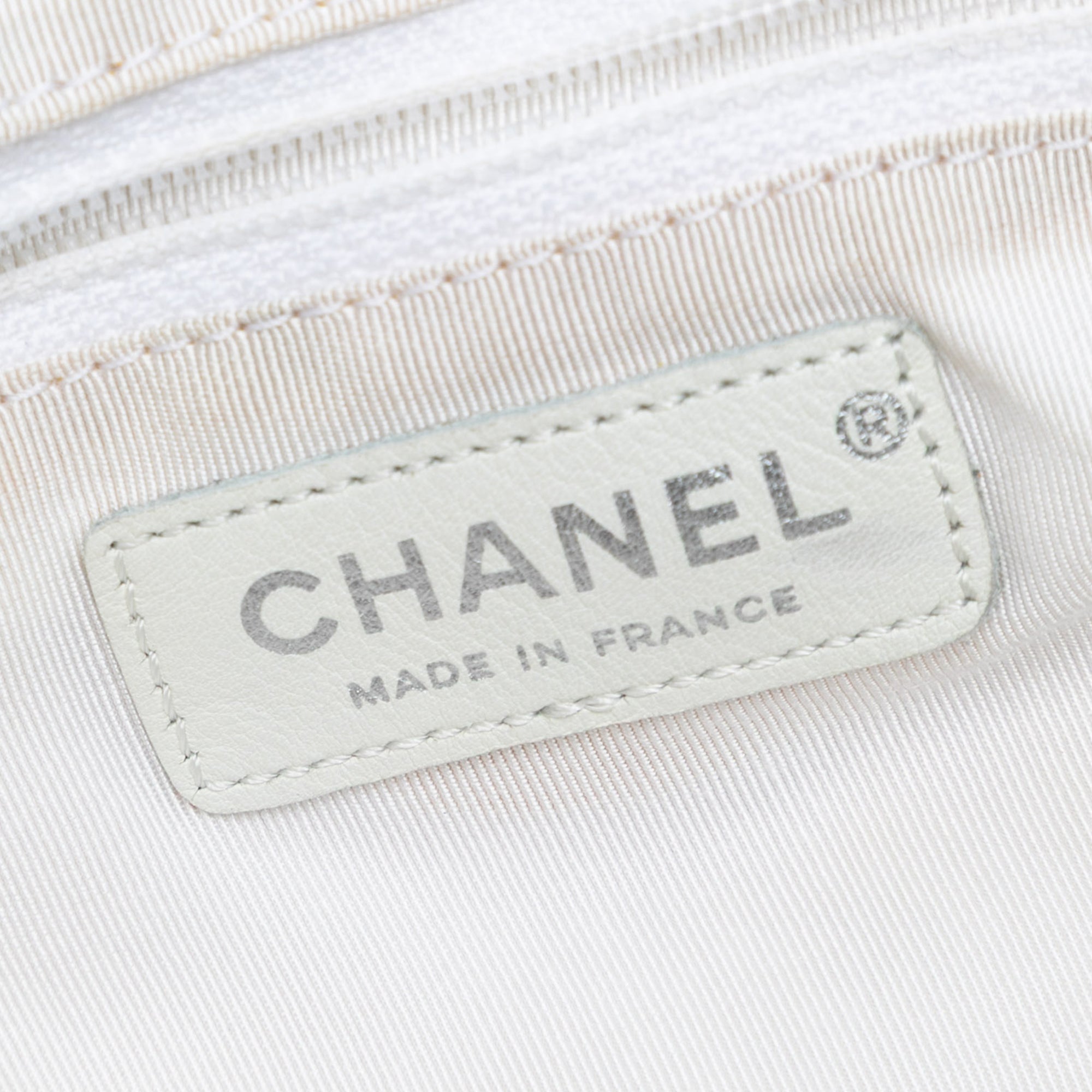 This handbag features a tweed boucle body, a silver-tone metal and chain link handle, an open top, and interior slip pocket. Retail Price: 2400.00
