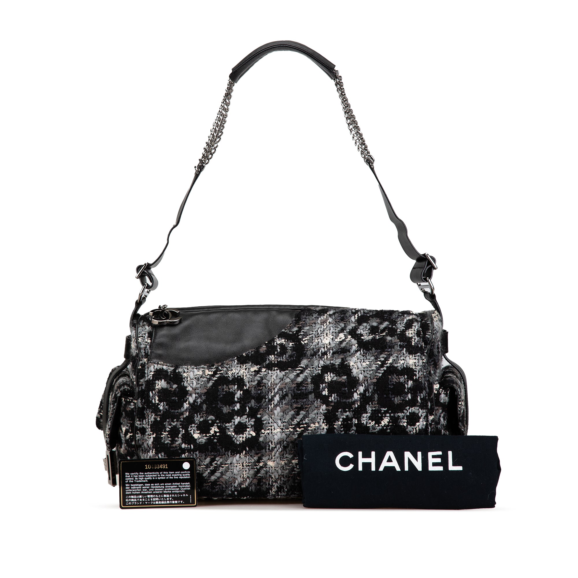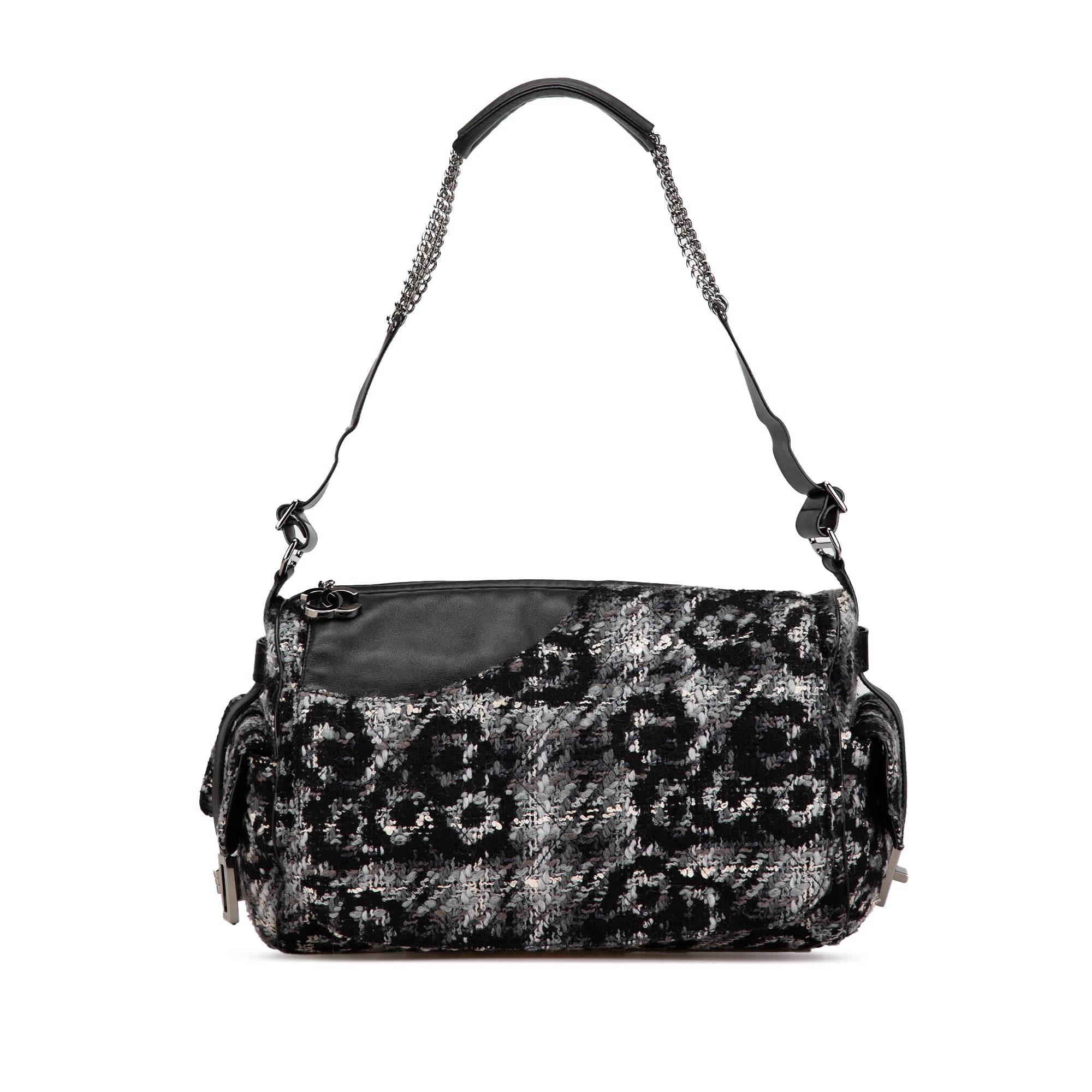 This shoulder bag features a tweed body with leather trim, a chain and leather strap, a top zip closure, exterior side flap pockets, and an interior zip pocket. Inclusion: Dust bag, authenticity card. Retail Price: 1920.00