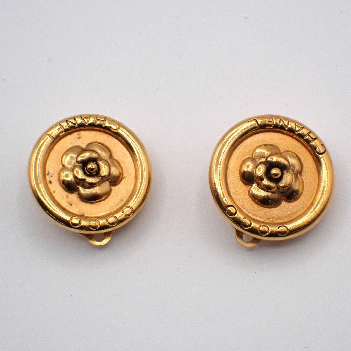 Chanel Vintage Camellia Earrings Gold-plated