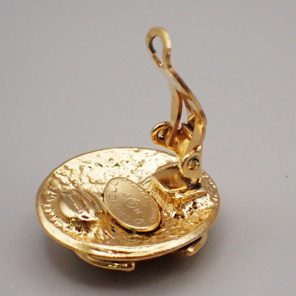 Chanel Vintage CC Logo Round Clip on Earrings Textured