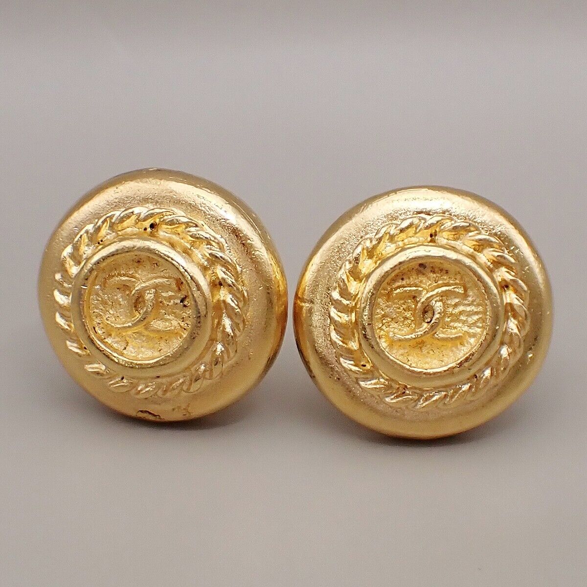 Brand : Chanel Model : Vintage CC Logo Round Clip on Earrings Style : Textured Metal Serial number : / Inclusions : General condition : AB
