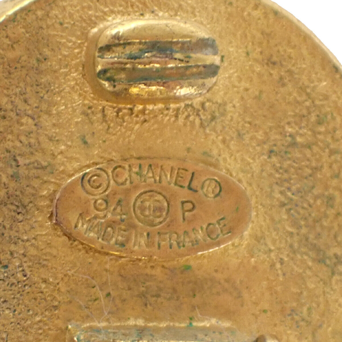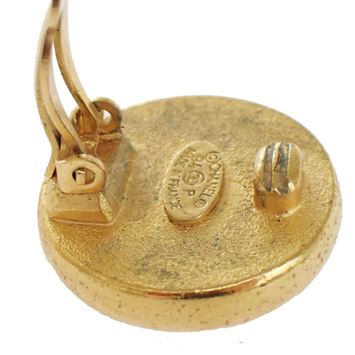 Chanel Vintage Round CC Button Clip-On Earrings Metal and Faux