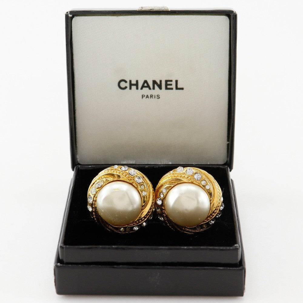 Brand : Chanel Model : Vintage Round CC Clip-On Earrings Style : Metal with Faux Pearl Serial number : NA Inclusions : Storage box