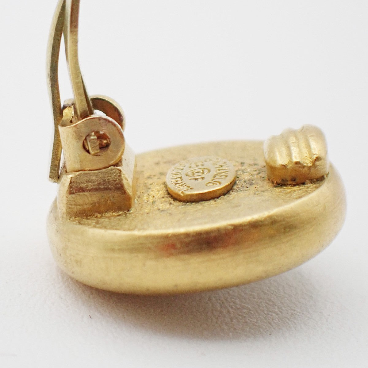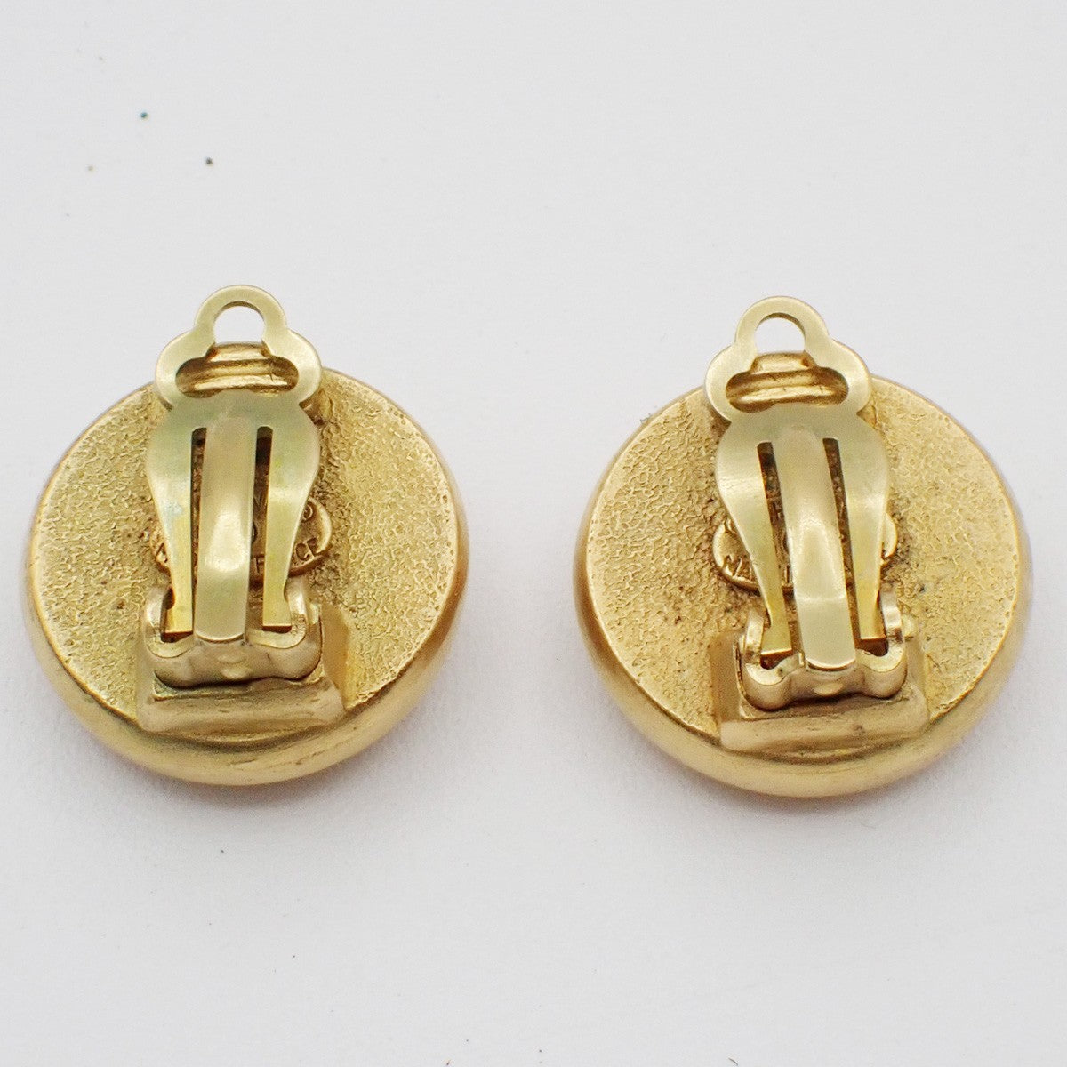 Chanel Vintage Round Clip-On Earrings Metal with Faux