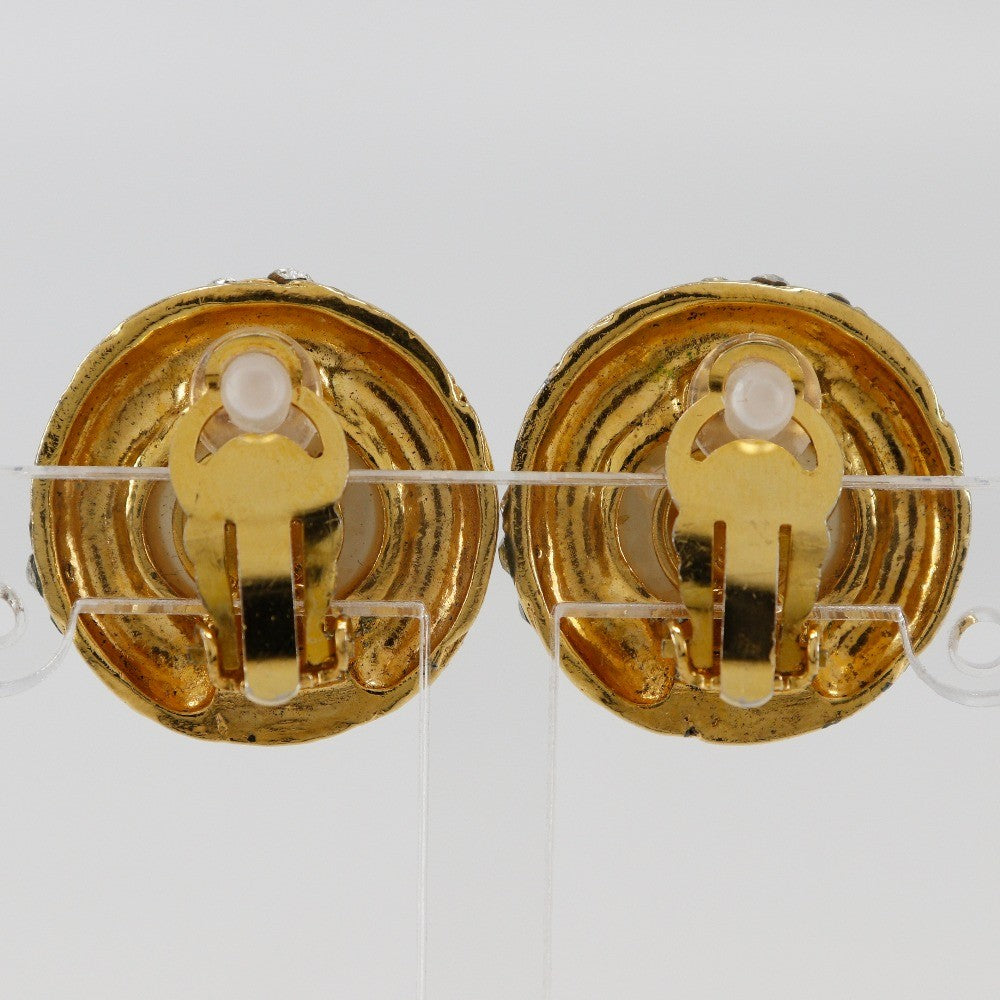 Chanel Vintage Round Clip-On Earrings Metal with Faux