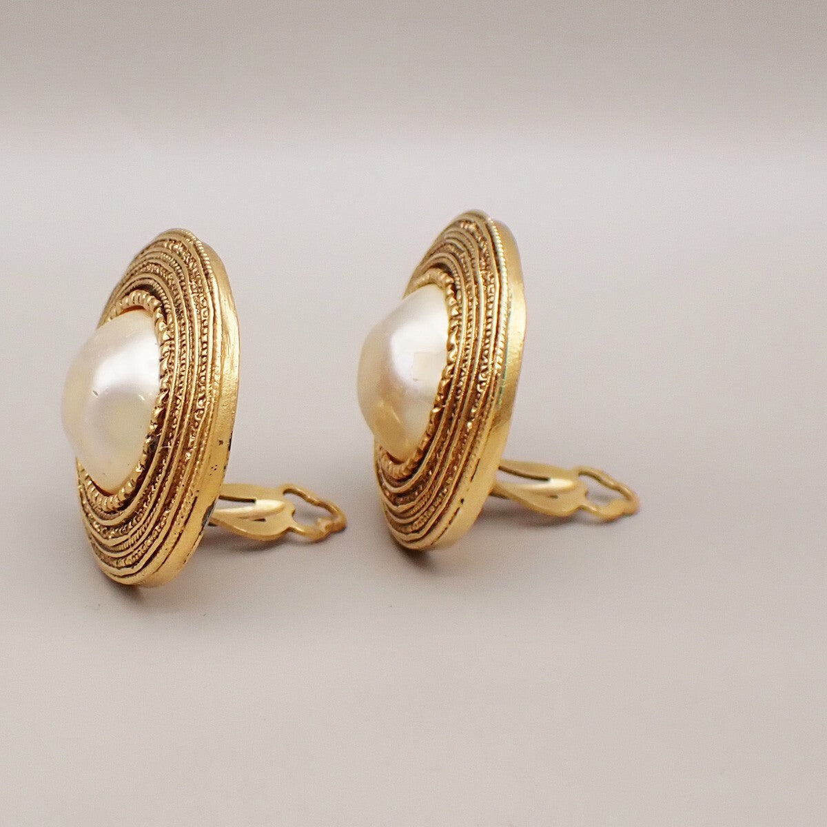 Brand : Chanel Model : Vintage Round Clip-On Earrings Style : Metal with Faux Pearl Serial number : / Inclusions : General condition : AB