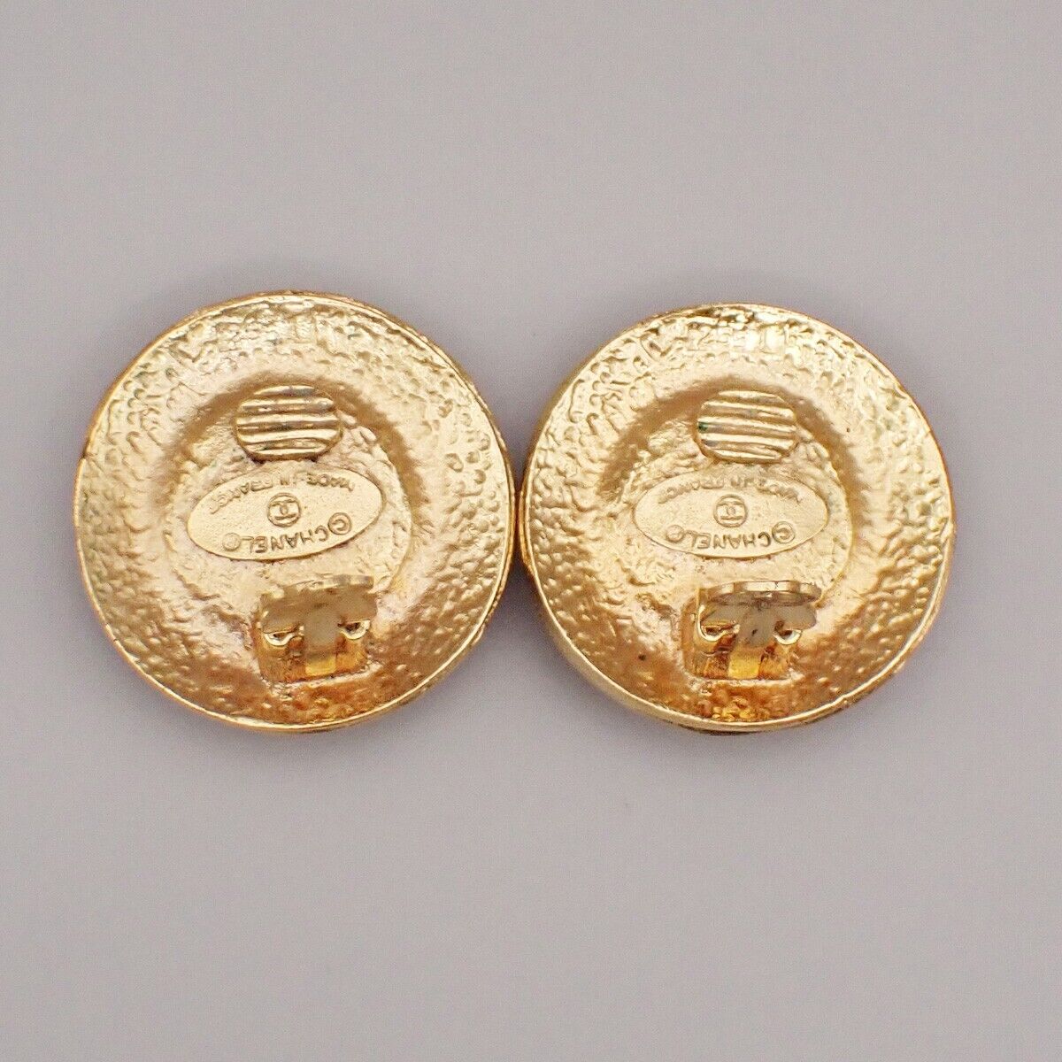 Chanel Vintage Round Clip-On Earrings Metal with Faux