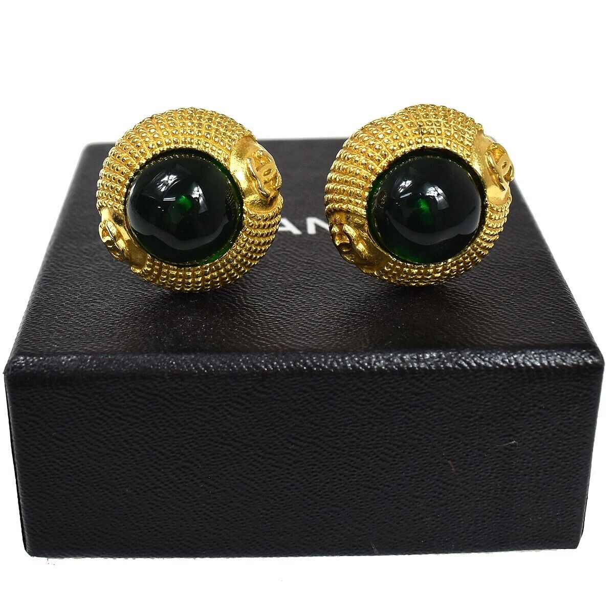 Brand : Chanel Model : Vintage Round Clip-On Earrings Style : Metal with Gripoix Serial number : / Inclusions : Box