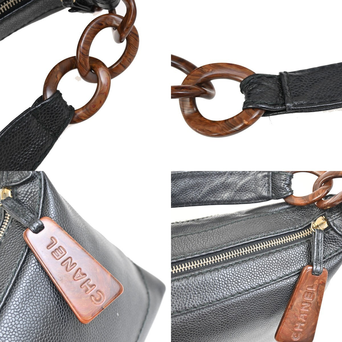 Chanel Vintage Wood Chain CC Shoulder Bag Caviar