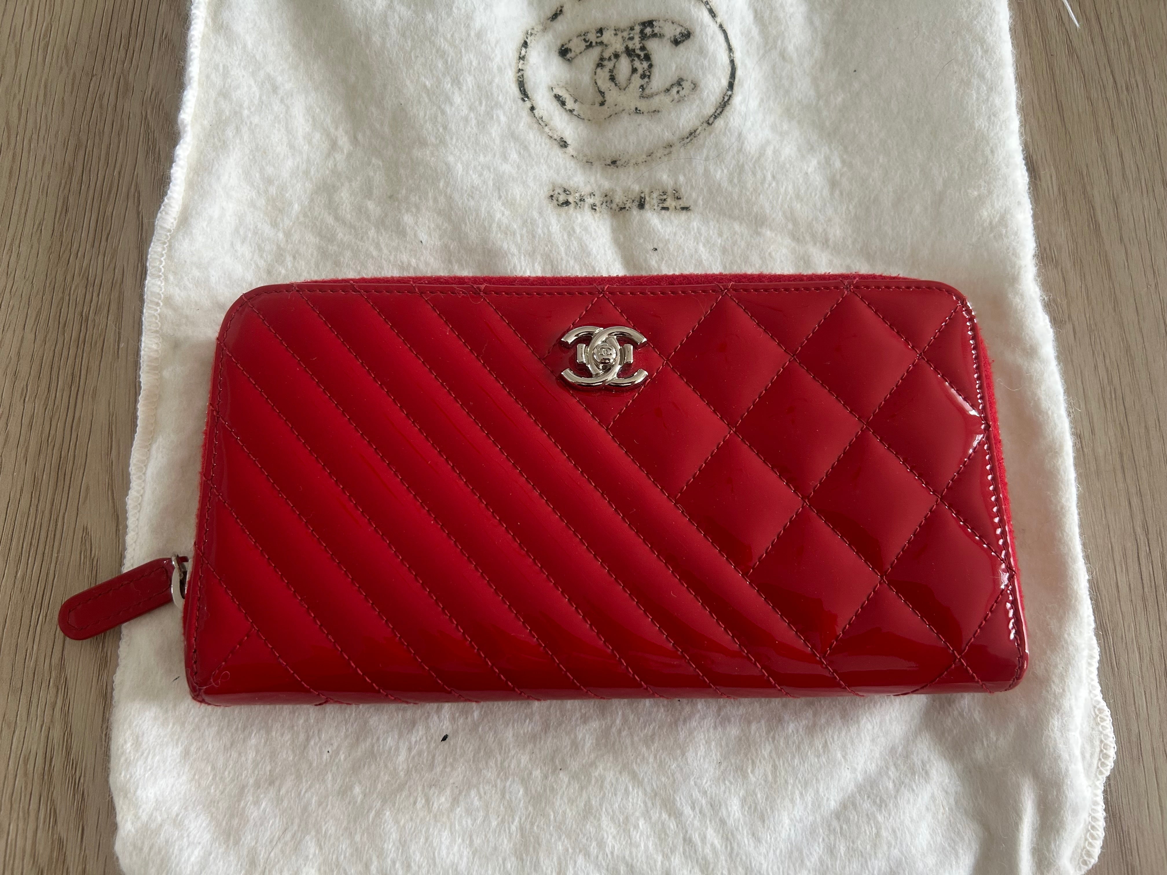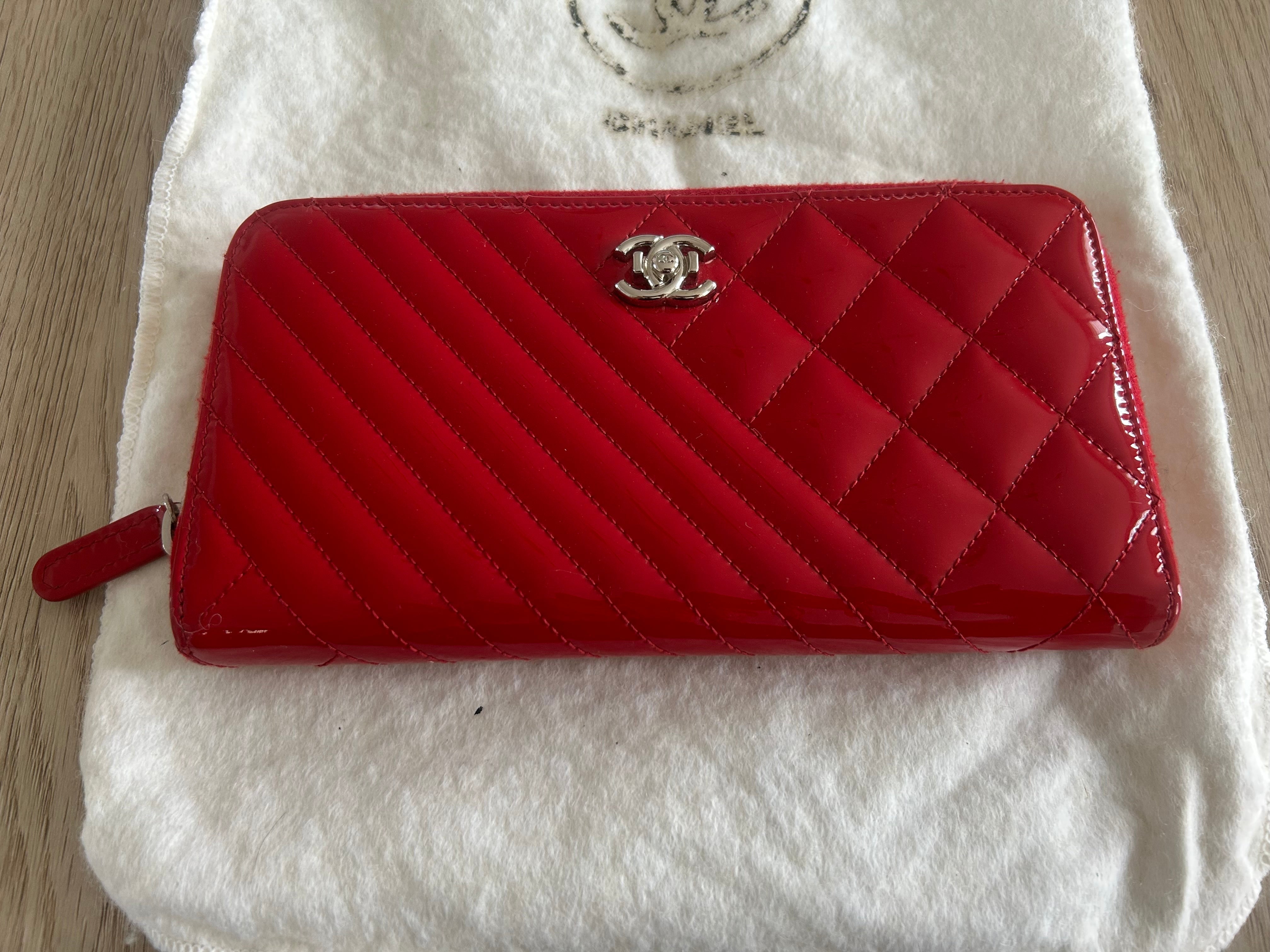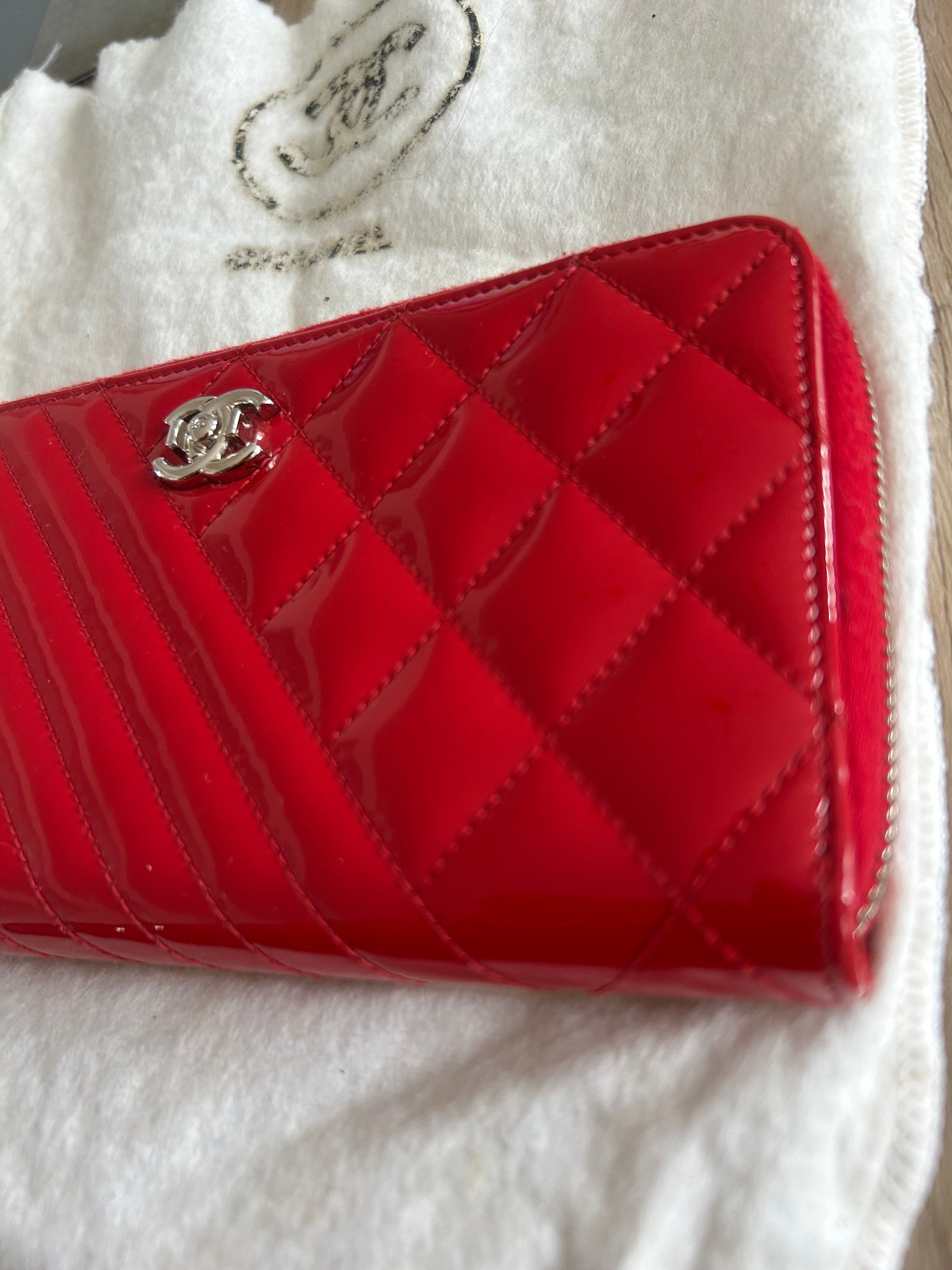 Chanel Companion In red patent leather and silver jewelry Plenty of interior storage space One side chevron and one side quilted Excellent condition (no signs of wear) From private sales Serial number present inside Sold with a white Chanel dust bag Dimensions 20*11cm