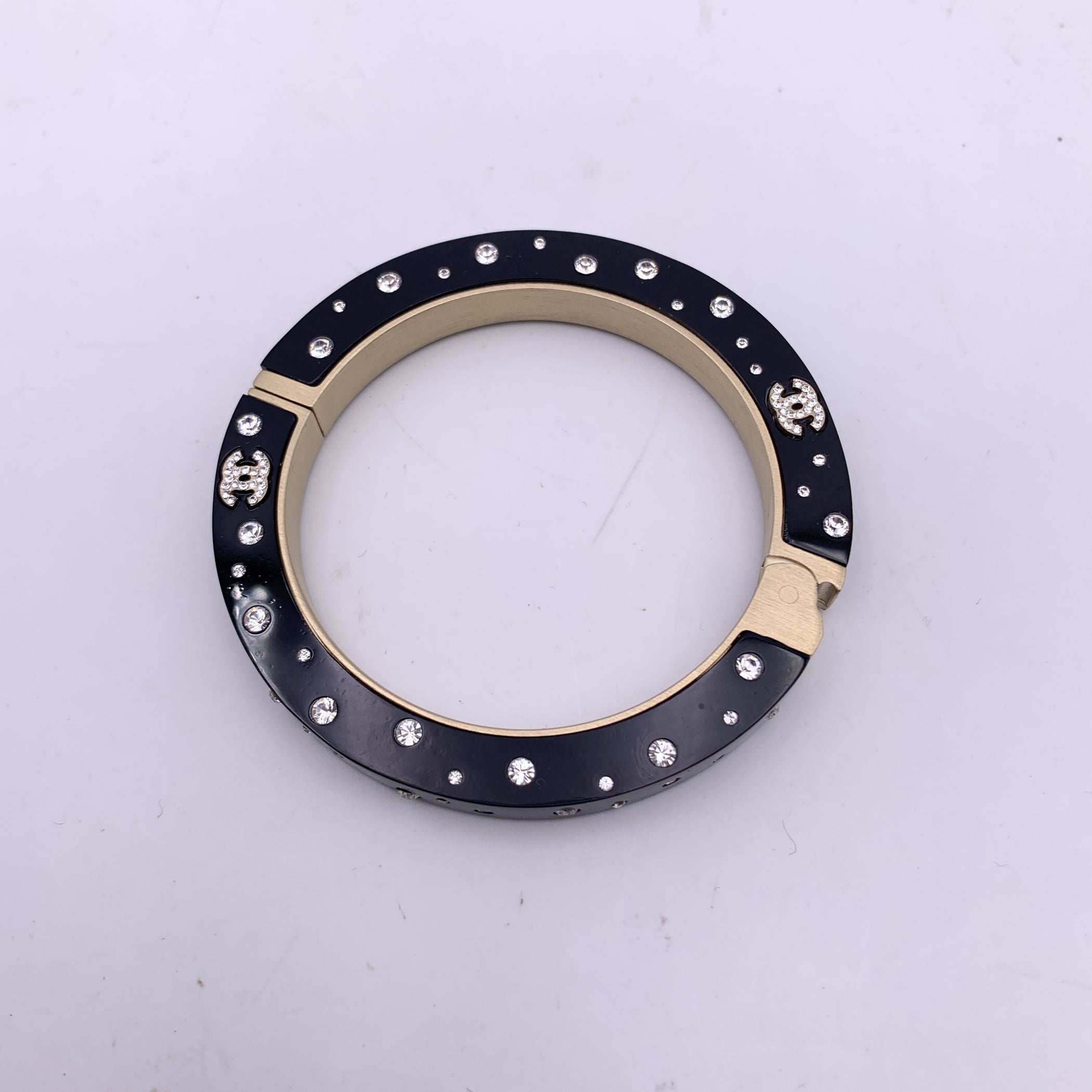 A Statement Piece With Unmistakable Parisian Flair, This Chanel Cuff Bracelet Embodies The House's Bold Late-2000s Aesthetic. Crafted In Glossy Black Resin, The Wide Band Curves Smoothly Around The Wrist, Opening On a Discreet Hinge For An Easy, Elegant Fit. At Its Heart, a Shimmering Crystal-paved Cc Logo Catches The Light, Balancing Modern Minimalism With Chanel's Signature Sparkle. Inside, The Stamp "Chanel 09 Cc P Made In Italy" Marks It As Part Of The 2009 Spring Collection, a Subtle Nod To Its Heritage. Sized To Fit Wrists Up To 6.5 In / 16.5 Cm, This Vintage Treasure Bridges Timeless Luxury And Contemporary Edge-a Collectible Slice Of Chanel History Ready To Shine Again.
