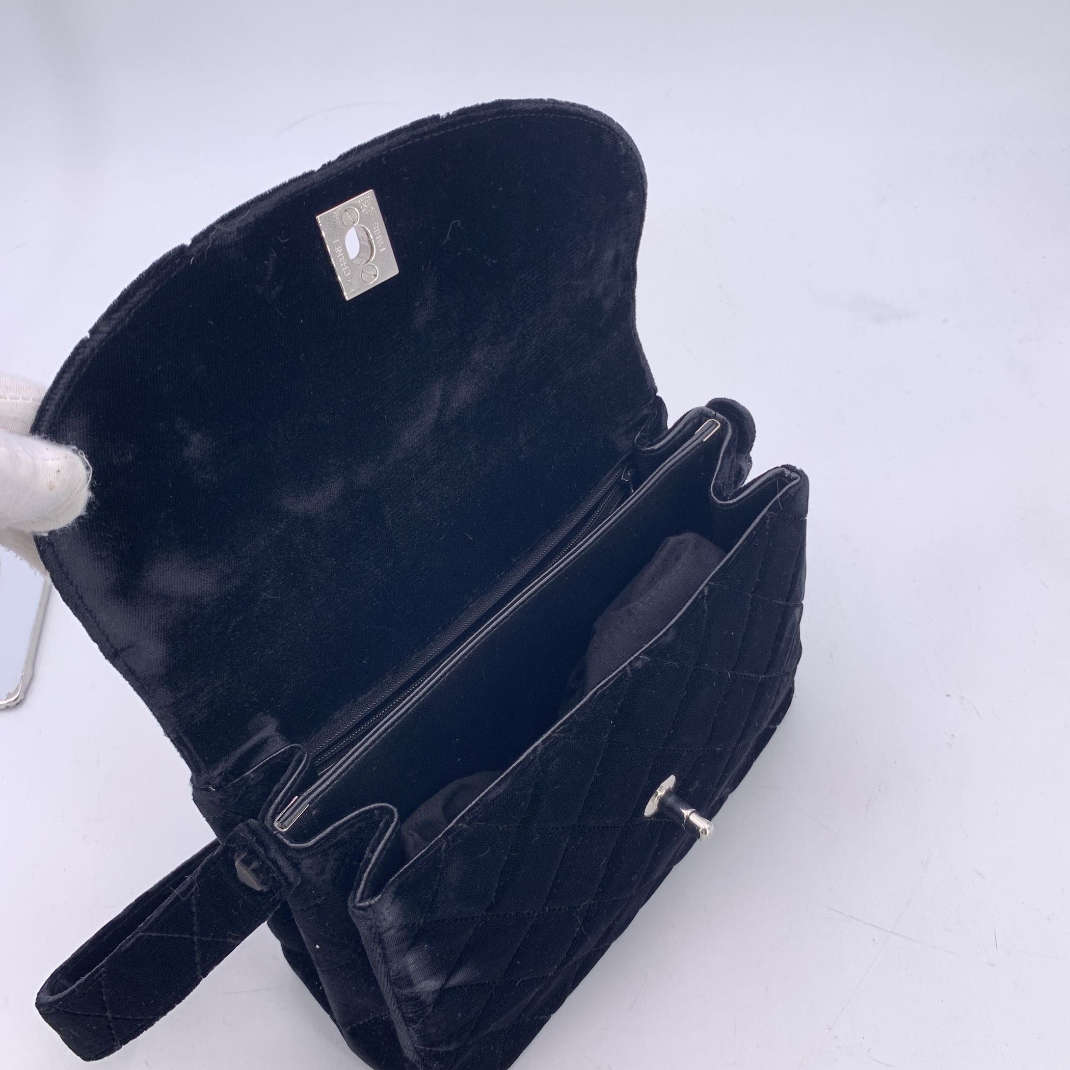 This Beautiful Bag Will Come With a Certificate Of Authenticity Provided By Third Party Authenticators. The Certificate Will Be Provided At No Further Cost From The Elegant Runways Of The Late '90s Comes This Vintage Chanel Single Flap Bag, Crafted In Sumptuous Black Quilted Velvet, a Texture That Captures Both Light And Attention With Effortless Grace. Dating From The 1996-1997 Collection, This Piece Carries The Spirit Of An Era When Chanel Redefined Quiet Luxury With Bold Femininity. The Front Flap Is Anchored By The Iconic Cc Turn-lock Clasp In Silver-tone Metal, a Timeless Emblem Of The Maison's Enduring Legacy. The Bag Features 1 Rear Open Pocket. Inside, The Bag Opens To Reveal a Black Leather Lining, Elegantly Divided Into Two Main Compartments, With One Zippered Pocket And One Open Side Pocket - The Perfect Balance Of Form And Function. Every Detail Speaks To Chanel's Meticulous Craftsmanship, From The Embossed 'Chanel' And 'Made In France' Markings Inside To The Discreet Authenticity Serial Number That Confirms Its Heritage. More Than a Bag, This Is a Collector's Keepsake - a Velvet Echo Of '90s Parisian Style, Meant To Be Worn, Admired, And Passed On.