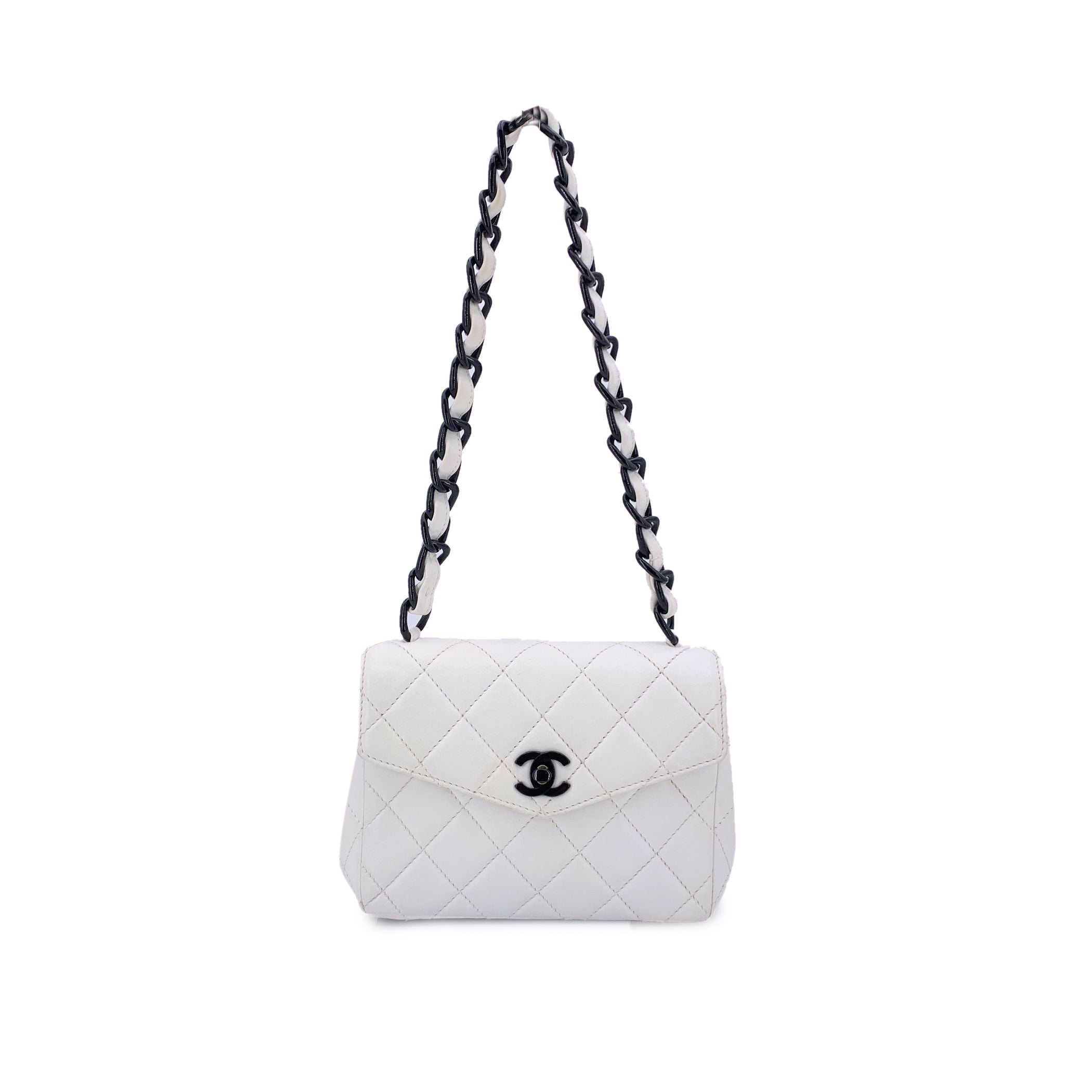 This Beautiful Bag Will Come With a Certificate Of Authenticity Provided By Entrupy. The Certificate Will Be Provided At No Further Cost A Rare Treasure For The Chanel Collector, This Authentic Chanel Mini Kelly Flap Shoulder Bag Is a Refined Nod To Timeless French Elegance, Reimagined With Bold, Modern Contrast. Crafted In Supple White Leather And Accented With Striking Black Hardware, This Piece Features The Iconic Cc Turn-lock Closure And a Discreet Open Back Pocket-a Blend Of Form And Function Only Chanel Could Perfect. Inside, The Bag Is Lined With Soft White Leather, Housing a Zippered Pocket And a Open Pocket For Essentials. The Interwoven Shoulder Strap-white Leather Threaded Through Glossy Black Resin Links-adds a Graphic, Architectural Touch That Sets This Piece Apart. Stamped 'Chanel - Made In France' And Complete With The Original Authenticity Hologram Sticker And Card, This Mini Kelly Is More Than An Accessory-it's a Collector's Dream, Wrapped In Monochrome Magic.