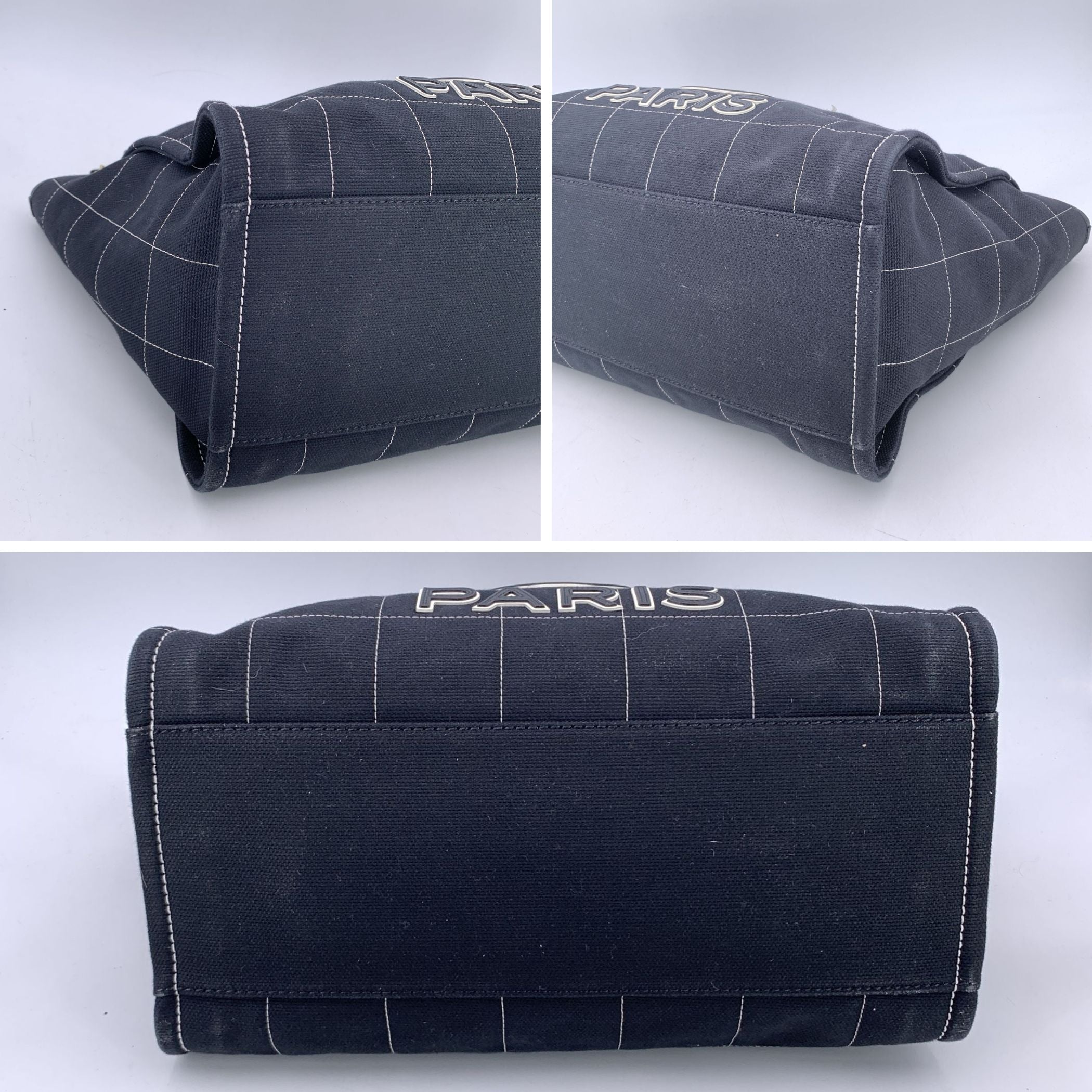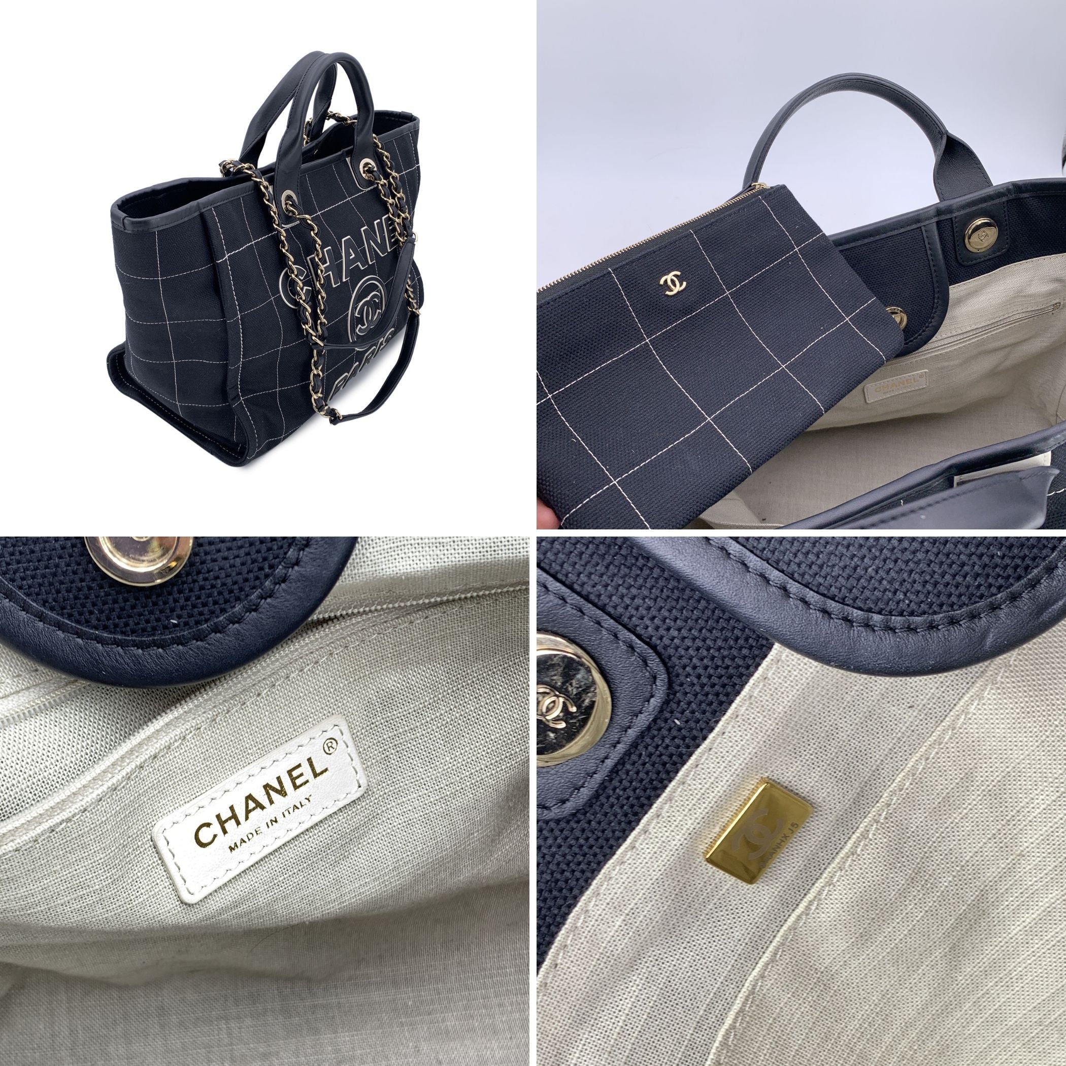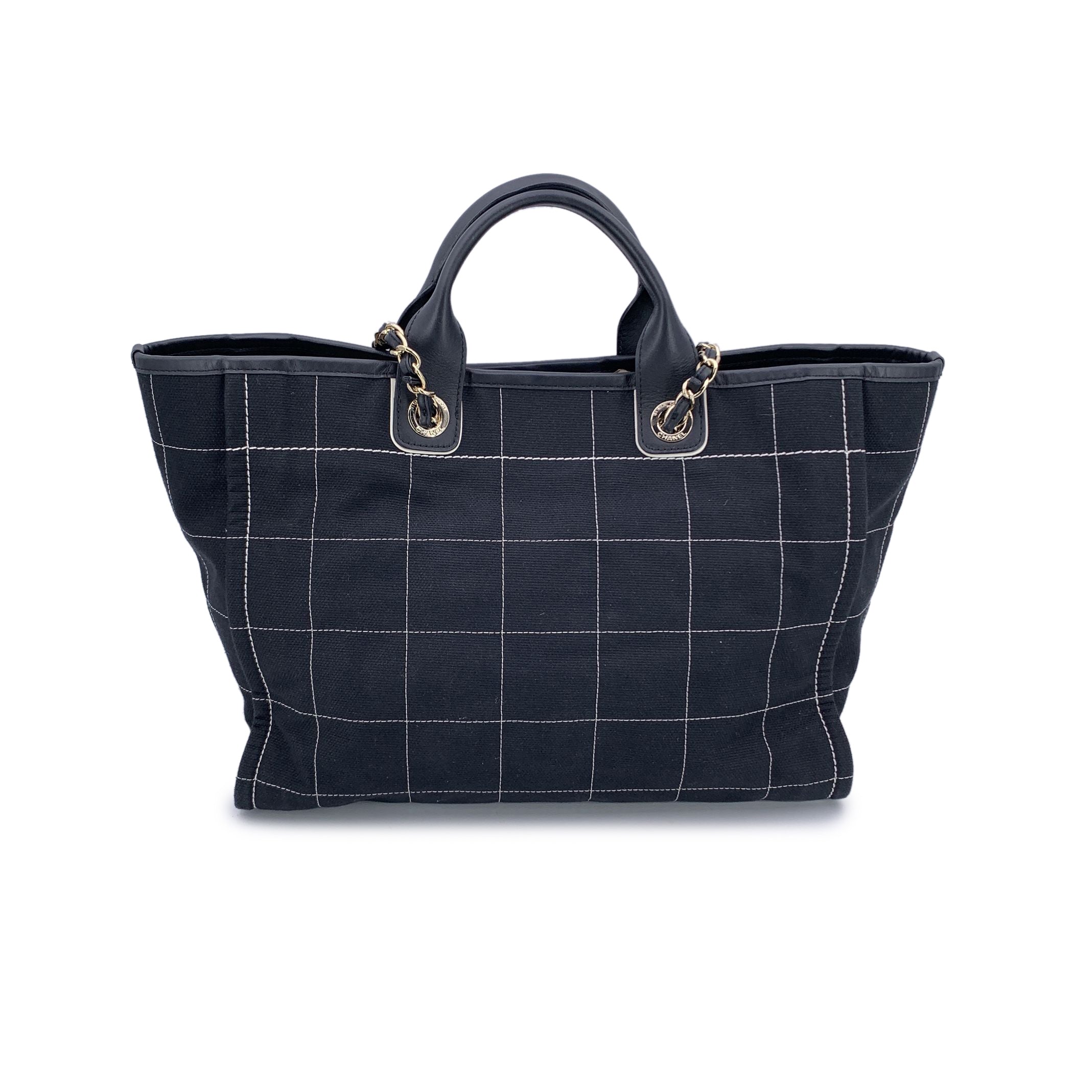 This Beautiful Bag Will Come With a Certificate Of Authenticity Provided By Entrupy. The Certificate Will Be Provided At No Further Cost. Entrupy For This Item At No Further Cost. Step Into The World Of Timeless Elegance With The Iconic Chanel 'Deauville' Tote, a Perfect Blend Of Casual Sophistication And Luxury. Crafted In Black Cotton Fabric, The Bag Showcases White Square Stitchings That Lend It a Unique, Textured Appeal. The Standout Feature Is The Contrast 'Chanel Cc Paris' Writing On The Front, a Nod To The Brand's Parisian Heritage And Unmistakable Style. Designed With Both Function And Style In Mind, This Tote Is Equipped With a Magnetic Button Closure At The Top To Keep Your Essentials Secure. It Boasts Double Top Leather Carry Handles, As Well As Silver Metal Double Chains Interwoven With Leather Shoulder Straps, Offering Versatile Ways To Carry The Bag. The Interior Is Lined In Beige Fabric And Features One Zip Pocket And Two Open Side Pockets, Providing Ample Space For Organization. Plus, It Includes a Removable Matching Zip Pouch For Added Convenience. Inside, You'll Find The 'Chanel - Made In Italy' Tag. Whether You're Headed To The Beach, Out For a Day Of Shopping, Or Simply Looking To Elevate Your Everyday Style, The Chanel Deauville Tote Is The Ultimate Blend Of Practicality And High-end Fashion.