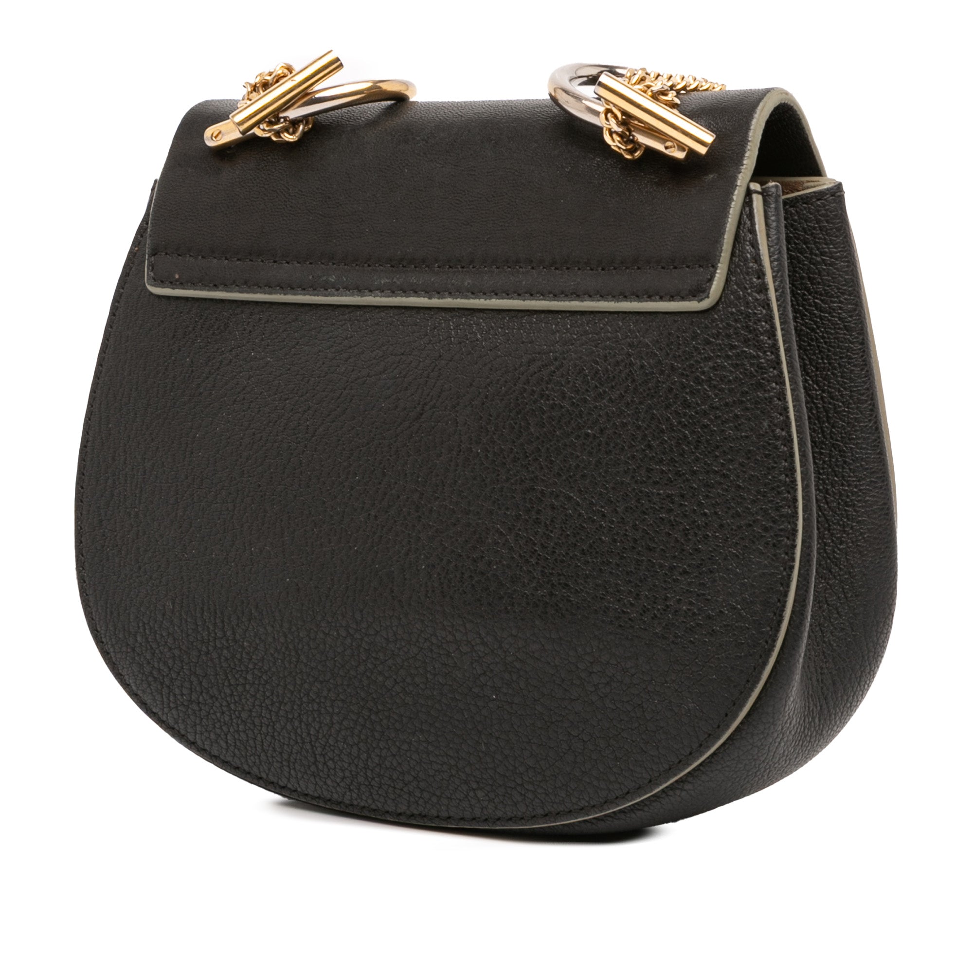 The Drew features a leather body, a chain link strap, a top flap with pin-lock closure, and an interior slip pocket. Retail Price: 990.00