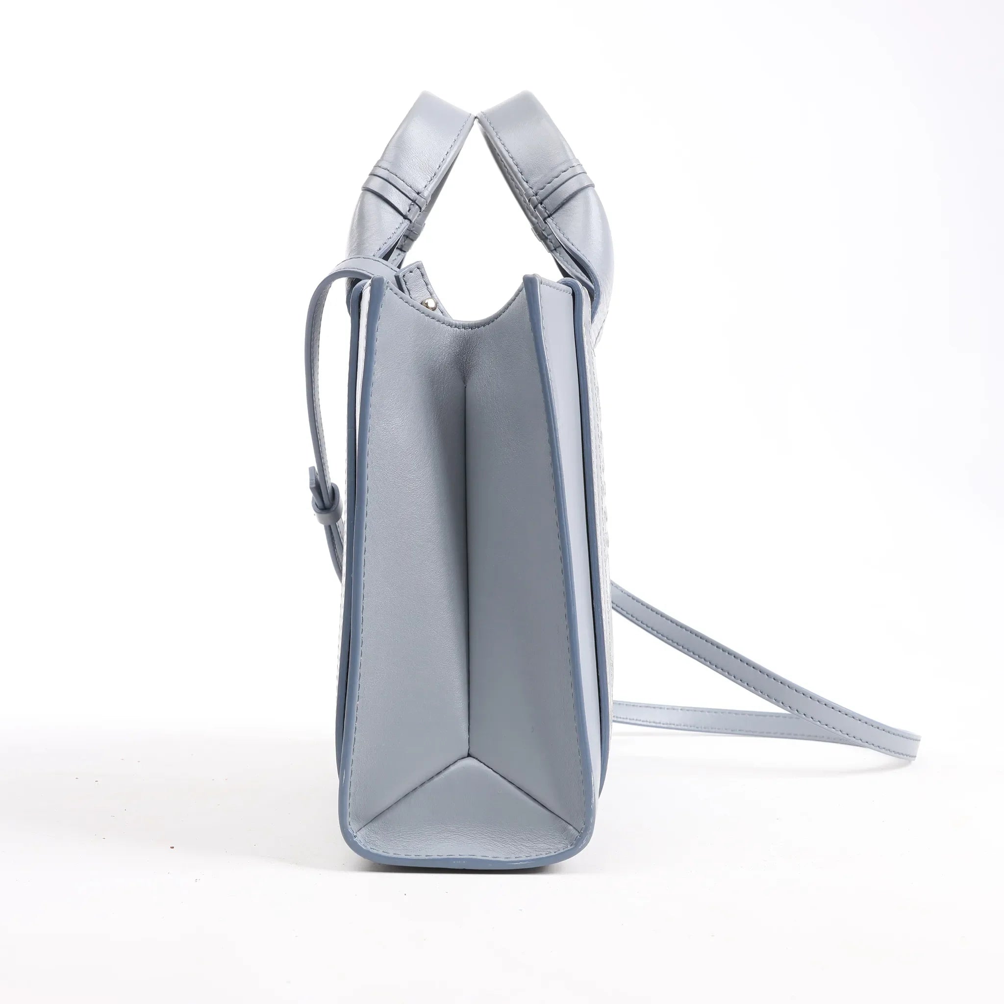 The Chloé Woody Small 2Way Handbag in Blue showcases refined elegance with smooth leather and signature logo-embroidered straps. Featuring top handles and a detachable shoulder strap, it’s the perfect mix of chic versatility and modern sophistication.