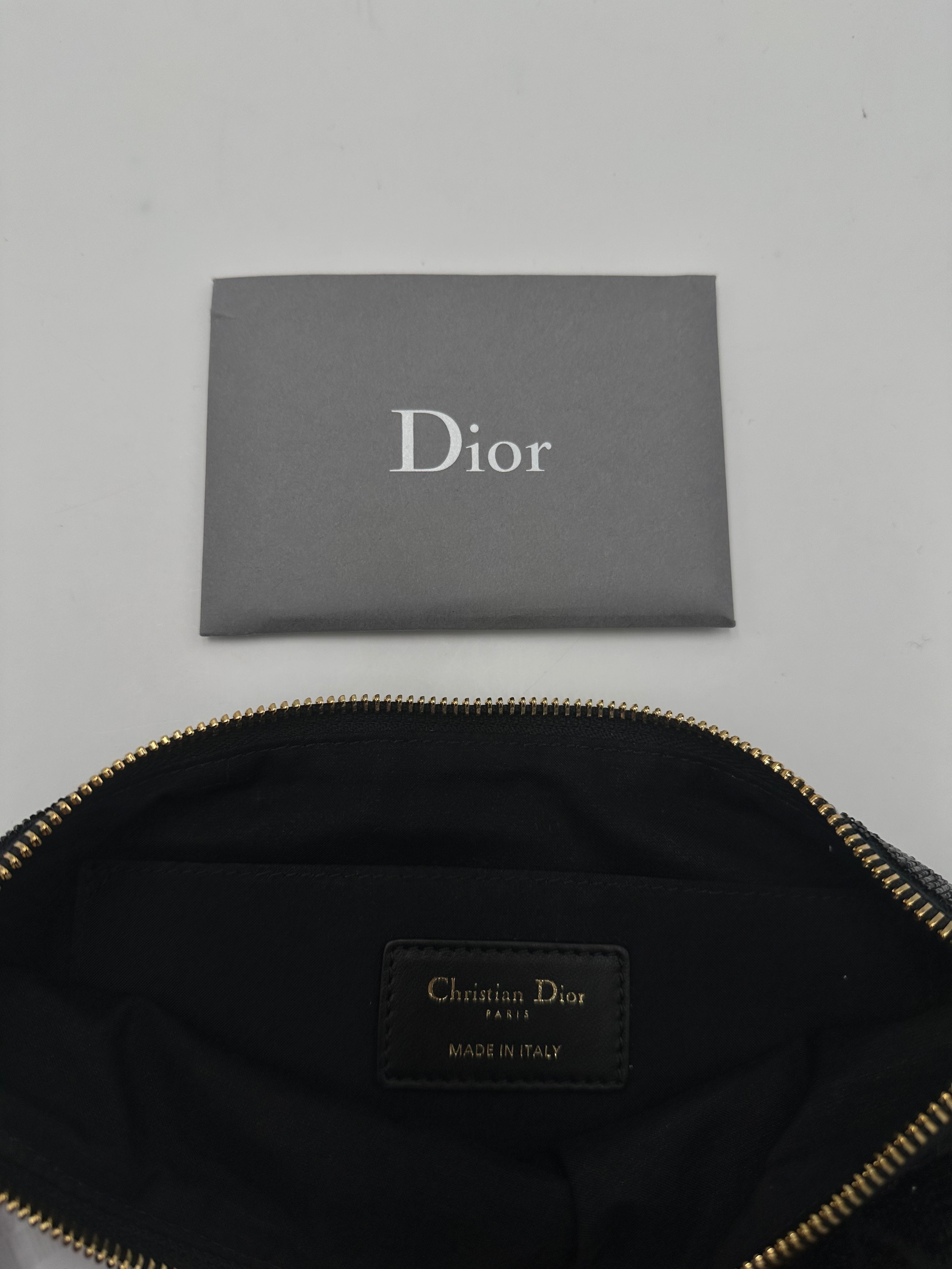 Brand : Christian dior Model : Black cannage Style : Bead embroidery Dimensions (W x H x D) : 27cm x 1cm x 16cm Serial number : Na Inclusions : Dust bag,shoulder strap,dior card