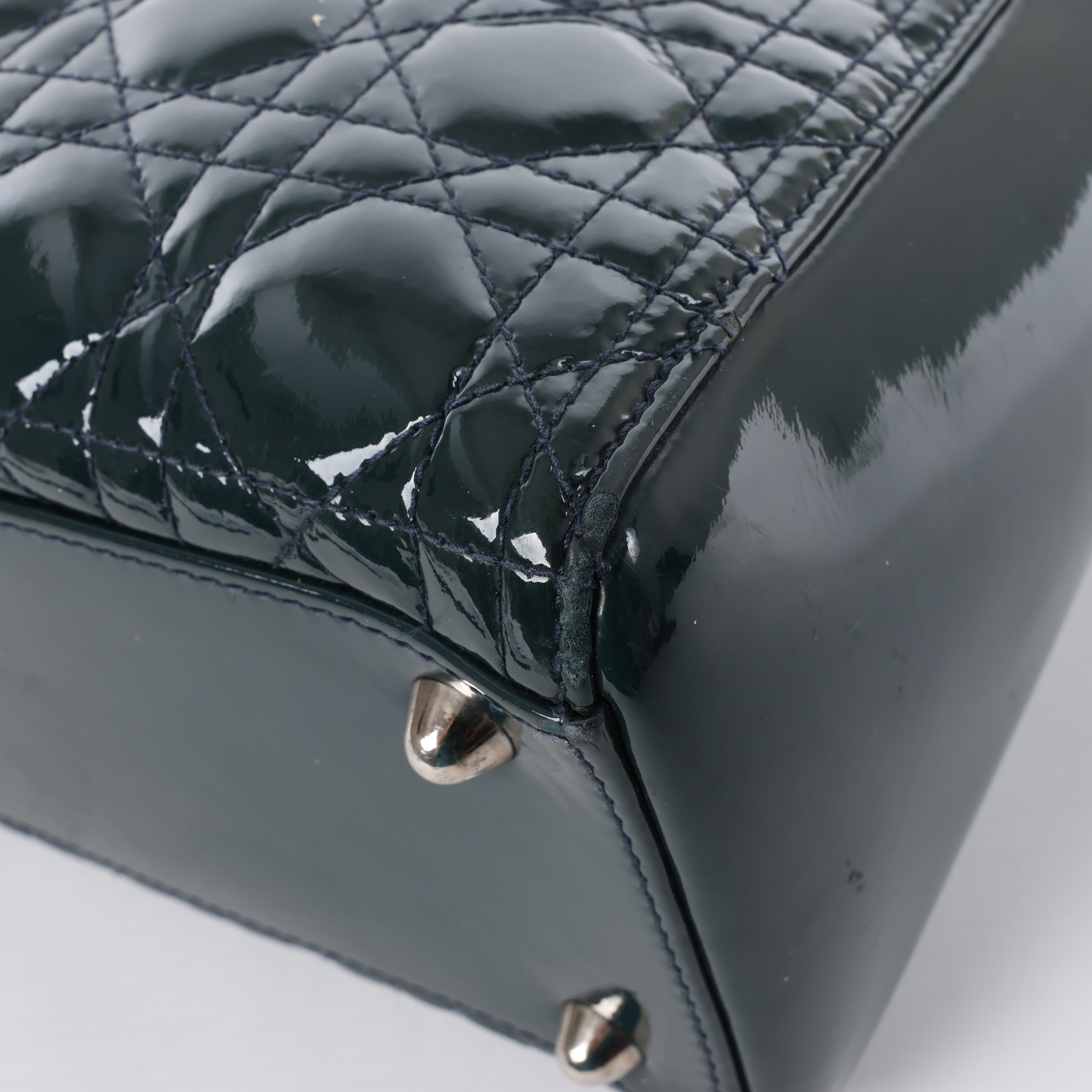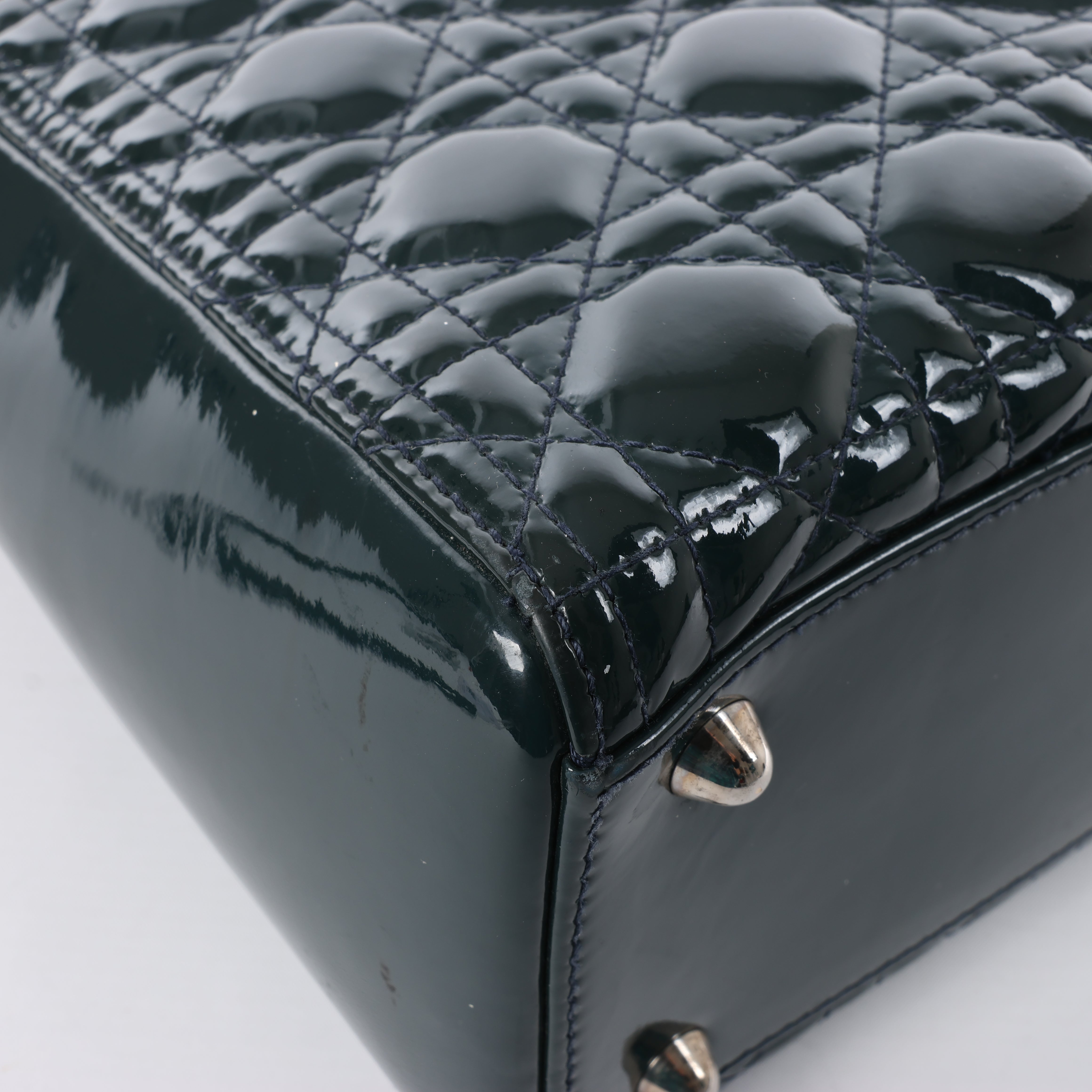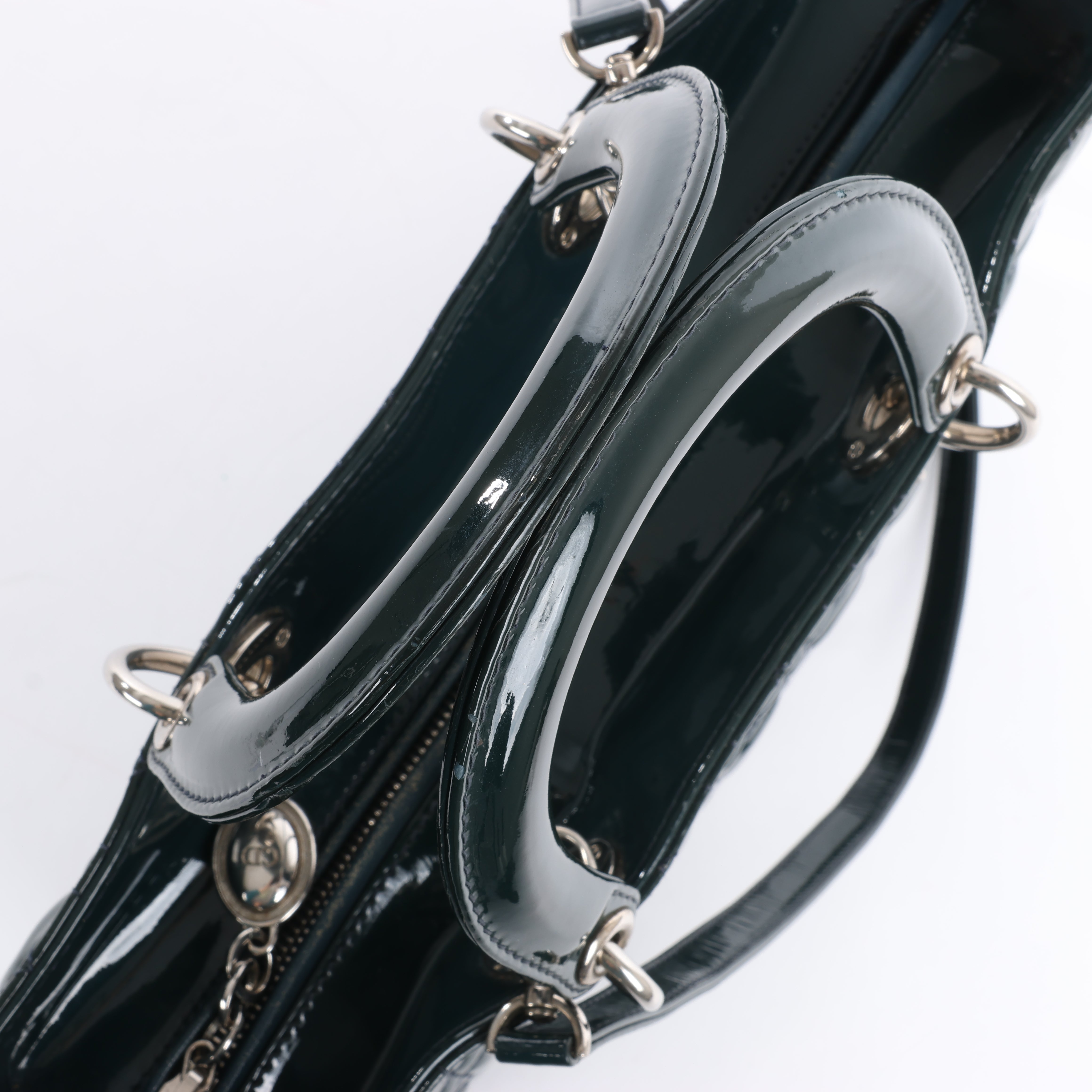 Brand: DiorModel: Lady DiorSize: LargeWidth: 32 cmHeight: 24 cmExterior Condition: ExcellentInterior Condition: ExcellentCondition Details: Exterior leather is clean and beautiful in great condition, with minor rubbings. The handles and strap are clean and firm in good condition. Hardware is shiny and crisp with surface scratches. The interior lining is clean and in excellent condition except some dust.Colour: GreenInterior Colour: GreyHardware Colour: SilverMaterial: Patent leatherComes With: Sholder strap, Entrupy authentication certificate