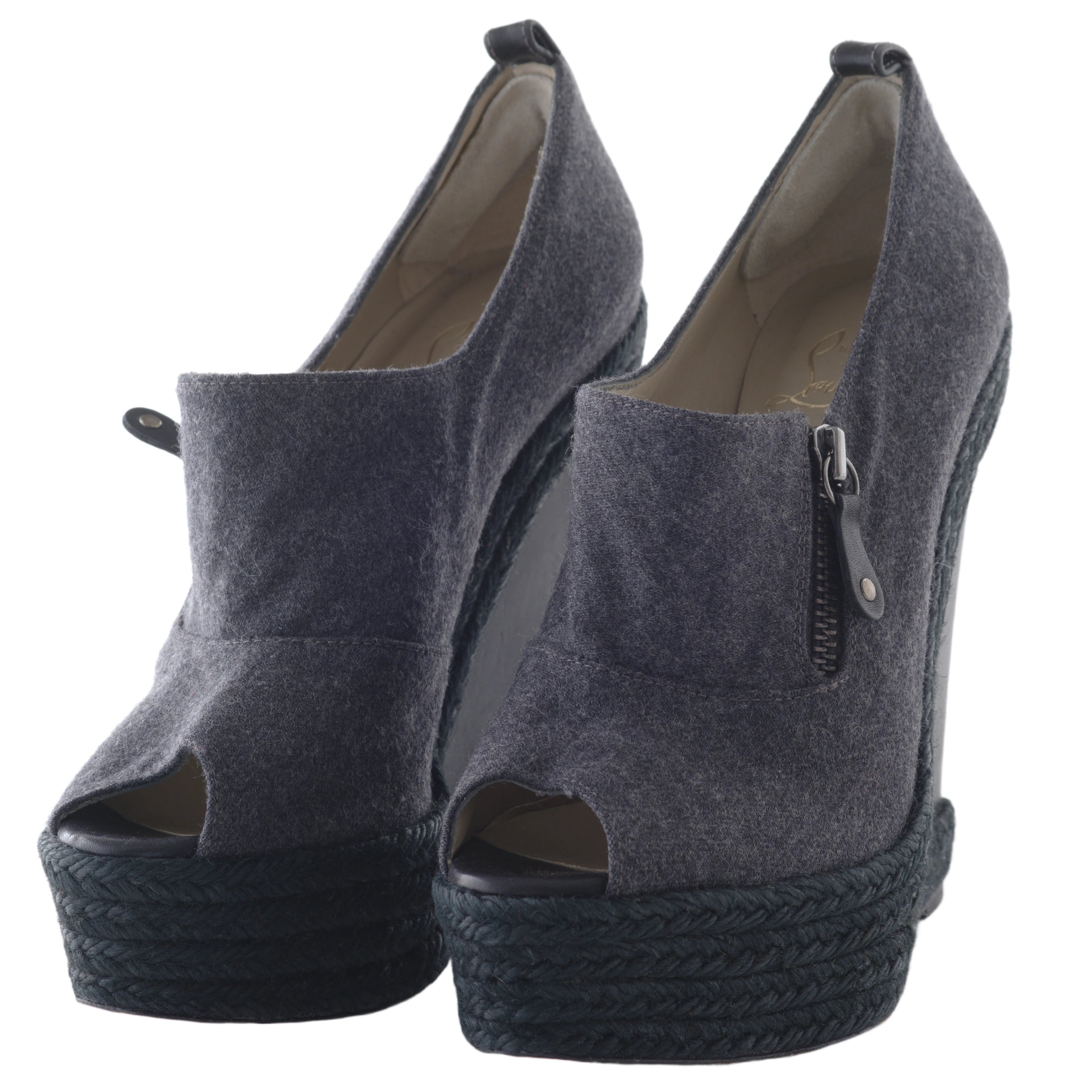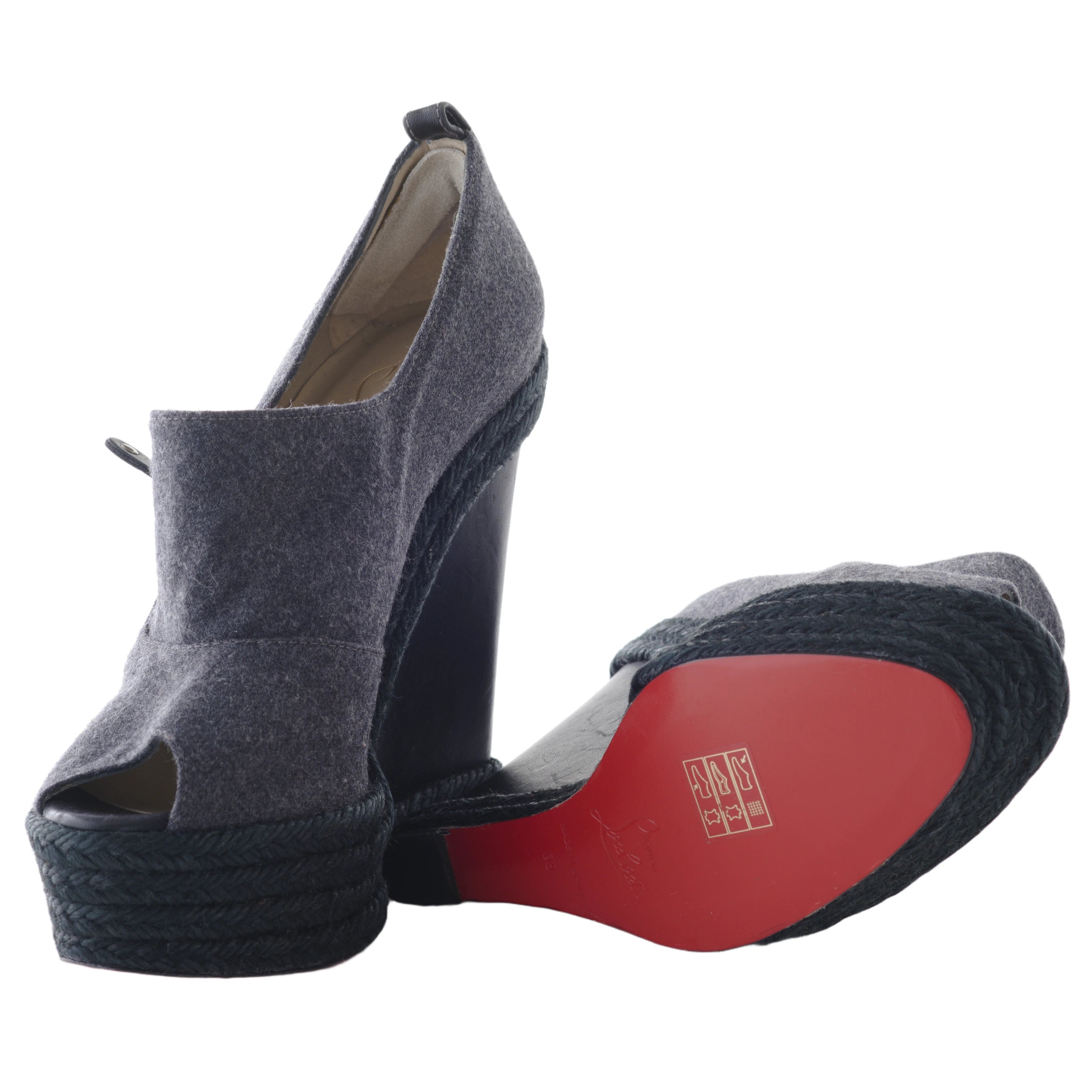 Christian Louboutin espadrille wedge sandals with a canvas upper.